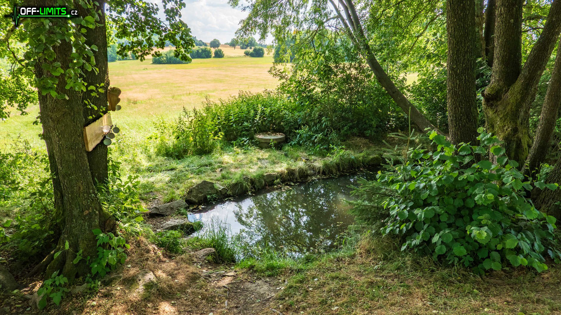 Po občerstvení probíhám obcedmi Horní Dubenky a Jihlávka, za kterými stoupám k pramenu Jihlavy. Řeka Jihlava je pro mě zvláštní tím, že protéká Třebíčí, kde žiju. Voda v jezírku u pramene je překvapivě zakalená, takže raději vynechám občerstvení a stoupám výše ke kamennému kruhu druidů, který je s poloměrem 34 m největším kromlechem v České republice. Kruh je zajímavý také tím, že jeho středem prochází rozvodí Černého a Severního moře. Další hodinu si prohlížím areál lázní Svatá Kateřina, kde mají například Ájurvédský pavilon postavený na velkých kamenných blocích. Nakonec se ještě občerstvuji z pramenů sv. Markéty a sv. Vojtěcha a lázeňský resort opouštím.