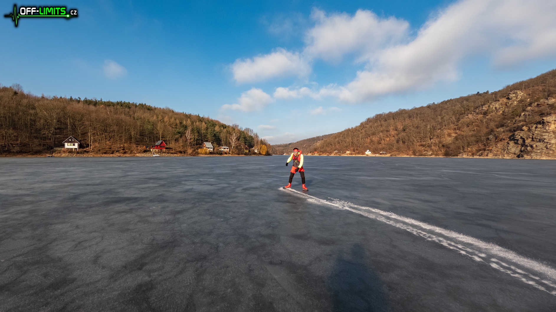 V sobotu ráno jsem si přivstal už v pět hodin ráno, v šest vyrazil s kamarádem Tomášem na Vranovskou přehradu a po sedmé už jsme bruslili. Překvapivě jsme se dostali po celé ploše jako minulou neděli. Vodní jezero se stále drželo pouze 2 km kolem hráze. Kvalita ledu byla nad očekávání dobrá. Tloušťka byla odhadem mezi 15 - 40 cm a povrch jako pomerančová kůra, takže to trochu drnčelo. To ale pro moje nordické brusle nebyl žádný problém.