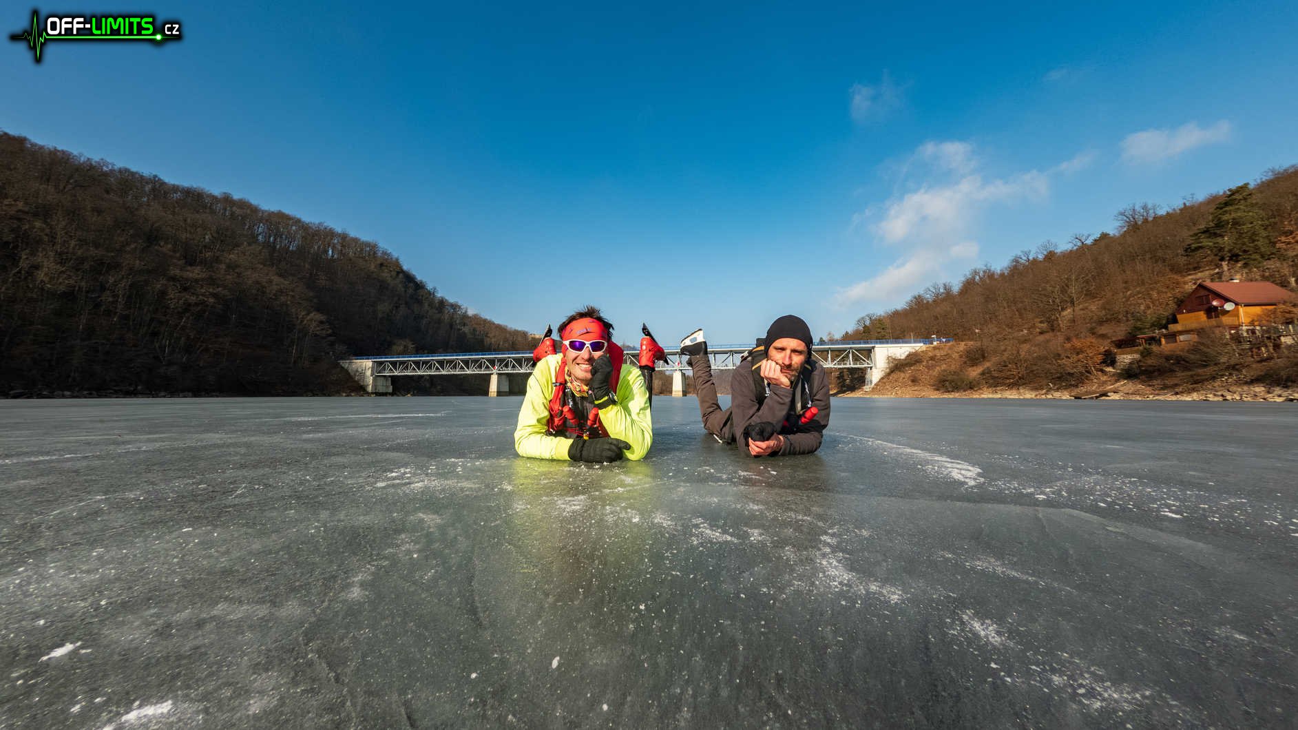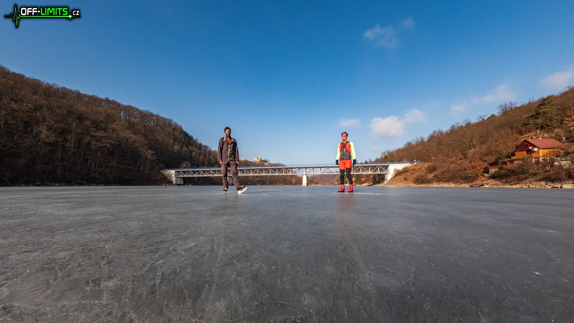 Díky nočnímu, slabému mrazu byl led příjemně tvrdý. Bohužel ale hned od rána svítilo slunce. Kolem deváté hodiny se úhel slunečních paprsků zvětšil natolik, že se místo odrážení začaly zavrtávat do ledu a ten začal měknout. I tak jsme projeli komplet celou zamrzlou plochu, včetně všech trhlin pod mosty a mezi skalami u Bítova. Skončili jsme přesně v poledne, kdy se na ledu začaly tvořit kalužiny. Podle předpovědi to vypadá, že tyto výborné podmínky vydrží aspoň do středy. To bude zase vstávání!