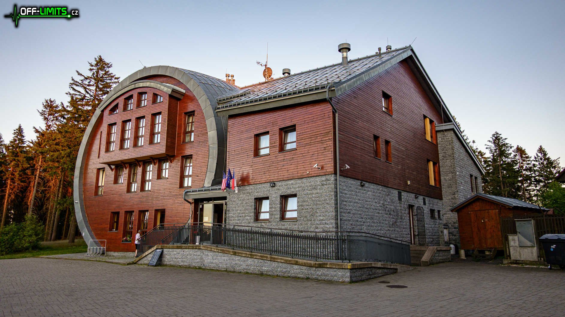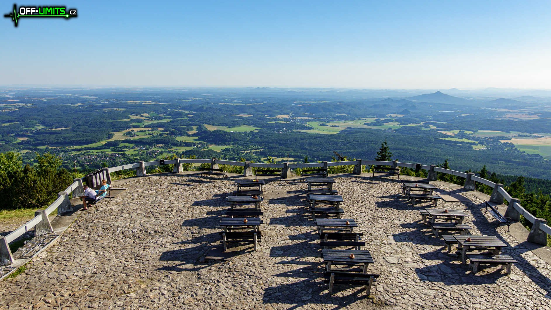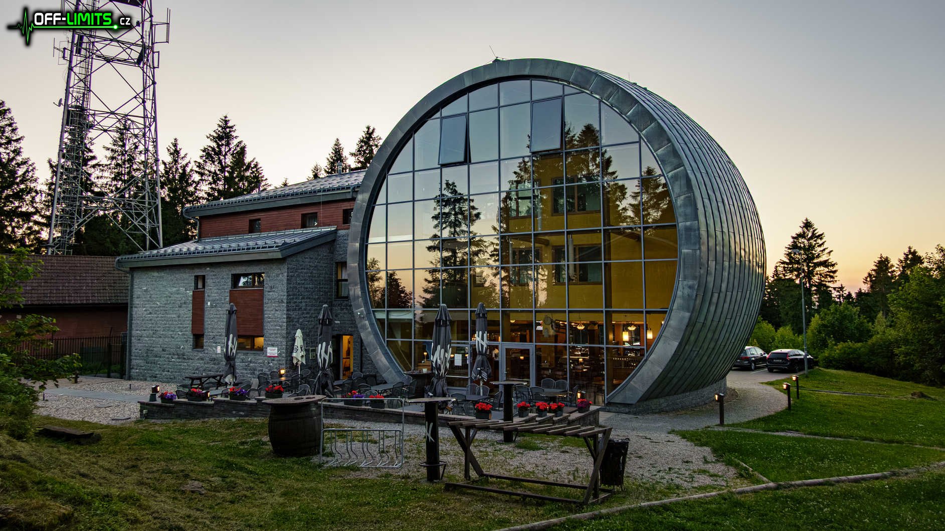 Po 18. hodině jsem vystoupal na vrchol Ještědu (1012), kde se nachází ikonický vysílač s rozhlednou, hotelem i restaurací. Z vrcholu jsou výhledy naprosto všemi směry. Protože jsem měl žízeň, zašel jsem se do restaurace napít. Udělal jsem ovšem obrovskou chybu, protože jsem si po druhé v životě objednal předraženou domácí limonádu. Cena 105 Kč za 2 dcl vody s ledem a limetkou mně rezonovala v hlavě po zbytek dne. Aspoň, že jsem si mohl doplnit vodu do láhví a odskočit si na záchod. Naposledy jsem ještě obešel vrchol, abych se pokochal panoramatickými výhledy a dal se do sestupu po druhé části hřebenu.