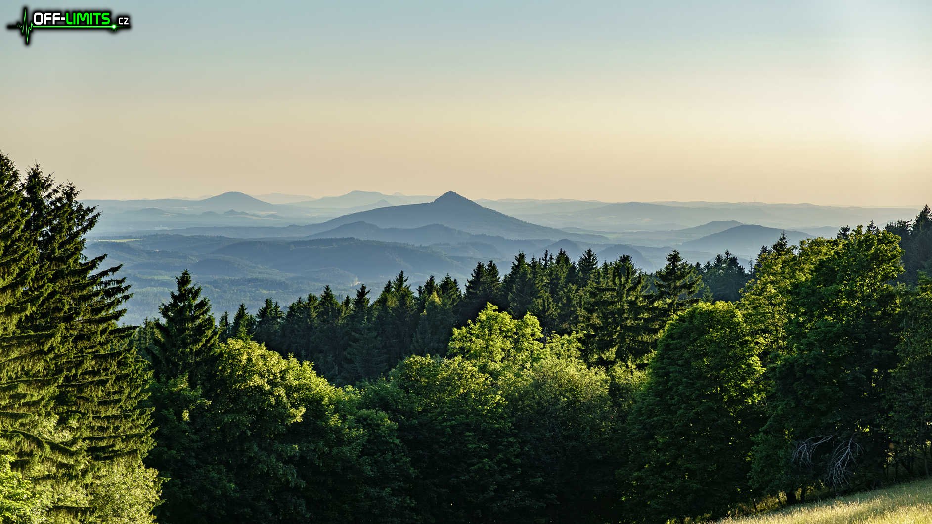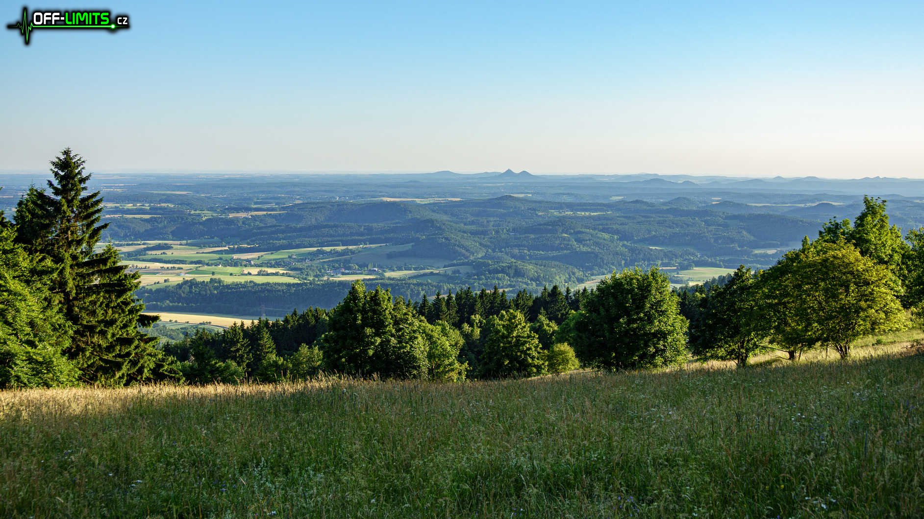 Z osady Hamrštejn jsem po zelené značce začal stoupat vzhůru lesem do přírodní parku Ještěd. Díky stínu se zde daly celkem v pohodě vydržet vysoké teploty. V první části to moc ovšem zajímavé nebylo. Jen jsem se čas od času zastavil, abych si natrhal borůvky. Změna nastala na vrcholu kopce Černá hora (811), kde se začaly střídavě otevírat výhledy skoro všemi směry. Hlavně tedy na západ, kde se rozkládá České středohoří, Kokořínsko - Máchův kraj, Lužické hory a České Švýcarsko.