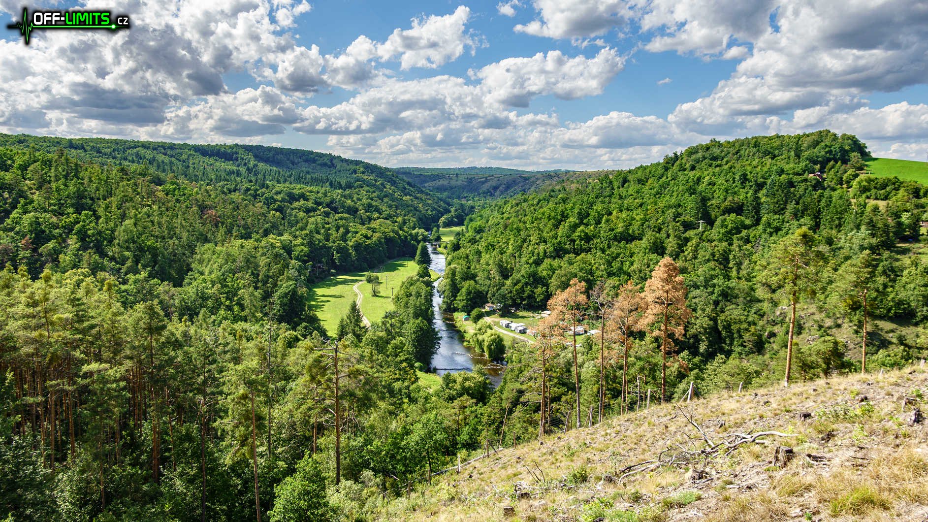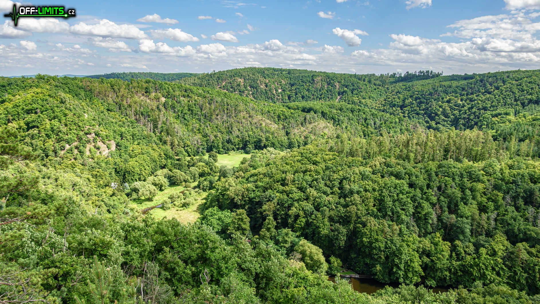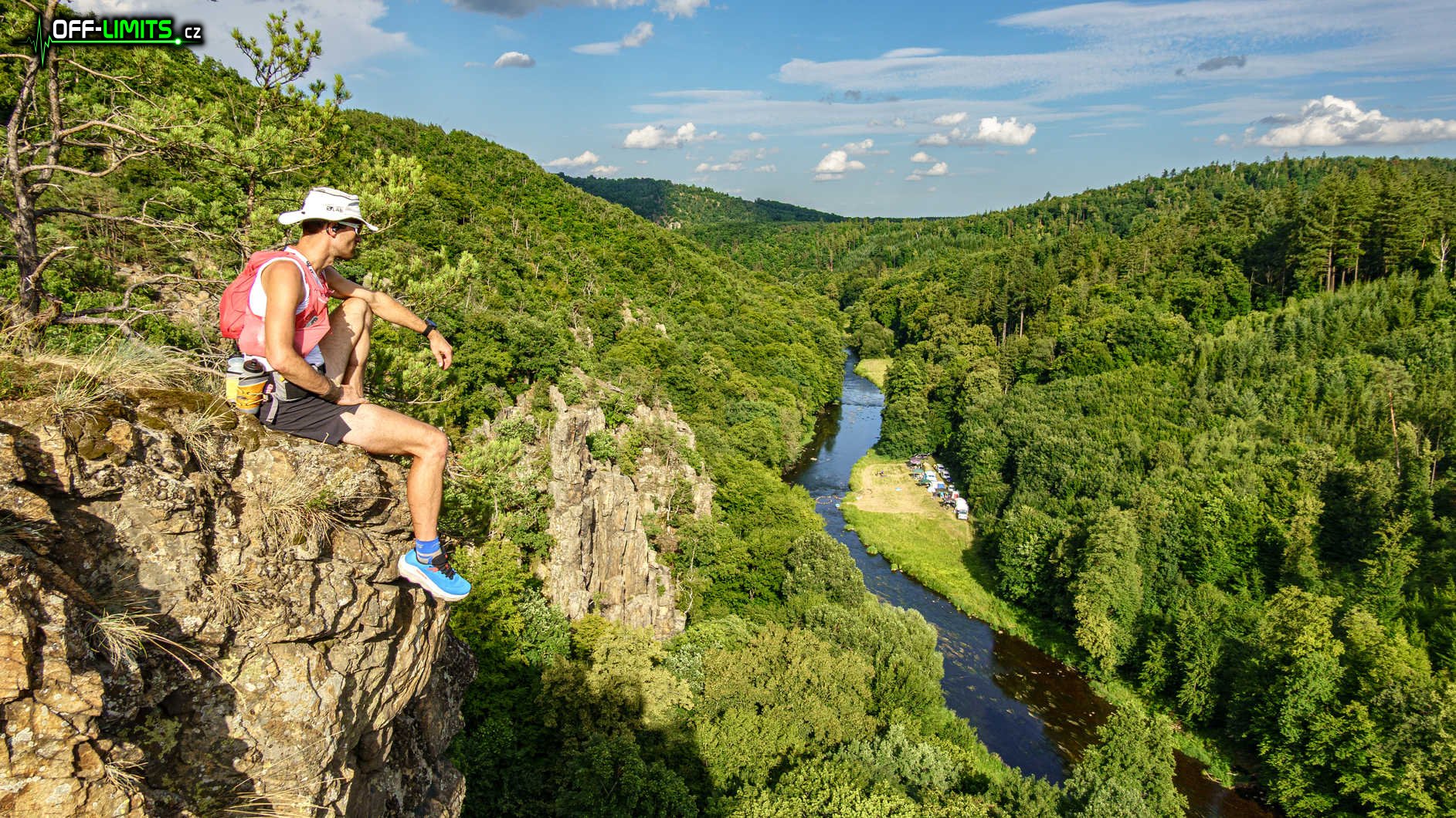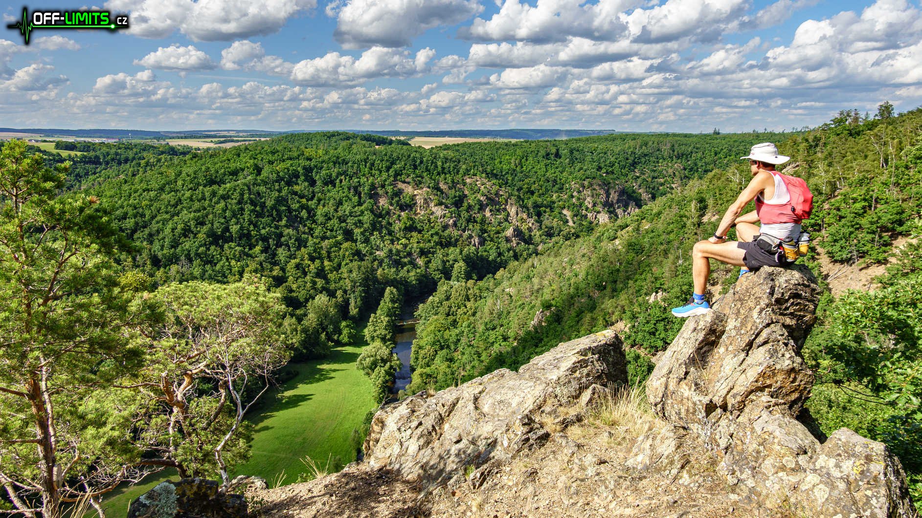 Kolem vodního mlýna Havránek jsem vystoupal na skalní vyhlídku na okraji přírodní rezervace Havran s výhledem zpátky do údolí. Na otočku jsem se zaběhl ještě podívat na druhou stranu kopce, odkud jsem měl poslední výhled na Hadcovou step, a pak už jsem po okraji pole zamířil ke skalní vyhlídce v přírodní rezervaci Pod Havranem. Protože se na obloze akorát proháněly černé mraky, při čekání na slunce jsem snědl část svých zásob. Po seběhnutí zpátky řece jsem opět přebrodil na původní břeh a vystoupal na nejznámější vyhlídku v této oblasti. Ze skalní vyhlídky na Babách jsem měl výhled na obě strany údolí, kde se u vody nacházejí rekreační chaty, místo pro kempování i skály na lezení. Přes další skalní vyhlídky Velká skála a Velký kačer jsem seběhl dolů k řece, abych se občerstvil v restauraci Pod Templštýnem, protože už jsem poslední hodinu měl obrovskou žízeň.