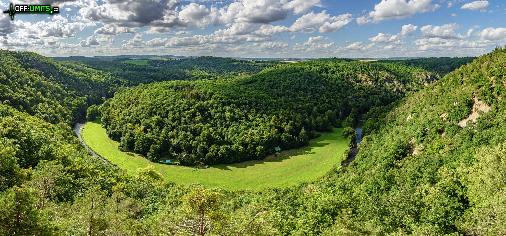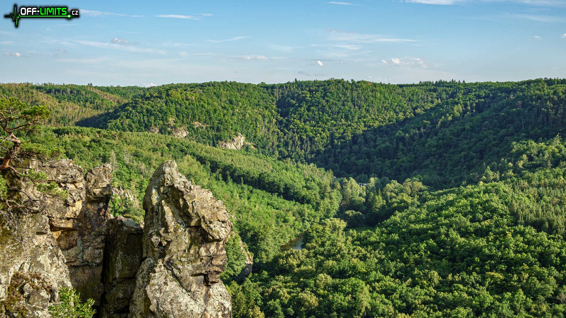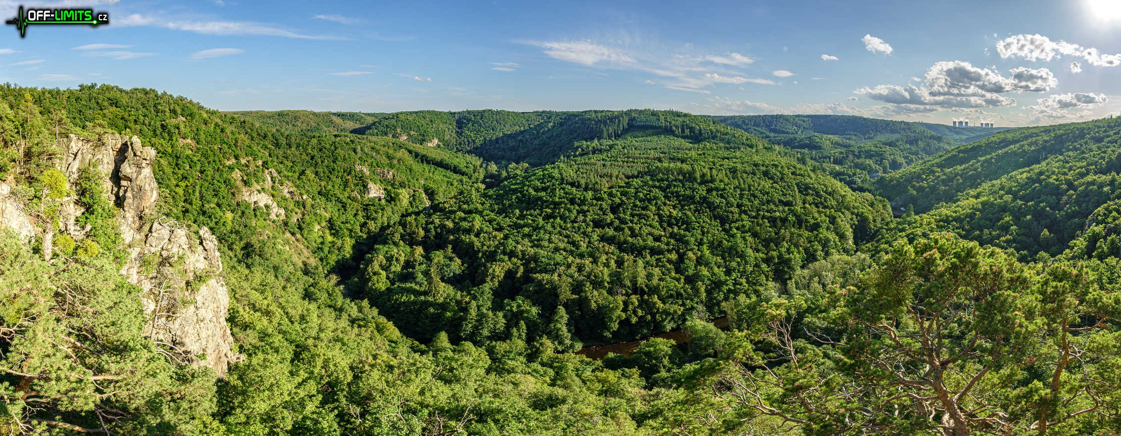 Kolem vodního mlýna Havránek jsem vystoupal na skalní vyhlídku na okraji přírodní rezervace Havran s výhledem zpátky do údolí. Na otočku jsem se zaběhl ještě podívat na druhou stranu kopce, odkud jsem měl poslední výhled na Hadcovou step, a pak už jsem po okraji pole zamířil ke skalní vyhlídce v přírodní rezervaci Pod Havranem. Protože se na obloze akorát proháněly černé mraky, při čekání na slunce jsem snědl část svých zásob. Po seběhnutí zpátky řece jsem opět přebrodil na původní břeh a vystoupal na nejznámější vyhlídku v této oblasti. Ze skalní vyhlídky na Babách jsem měl výhled na obě strany údolí, kde se u vody nacházejí rekreační chaty, místo pro kempování i skály na lezení. Přes další skalní vyhlídky Velká skála a Velký kačer jsem seběhl dolů k řece, abych se občerstvil v restauraci Pod Templštýnem, protože už jsem poslední hodinu měl obrovskou žízeň.