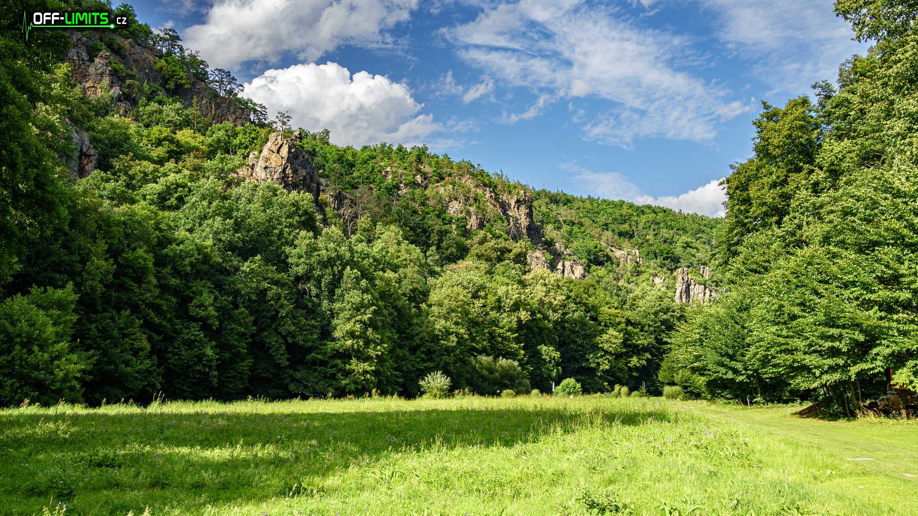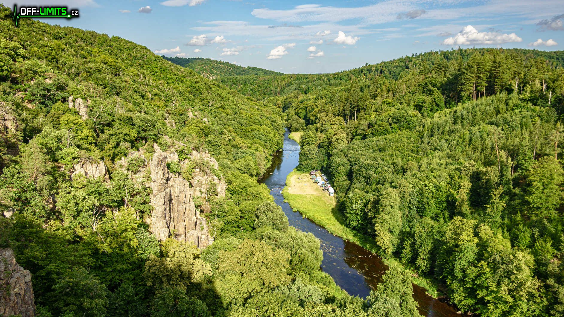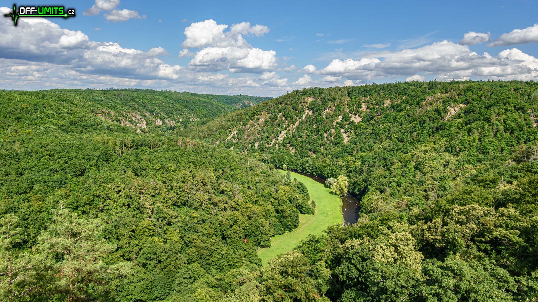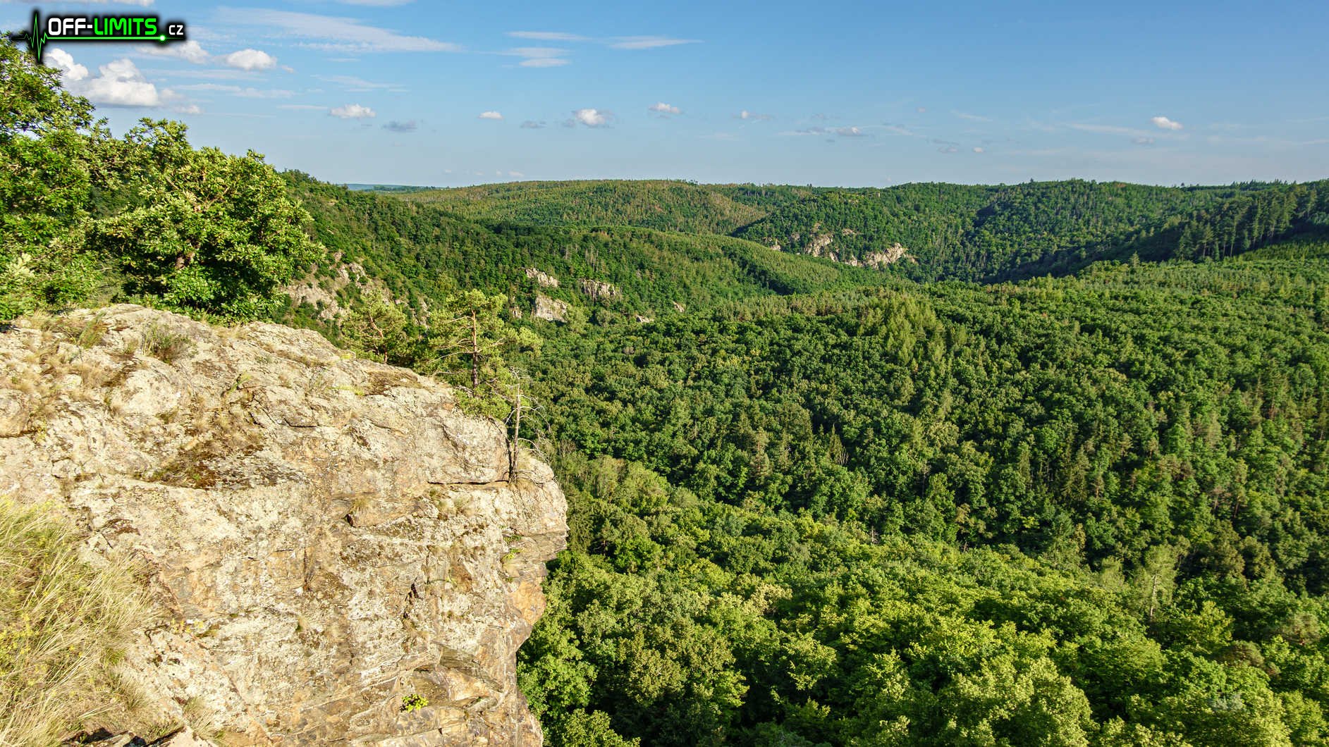 Kolem vodního mlýna Havránek jsem vystoupal na skalní vyhlídku na okraji přírodní rezervace Havran s výhledem zpátky do údolí. Na otočku jsem se zaběhl ještě podívat na druhou stranu kopce, odkud jsem měl poslední výhled na Hadcovou step, a pak už jsem po okraji pole zamířil ke skalní vyhlídce v přírodní rezervaci Pod Havranem. Protože se na obloze akorát proháněly černé mraky, při čekání na slunce jsem snědl část svých zásob. Po seběhnutí zpátky řece jsem opět přebrodil na původní břeh a vystoupal na nejznámější vyhlídku v této oblasti. Ze skalní vyhlídky na Babách jsem měl výhled na obě strany údolí, kde se u vody nacházejí rekreační chaty, místo pro kempování i skály na lezení. Přes další skalní vyhlídky Velká skála a Velký kačer jsem seběhl dolů k řece, abych se občerstvil v restauraci Pod Templštýnem, protože už jsem poslední hodinu měl obrovskou žízeň.