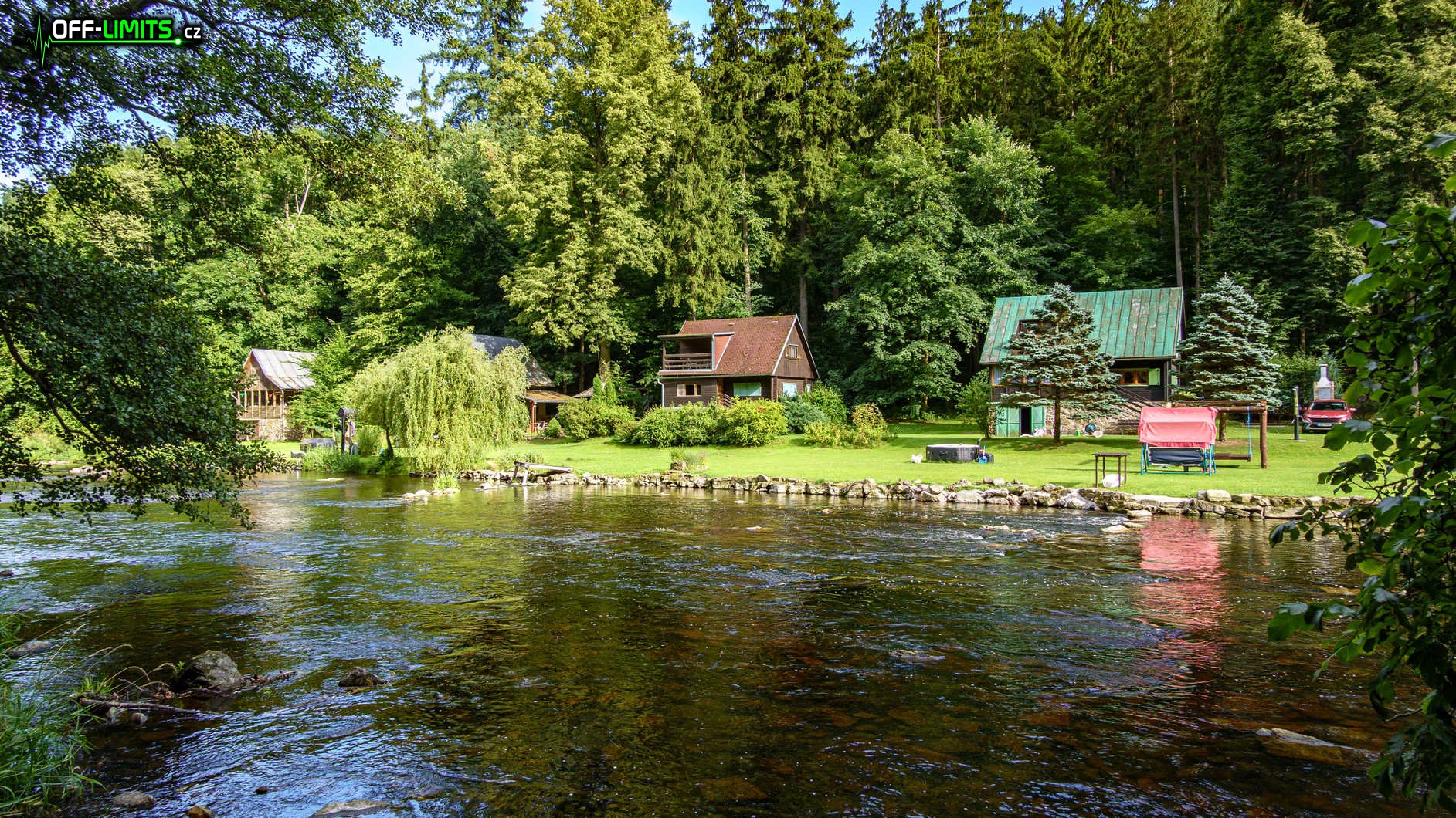 Kolem půl desáté v noci jsem s čelovkou na hlavě seběhl dolů k Senoradskému mlýnu, kde jsem si ze studny naposledy doplnil pití v láhvích. Pak už jsem po červené trase kolem kopce Kraví hora (379) zamířil nahoru proti proudu. Ačkoli byl teplý letní večer, tak kvůli všednímu dní byly rekreační chaty většinou prázdné. Když jsem se po několika kilometrech dostal Dlouhou Oslavou pod skálu Jinošovnice, vystoupal jsem k loveckému zámečku Vlčí kopec. Bylo akorát kolem 11 hodiny v noci, takže než jsem přes lesní cesty a silnice prokličkoval zpátky do Kramolína, byla přesně půlnoc. Tento běh mi až tak moc dobře nesedl. Celý den se po obloze honily tmavé mraky, které mě komplikovaly focení a ani se mi po většinu trasy moc dobře neběželo. Ale i tak jsem byl rád, že jsem se krásným údolí Jihlavy proběhl.