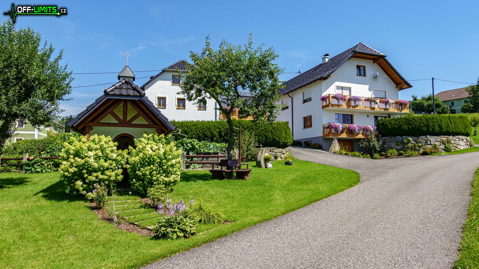 Po pár kilometrech v údolí dojíždím do obce Mairspindt, kde začnu po silnici stoupat mezi pastvinami nahoru na kopec. Freiwald (rakouská část Novohradských hor) je úplně jiná. U nás v Česku jsou jen samé lesy a rozbité cesty. Ovšem zde v Rakousku je mnoho vesniček, které jsou obklopeny loukami a pastvinami, takže jsou zde pěkné výhledy. Když se dostanu nahoru k lesu, odbočím na lesní cestu, po které se dostanu téměř až ke skále Jankuskirche. Jen posledních sto metrů musím pěšky. Po vylezení na skálu se dostávám na krásnou vyhlídku. Od skály pokračuji k osadě Predetschlad, kde už je zase silnice. Na otočku se ještě jedu podívat pod vrchol kopce Plochwald (1040), kde se nachází zatopený lom, nazývaný Silbersee. Bohužel je soukromý a nepřístupný, takže se v něm koupat nedá. Tou dobou se mi rozlepí levá cyklistická tretra, takže si ji musím oblepit páskou. Vracím se zpátky a stále po silnici přejíždím několik kilometrů až do obce Sandl. Po krátkém úseku po hlavní silnici odbočuji k zámku Rosenhof. Vykopu se v rybníce Unterer Rosenhofer Teich, kde je voda zbarvena do nádherně červenohnědé. Přes les potom přejíždím k osadě Stadlberg, která leží jen kousíček od obce Pohoří na Šumavě.