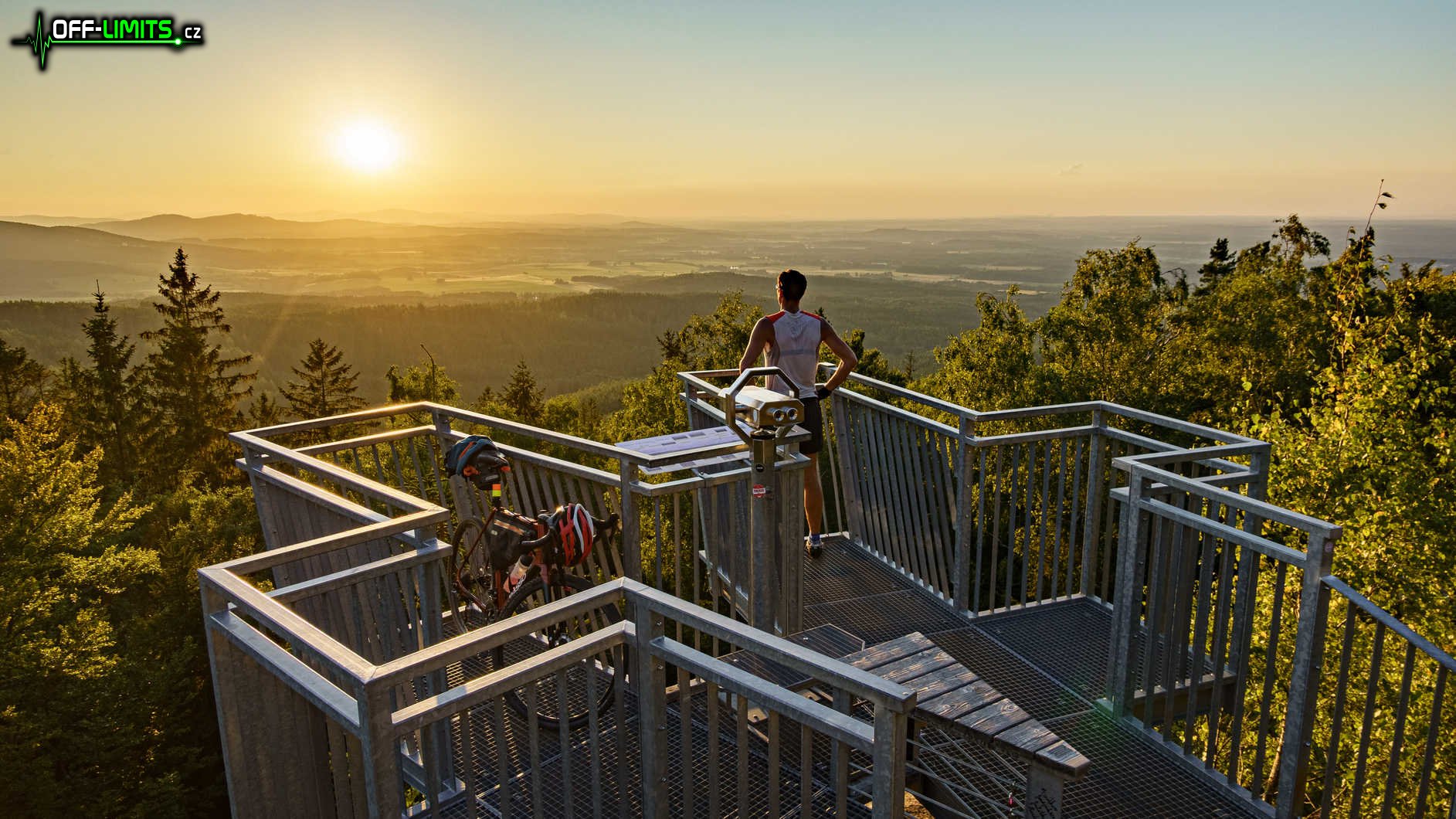 Další úsek je velmi náročný, protože kolem pramene řeky Lužnice (Lainsitzursprung) stoupám po štěrkové cestě až na vrchol kopce Tischberg (1063), kam jsem se chtěl už roky podívat, protože se tam nacházejí velké skalní masivy. Náročný výstup se vyplatil, protože ze zmiňovaných skal jsou tam pěkné panoramatické výhledy jihozápadním směrem. Bohužel náročný terén nepřežije pravá tretra, takže už mám oblepené obě. Čas přeskočil pátou hodinu odpolední, proto musím další úsek velmi urychlit. Přes obec Karlstift sjíždím po nekonečně dlouhé, štěrkové cestě až do obce Harmanschlag. Tam odbočím na silnici, po které stoupám až na vrchol kopce Nebelstein (1017). Nahoře je vyhlídková plošina, ze které jsou výhledy všemi směry, takže se tam chvíli zdržím a pozoruji krajinu. Při západu slunce potom sjíždím po druhé straně kopce do obce Lauterbach.