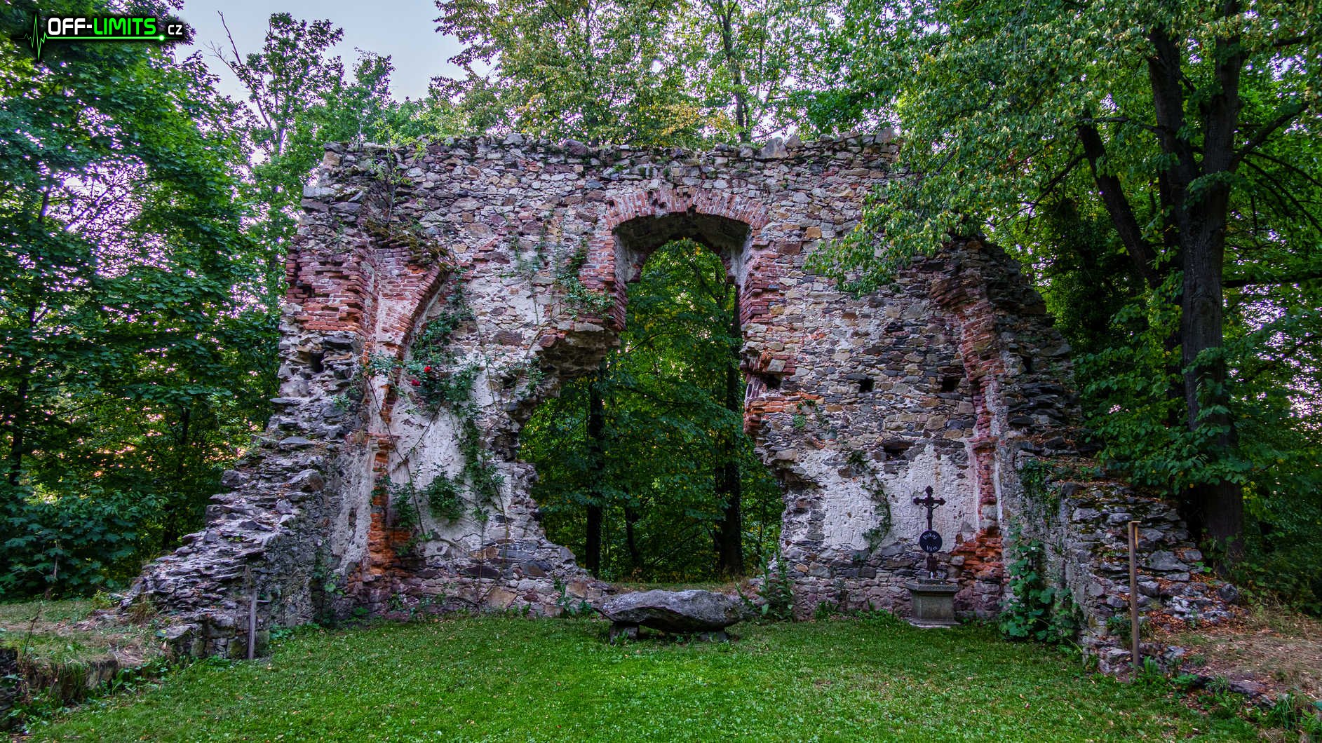 Přes pastvu s krávami jsem vystoupal nad obec Lutová ke zřícenině kostela Narození Panny Marie. Pak už jsem pomalu zamířil zpátky. Po zelené značce jsem přeběhl přes hlavní silnici do nekonečného lesa. Za sebou jsem měl téměř 50 km, kdy mě bolely už i obě nohy, jak jsem se při každém kroku snažil nevědomky malíčku odlevovat. Některé části jsem proto už jen šel. Před desátou hodinou noční jsem dorazil na dohled od Třeboně. Na otočku jsem se ještě zastavil u Schwarzenberské hrobky a pak už jsem se po hrázi rybníka vrátil k autu, abych se mohl vydat na půlnoční cestu domů do Třebíče. Zajímavé bylo, že druhý den mě malíček téměř vůbec nebolel.