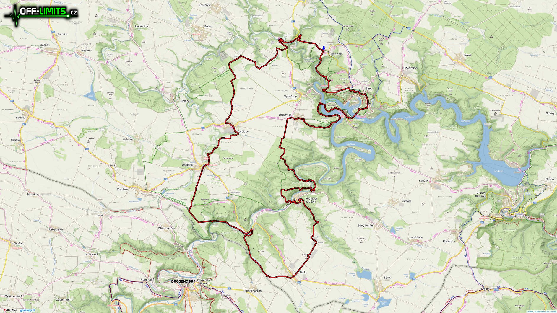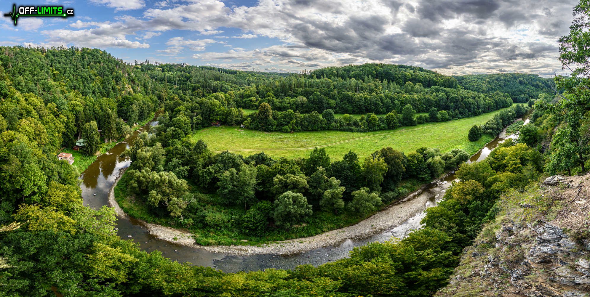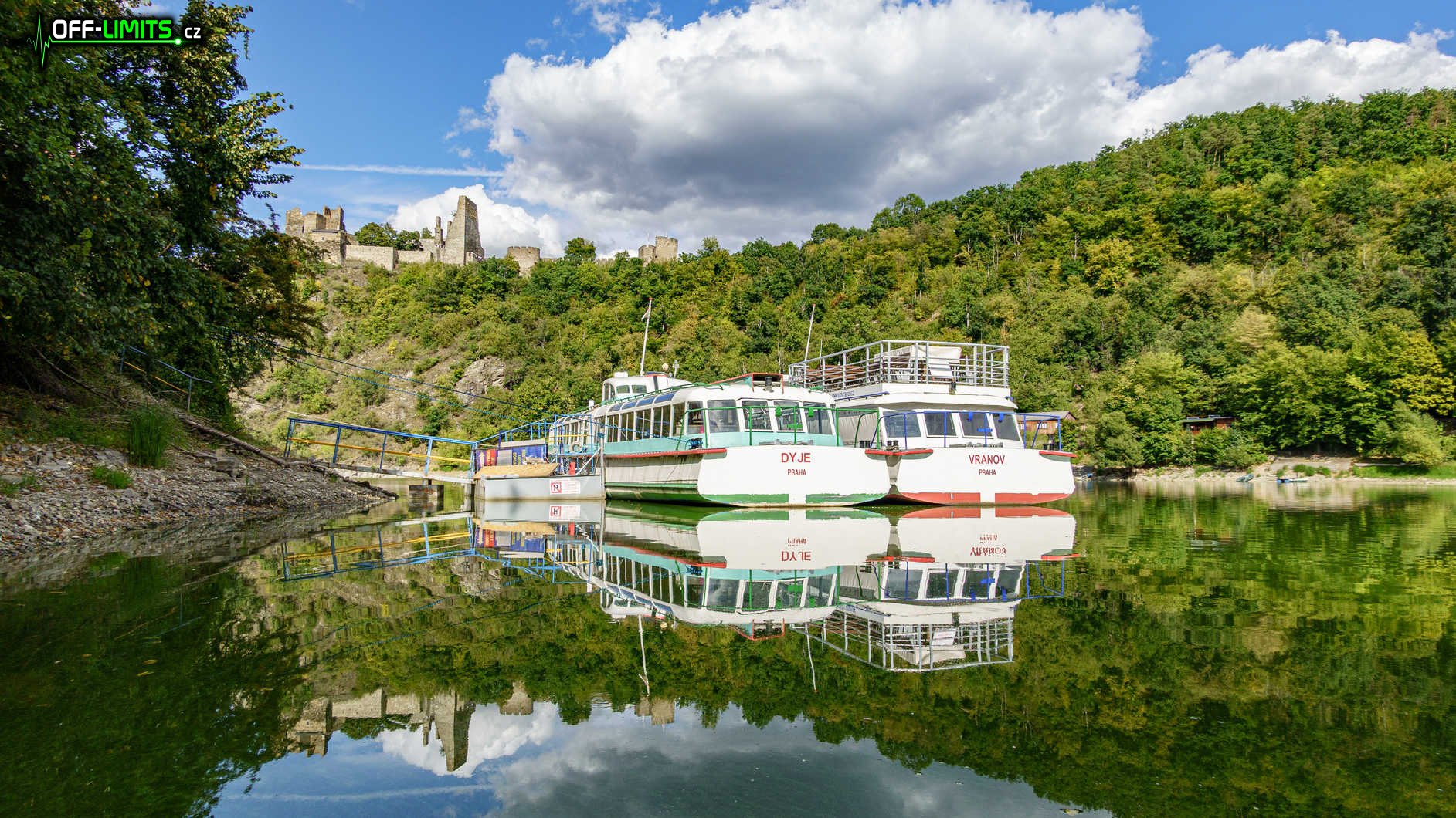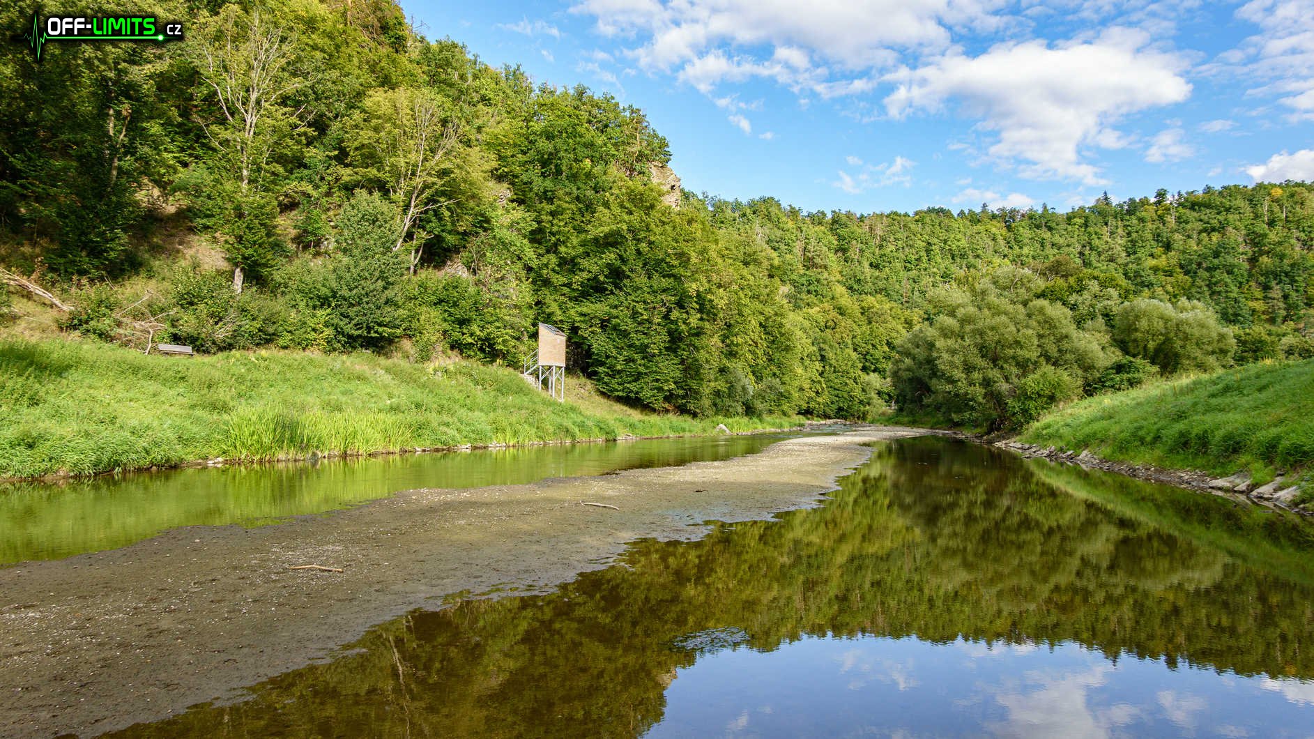 Bylo akorát půl páté odpoledne a ze západu se přiblížila oblačnost, která postupně zakryla téměř celou oblohu. Byl jsem tedy rád, že jsem nejkrásnější část kolem přehrady stihl ještě za slunečního svitu. Popoběhl jsem pár kilometrů a dostal se před začátek Vranovské přehrady, kde teče řeka Dyje. Využil jsem nízkého průtoku a přebrodil na druhou stranu, abych se mohl vydrápat na další dvě skalní vyhlídky v přírodní památce Bau. Po chvíli kochání výhledy jsem se vrátil k řece a opět přebrodil na původní břeh.