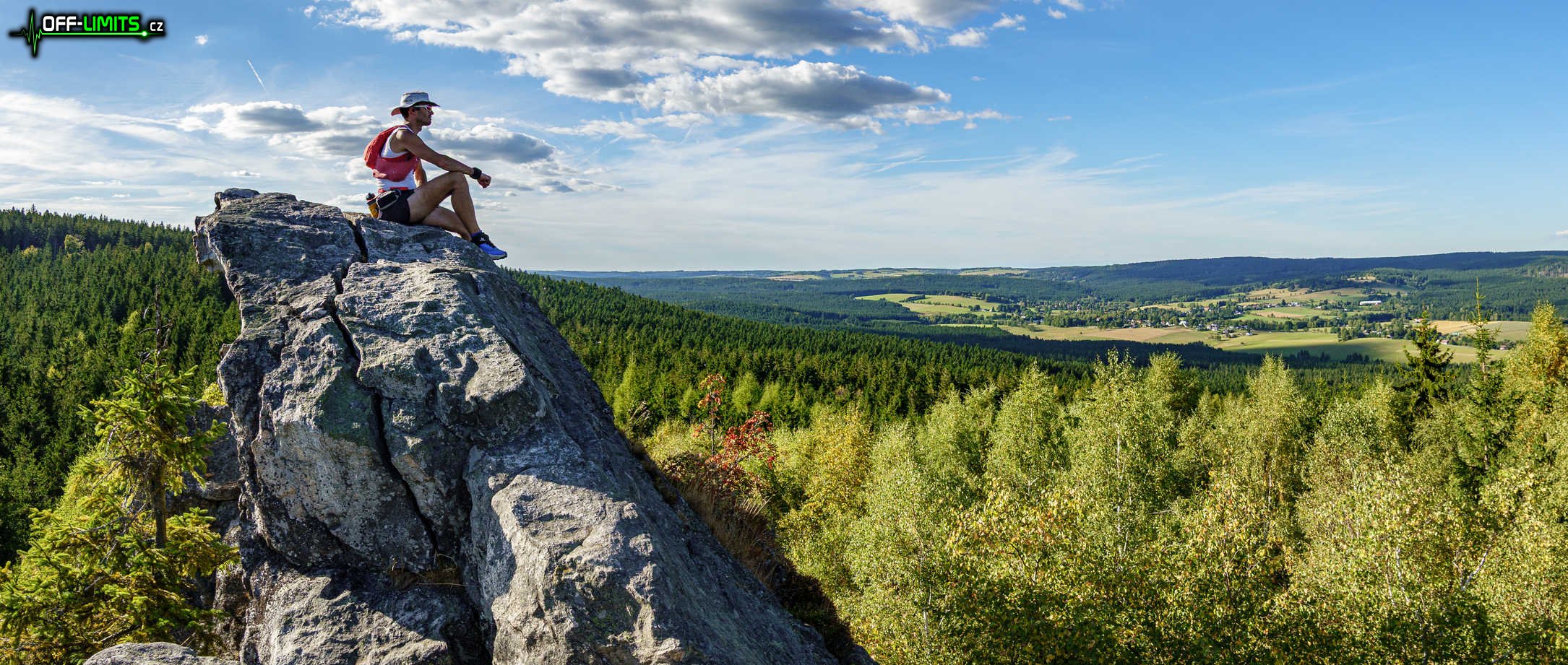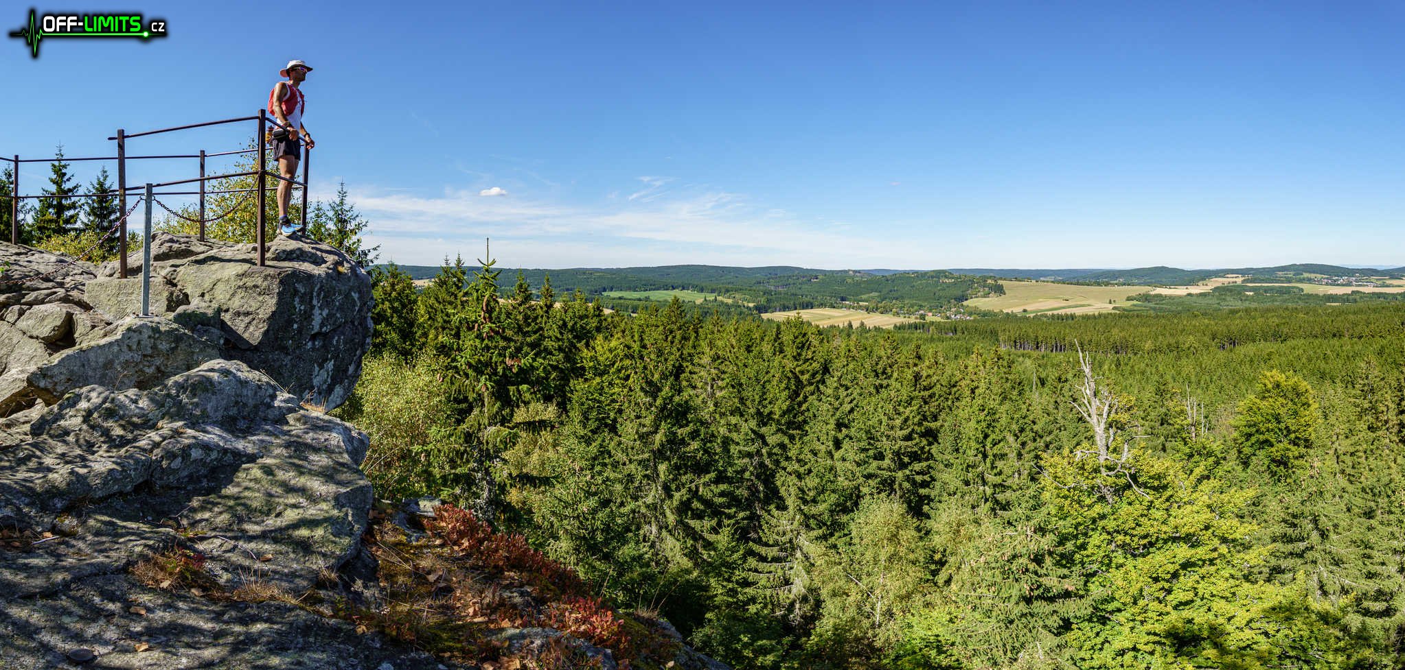 Protože jsem věděl, že budu mít v Novém městě na Moravě odpracováno velmi brzy, vzal jsem si na zbytek dne dovolenou. To mi umožnilo vyběhnout od přírodního koupaliště už před jedenáctou hodinou dopolední. První kroky mě za nádherného babího léta s nádechem brzkého podzimu vedly přes obec Maršovice a Pohledec k Vávrově skále. Akorát jsem tam zastihl lezce, kteří odcházeli, takže jsem měl po vylezení nahoru výhled na Novoměstsko jen pro sebe. Přes louku jsem potom přeběh do nedalekého lesa, kde se nachází kopec Pohledecká skála (812), kolem které je kromě vojenského vysílače roztroušeno i několik skalních věží. Opět jsem si na všechny vylezl, abych měl výhled jižním směrem na Nové Město na Moravě.