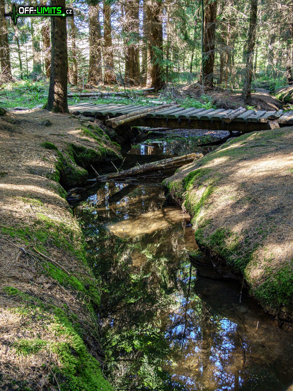 Následoval výstup po zelené značce kolem osady Samotín a monumentu Radka Jaroše až na vrchol kopce Drátenická skála (776). Protože bylo akorát po čtvrté hodině odpolední, na oblíbené skále Dráteničky se nacházelo mnoho lezců. Na chvíli jsem se k nim přidal a nahoru si vylezl lehčí cestou. Moje nejoblíbenější skála mě ovšem teprve čekala. Po dlouhém a náročném výstupu lesem mimo cesty jsem dorazil na vrchol kopce Malinská skála (813). Jedná se o jedinou skálu v celých Žďárských vrších, ze které je výhled naprosto všemi směry. Kromě po okolní krajině byly díky výborné viditelnosti vidět podobně jako z Pasecké skály i vrcholky Krkonoš, Jeseníků, Jizerských i Orlických hor. Po dlouhém kochání na vrcholu jsem potom přes Černou skálu, ukrytou v lese, seběhl k Milovskému rybníku. Využil jsem otevřeného sociálního zařízení a v umývárně si naposledy doplnil pití. Když jsem o něco později za obcí Milovy přebíhal meandry na řece Svratka, v jedné tůňce jsem se vykoupal a příjemně ochladil.