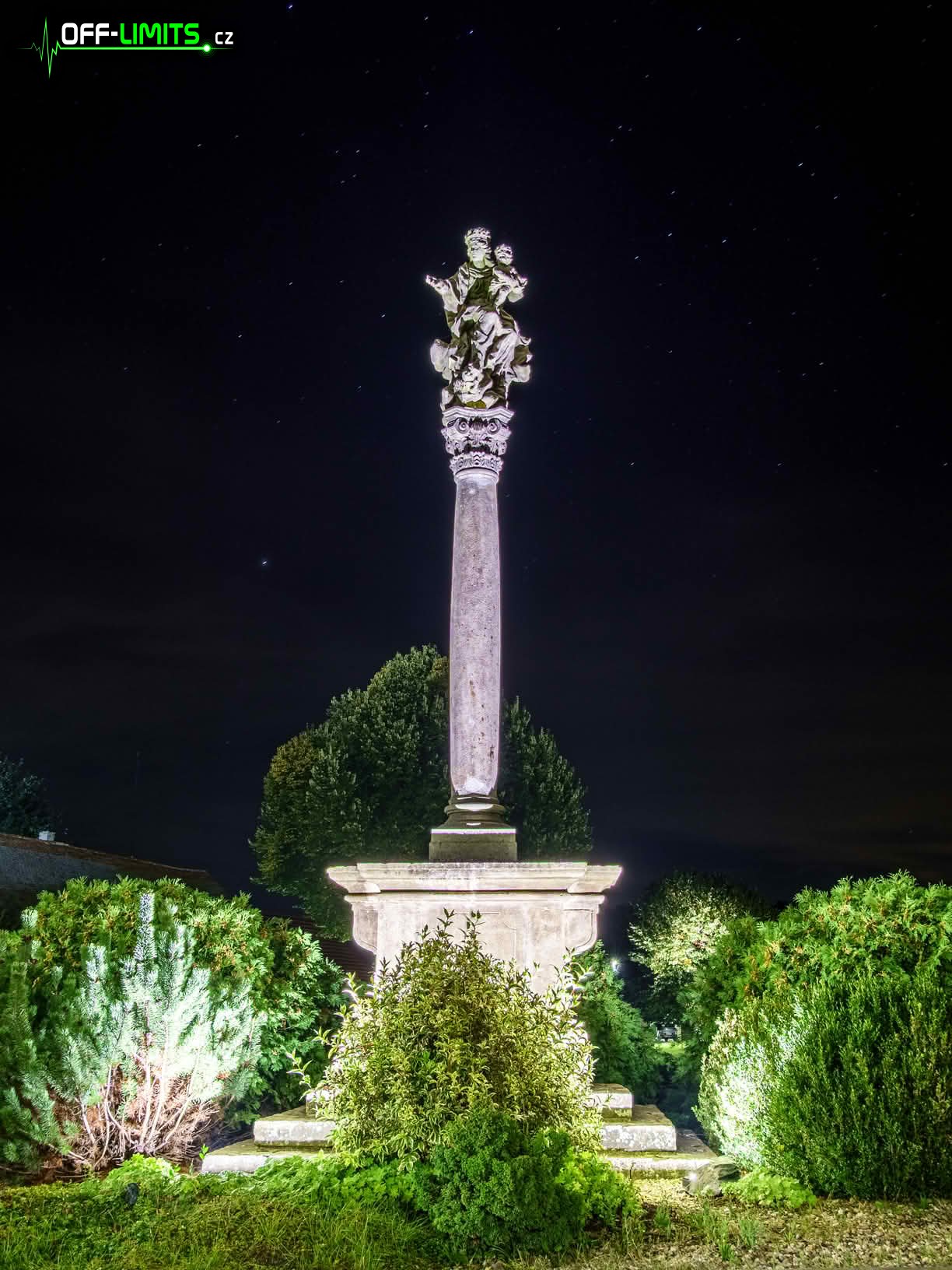 Již za tmy projíždím po břehu horní vodní nádrže Nové Mlýny kolem obce Pasohlávky. Pak už mě čeká silnice až domů. Ale to je ještě stále 80 km daleko. Protože celý den fučí silný východní vítr, jede se mi s větrem v zádech výborně. Projedu obcemi Vlasatice i Branišovice a pak dostanu nápad navštívit i okolní obce okolo hlavní silnice, kde jsem ještě nikdy nebyl. A zároveň v každé obci vyfotit nasvícený kostel. Odbočuji tedy do obcí Olbramovice a Bohutice. Největší odbočku podniknu ve městě Český Krumlov, kde navštěvuji vyhlídku u kaple sv. Floriána, od které mě potom čeká prudkých sjezd lesem přímo do centra. Prokličkuji městem ven a přes obce Dobřínsko, Dolní i Horní Dubňany a Dukovany přijíždím k jaderné elektrárně Dukovany. Celý areál objíždím z jižní strany, kde pořizuji pár zajímavých fotek. Protože už je po půlnoci, přestanu kličkovat a posledních 30 km jedu do Třebíče po úplně prázdné hlavní silnici. Domů se dostávám kolem druhé hodiny ranní.