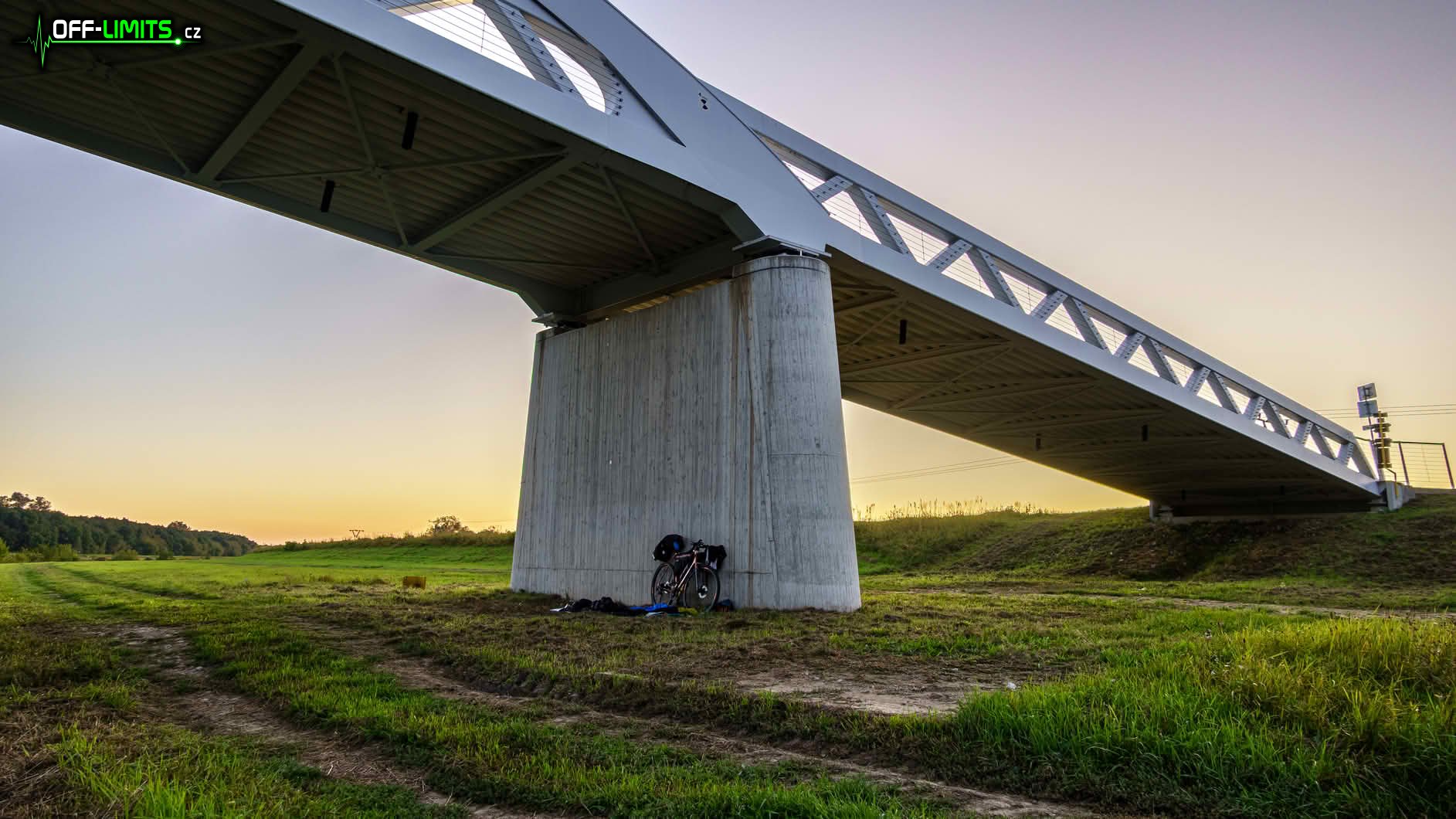 Ráno se probouzím už v šest hodin, kdy mě překvapuje, že je teplota 18 stupňů. Teplejší spacák jsem si tedy bral úplně zbytečně. Protože už se mi nechce spát, vylézám z bivaku a jdu s foťákem na českou stranu mostu, abych zachytil východ slunce. Po návratu se sbalím a díky tomu vyrážím na trasu už ve tři čtvrtě na osm. Ačkoli nemám vůbec žádné jídlo, náskok využívám k jízdě po břehu řeky Morava až řece Radějovka (Baťův kanál) na úpatí Bílých Karpat. Otáčím to před obcí Sudoměřice a vydávám se na zpáteční cestu.