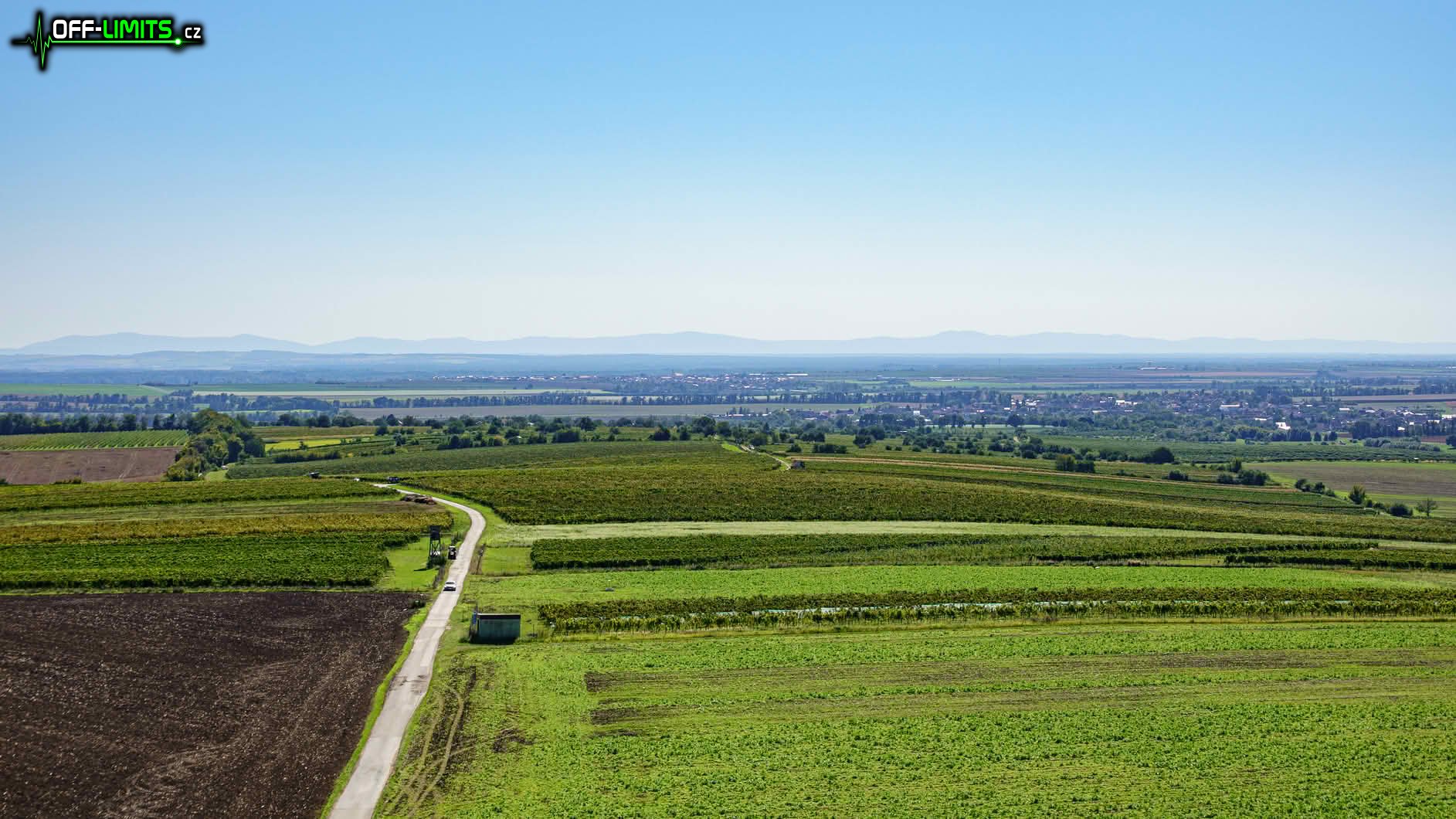 Ráno je u vody jen 11 stupňů a vlhko, takže mám sbaleno až o půl desáté. Když chci akorát odjet, tak přijíždí majitel pěchotního srubu, který mi umožní soukromou prohlídku opevnění. Na cestu se tedy vydávám až v deset hodin. První kilometry jedu po polní cestě přímo kolem Dyje, která tvoří česko-rakouskou státní hranici. Když se po necelé hodině dostanu do obce Hevlín, jsem nepříjemně vytřepaný. Hned při příjezdu potkávám místní domorodce v krojích. Asi jsem trefil nějaké zajímavé období, protože se mi to děje téměř v každé obci. V obchodě si nakoupím zásoby a pokračuji v cestě. Po dlouhých a nekonečných cyklostezkách dojíždím do obcí Jevišovka a Novosedly, kde opouštím rovinatou krajinu. Mým cílem jsou vrcholy kopců Růžová hora (282) a Velká Slunečná (283) v národní přírodní památce Dunajovické kopce. Protože zde nejsou žádné cesty pro kola, asi hodinu se tam pohybuji po náročných písečných cestách v prudkých stráních. Odměnou jsou mi krásné výhledy na Pavlovské vrchy na Pálavě i Mikulovický zámek a krajina téměř bez lidí. Na rovinatou a přelidněnou cyklostezku se vrátím až v obci Březí, kde si opět nakoupím něco k pití.