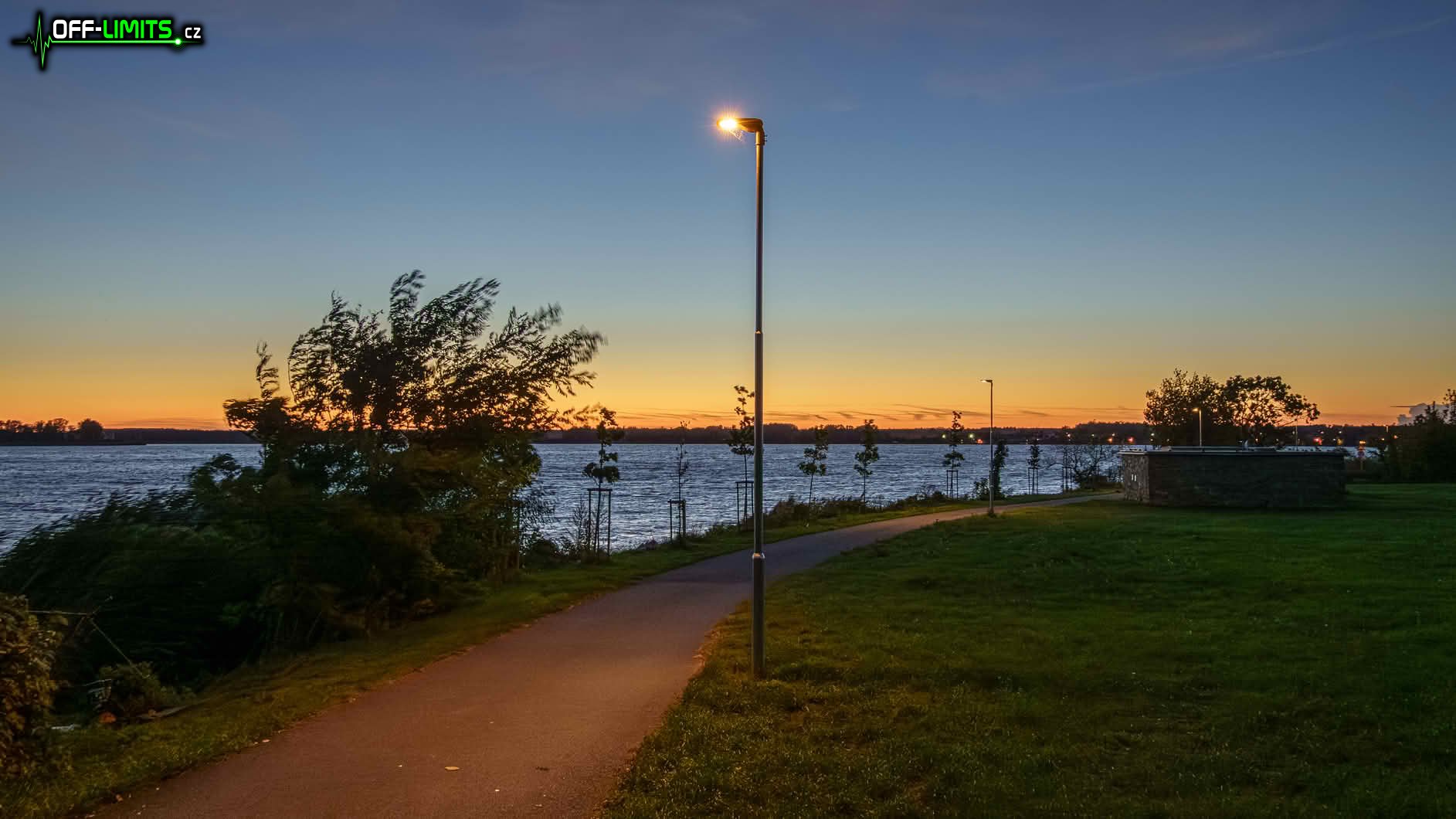 Když se po pár kilometrech jízdy lesem po cyklostezce dostávám opět k Dyji, ve stánku si dávám nějaké občerstvení. Pak už po břehu Dyje přejíždím do obce Bulhary. Opouštím rovinu a po žluté turistické značce stoupám na vrchol kopce Přítlucká hora (293), kde stojí rozhledna Maják. Po náročném výstupu mám opět podobný výhled do krajiny jako z rozhledny předchozí. Jen Pálavské kopce jsou blíž a slunce nad horizontem níž. Přes obec Zaječí přejíždím na vrchol nedalekého kopce Kalvárie (262), kde stojí rozhledna Dalibor. Výhledy jsou výrazně horší, takže po pár fotkách sjíždím po silnici do obce Šakvice. V místním obchodě naposledy doplňuji zásoby na cestu. Když následně projíždím po levém břehu dolní Novomlýnské vodní nádrže, koná se nádherný západ slunce. Když se dostanu ke střední nádrži, už je po západu. Pod rybářským dohledem se nahý vykoupu v přítoku řeky Svratka a připravím si čelovku s blikačkou na noční úsek.