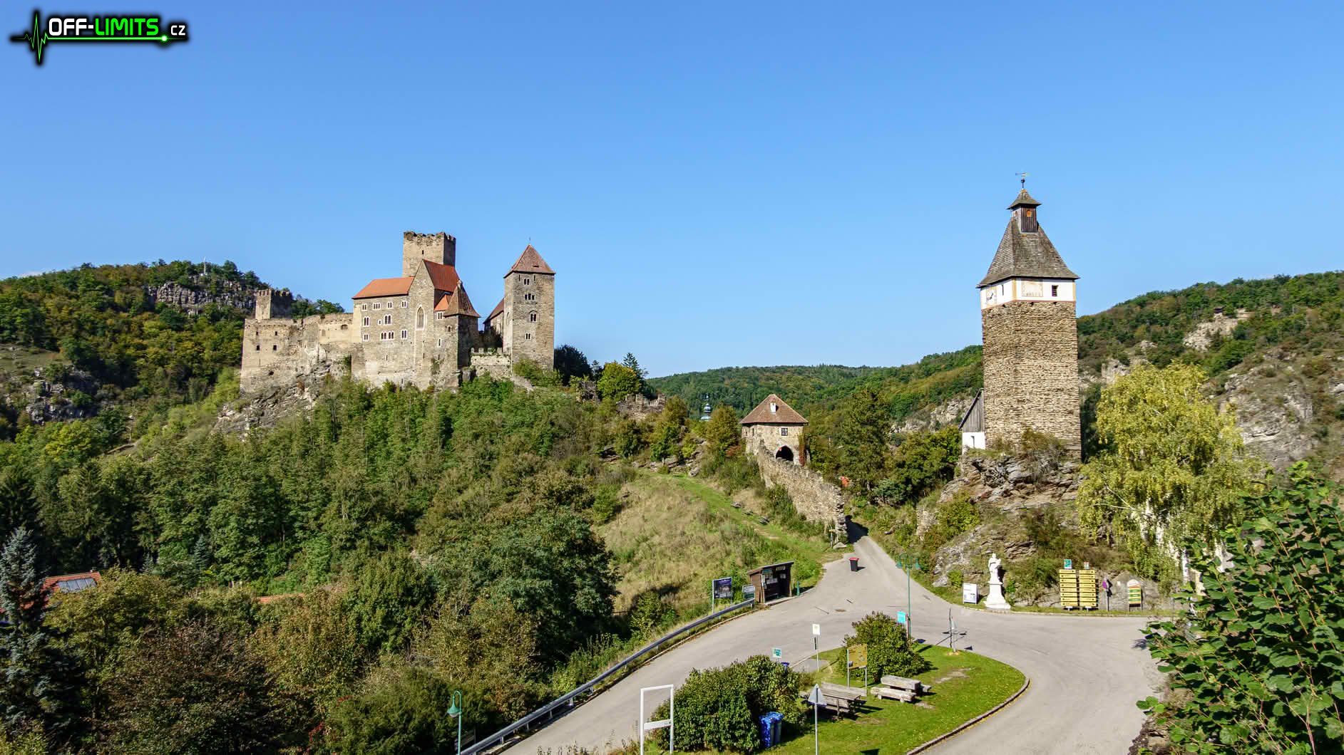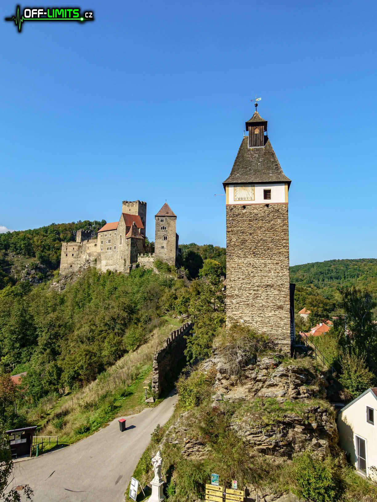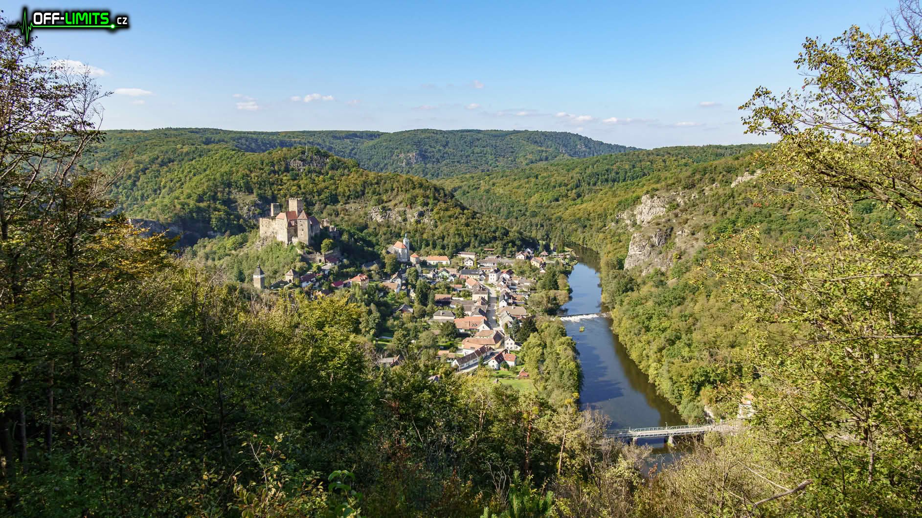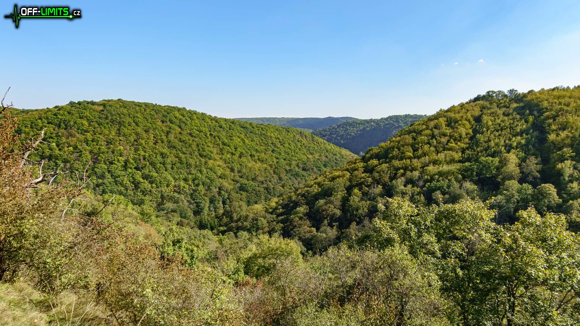 Další úsek byl příjemně běžecký, protože jsme obíhali po rakouské straně pod Vraní skálou obří meandr řeky Thaya (Dyje) kopec Umlaufberg. Potom jsme se na chvíli zastavili na skalní vyhlídce Überstieg a snědli svačinu. Po doplnění sil nás čekalo poslední těžší stoupání, a to na novou vyhlídku Umlaufblick. Jak jsme celý den měli téměř liduprázdno, tak zde jsme si to vybrali. Na vršku jsme totiž byli asi v deseti lidech. Zkoukli jsme tedy panoramatický výhled po centrální části národního parku Podyjí (Thayatal) a pokračovali přes obec Merkersdorf ke zřícenině hradu Kaja (Chýje). Tím pro nás skončila zajímavá část údolím.