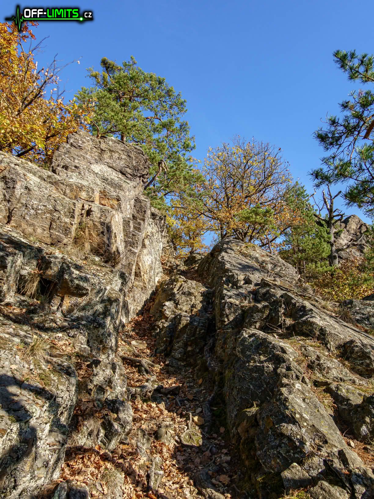 Cesta po skalním hřebenu ke zřícenině hradu Levnov (Ketkovický hrad) mezi řekami Oslava a Chvojnice