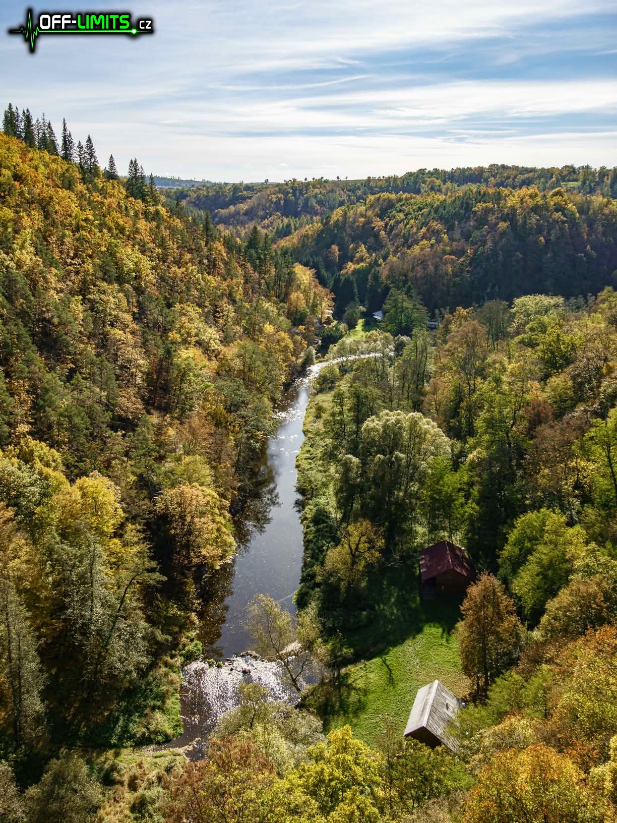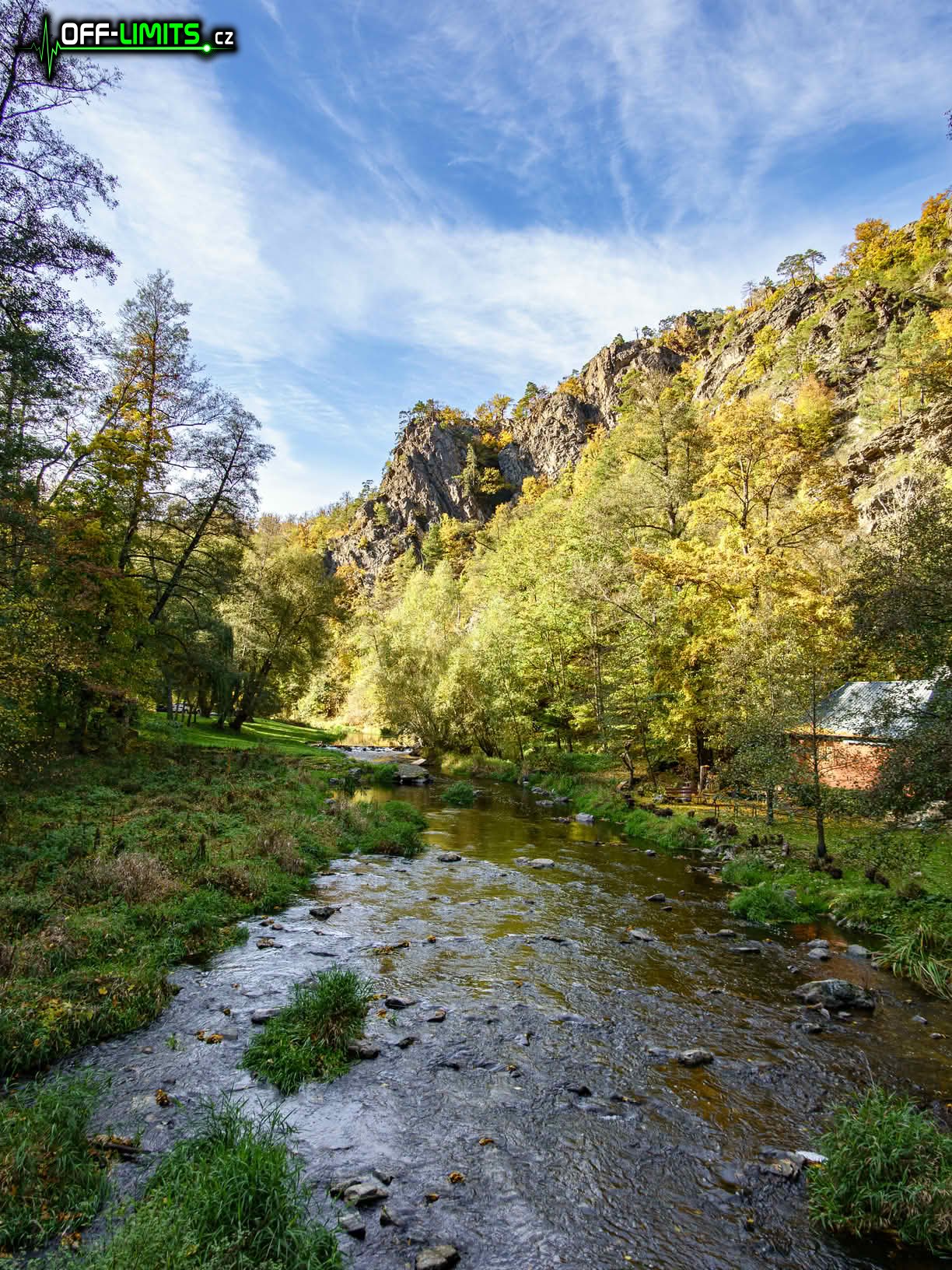 předchozího dne mně pár hodin zdrželo. Nakonec jsem ještě změnil plány a místo do údolí řeky Jihlava jsem autem zamířil do vedlejšího údolí řeky Oslava. Zaparkoval jsem u loveckého zámečku Vlčí kopec a před polednem zamířil do údolí. Nejprve jsem se zaběhl podívat pod skálu Jinošovnice a pak ještě na výhled proti proudu. Nakonec jsem to otočil a zamířil plánovaně po proudu. Asi kilometr jsem se držel nahoře na úbočí údolí, abych se dostal k bývalé vápenici. Pak už jsem seběhl dolů a pokračoval dál po proudu Oslavy.