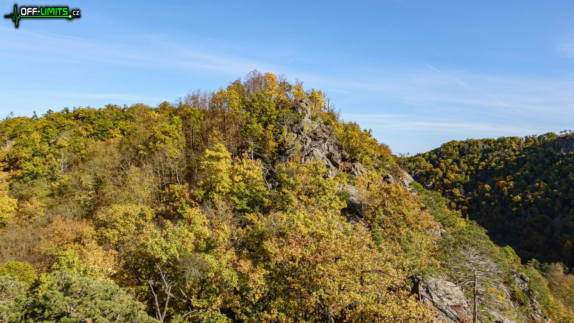 Vrchol skalního hřeben se zříceninou hradu Levnov (Ketkovický hrad) mezi řekami Oslava a Chvojnice