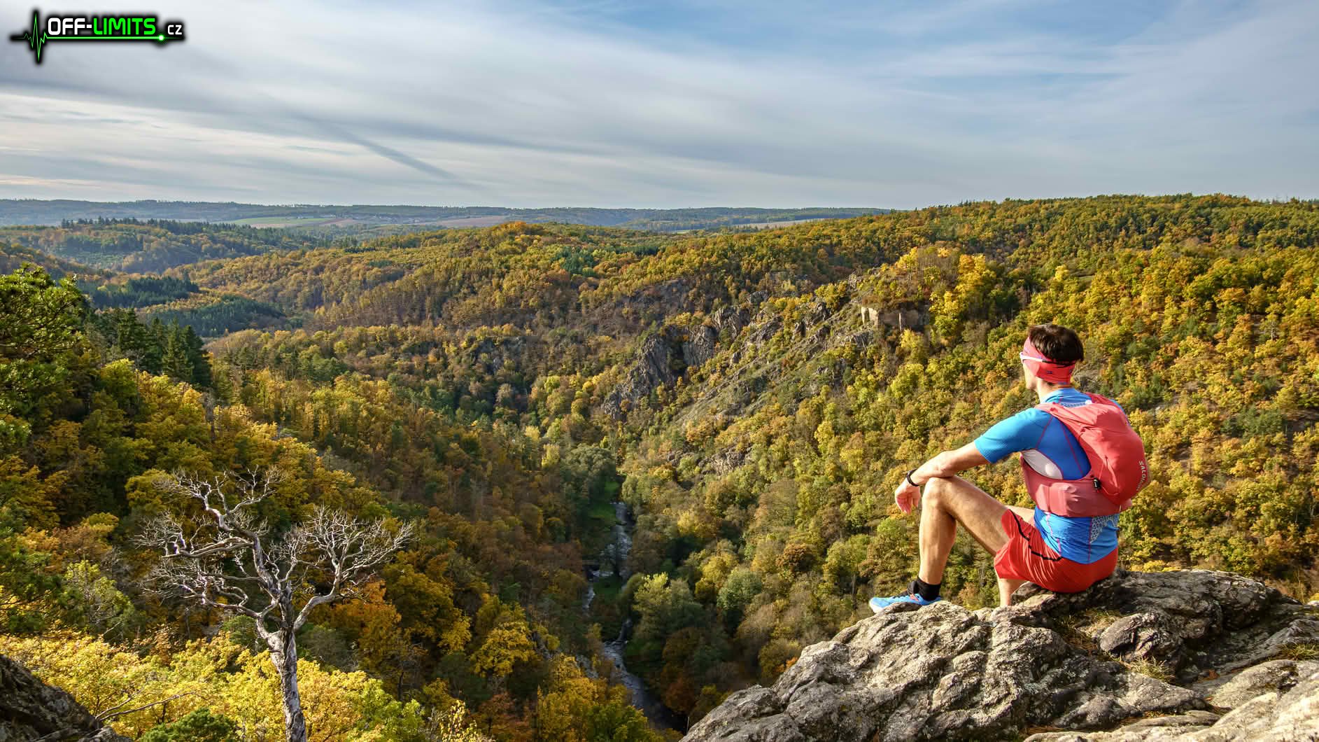 Protože jsem vybíhal v dlouhém oblečení a na slunci mně začalo být nepříjemně teplo, brzy jsem se převlékl do oblečení krátkého. Proběhl jsem Údolím strašné žízně až ke Skřipinskýmu mlýnu. Po dalších pár kilometrech mně červená značka dovedla na kopec ke zřícenině hradu Kraví hora. Z úbočí tohoto kopce jsou méně známé, ale pěkné výhledy. Seběhl jsem dolů do údolí, kde se stékají řeky Oslava a Chvojnice. Přímo mezi nimi se nachází výrazný skalní hřbet, přes který vede náročná cesta až nahoru ke zřícenině hradu Levnov (Ketkovický hrad). Po cestě jsou parádní výhledy, takže se očekávaně výstup výrazně protáhl.