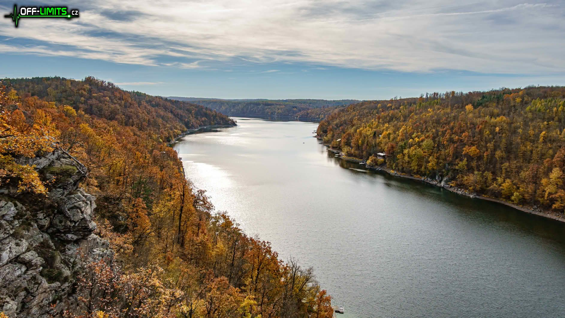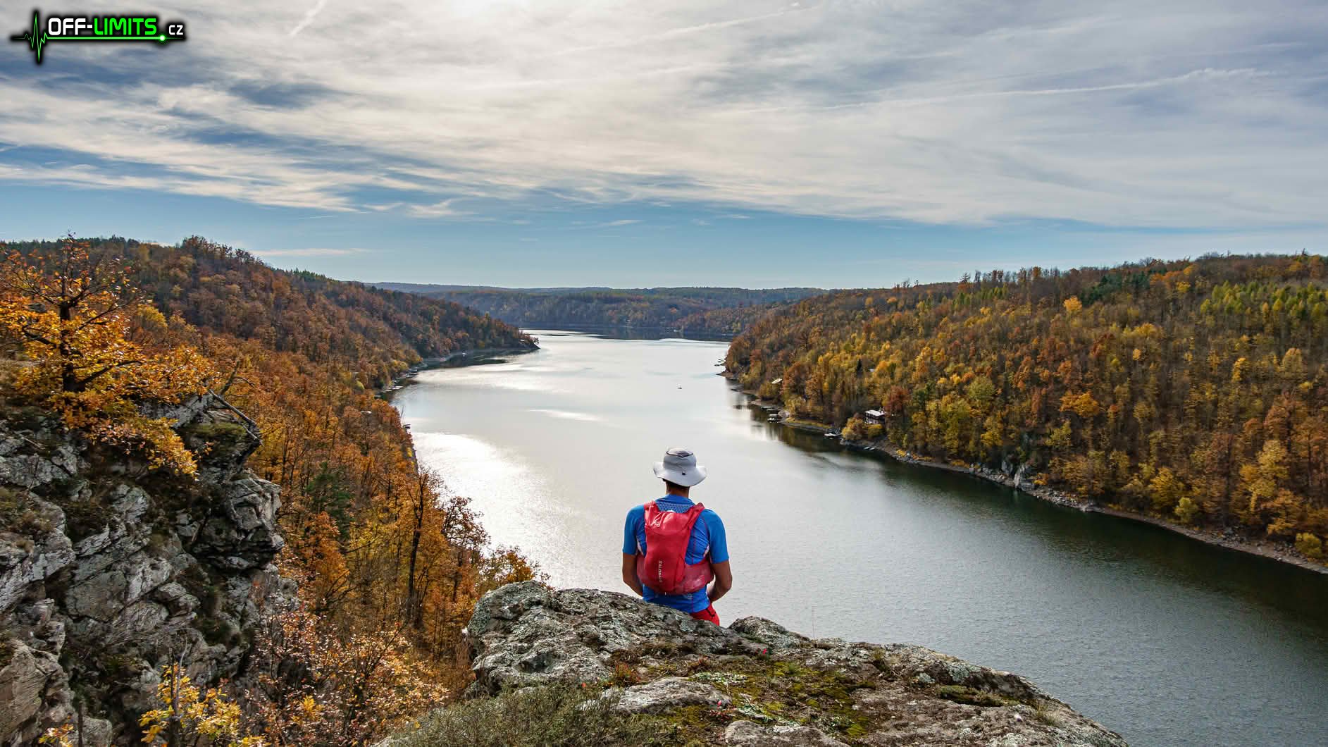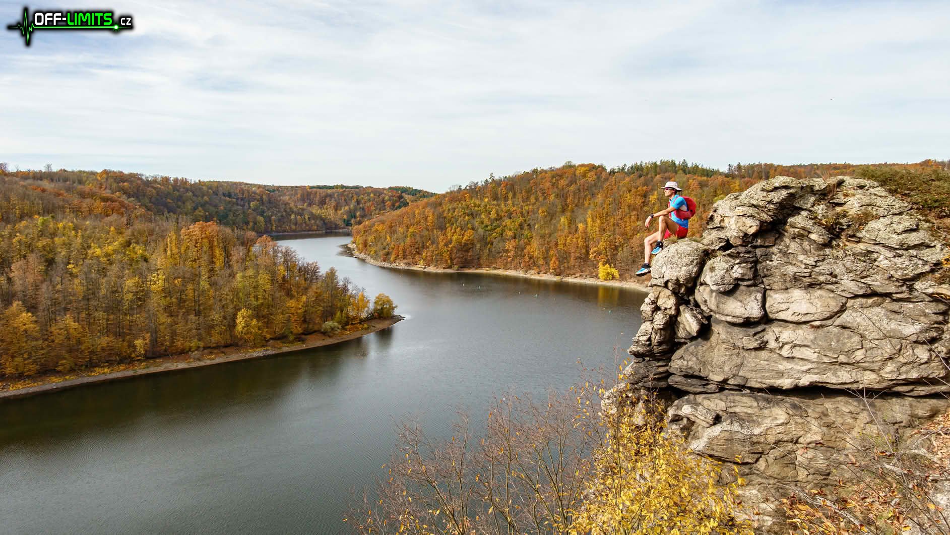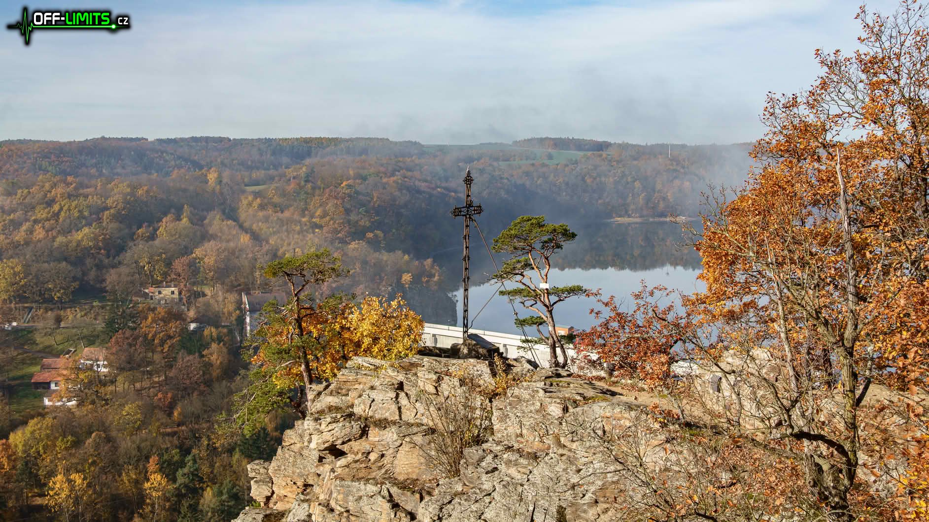 Nejprve jsem zamířil na skalní vyhlídku Claryho kříž, ze které jsem viděl ještě zbytky mlhy nad Vranovskou přehradou i dole v údolí ve Vranově nad Dyjí. Seběhl jsem dolů k hrázi a po visuté lávce nad Švýcarskou zátokou jsem se dostal na Vranovskou pláž. Bohužel tou dobou se od západu nasunula řídká oblačnost, která celou oblohu zahalila do bíla. Naprosto se tím zničila fotogeničnost jinak nádherné krajiny. Mezi rekreačními chatami jsem proběhl do přírodní památky Orlí hnízdo, odkud je z Eduardovy skály pěkný výhled na přehradu. Další úsek byl nejnáročnější, protože jsem napříč lesem mimo cesty přeběhl do přírodní památky Petrovy skály, kde jsem následující více než hodinu prolézal obří skály opět s krásnými výhledy na údolní nádrž.