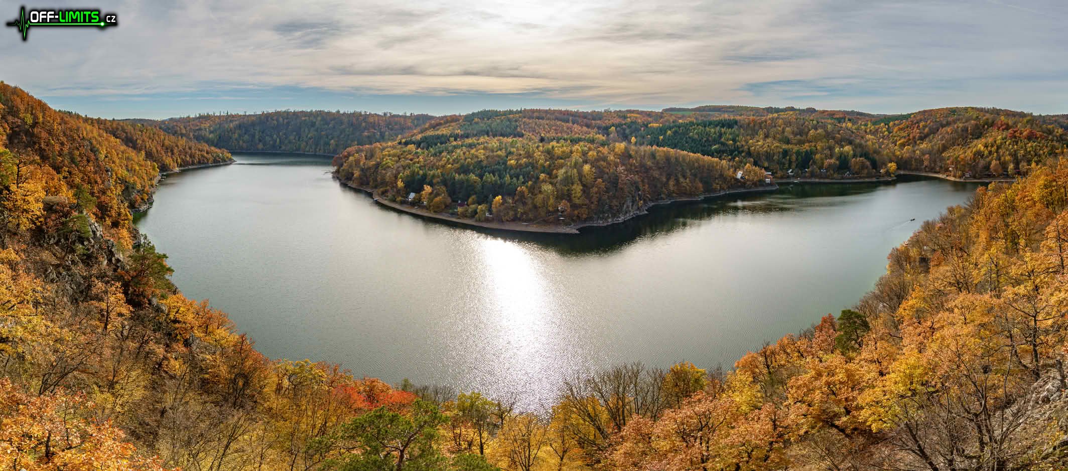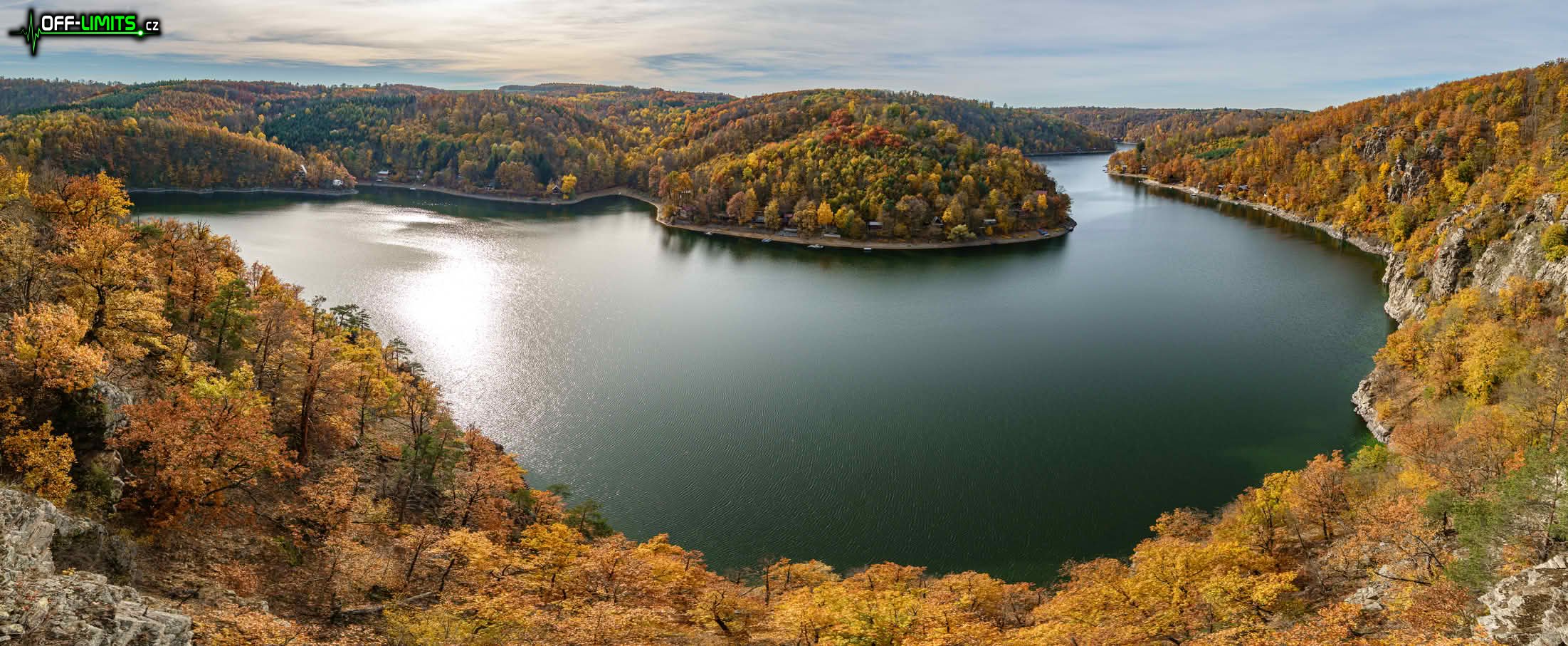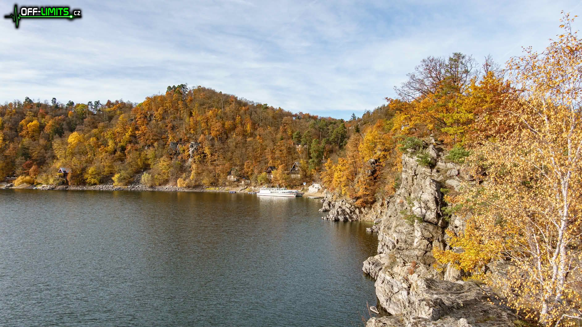 Nejprve jsem zamířil na skalní vyhlídku Claryho kříž, ze které jsem viděl ještě zbytky mlhy nad Vranovskou přehradou i dole v údolí ve Vranově nad Dyjí. Seběhl jsem dolů k hrázi a po visuté lávce nad Švýcarskou zátokou jsem se dostal na Vranovskou pláž. Bohužel tou dobou se od západu nasunula řídká oblačnost, která celou oblohu zahalila do bíla. Naprosto se tím zničila fotogeničnost jinak nádherné krajiny. Mezi rekreačními chatami jsem proběhl do přírodní památky Orlí hnízdo, odkud je z Eduardovy skály pěkný výhled na přehradu. Další úsek byl nejnáročnější, protože jsem napříč lesem mimo cesty přeběhl do přírodní památky Petrovy skály, kde jsem následující více než hodinu prolézal obří skály opět s krásnými výhledy na údolní nádrž.
