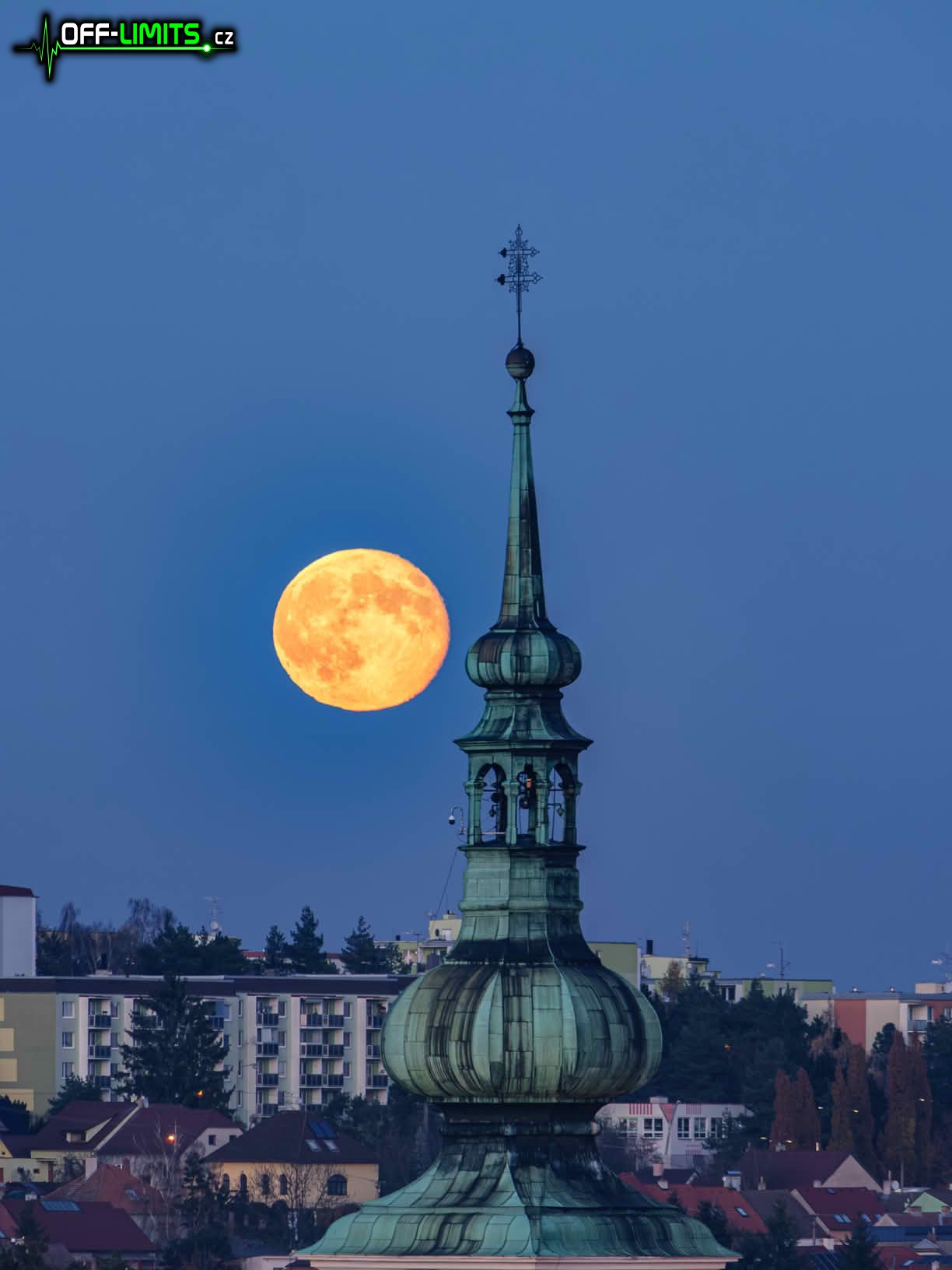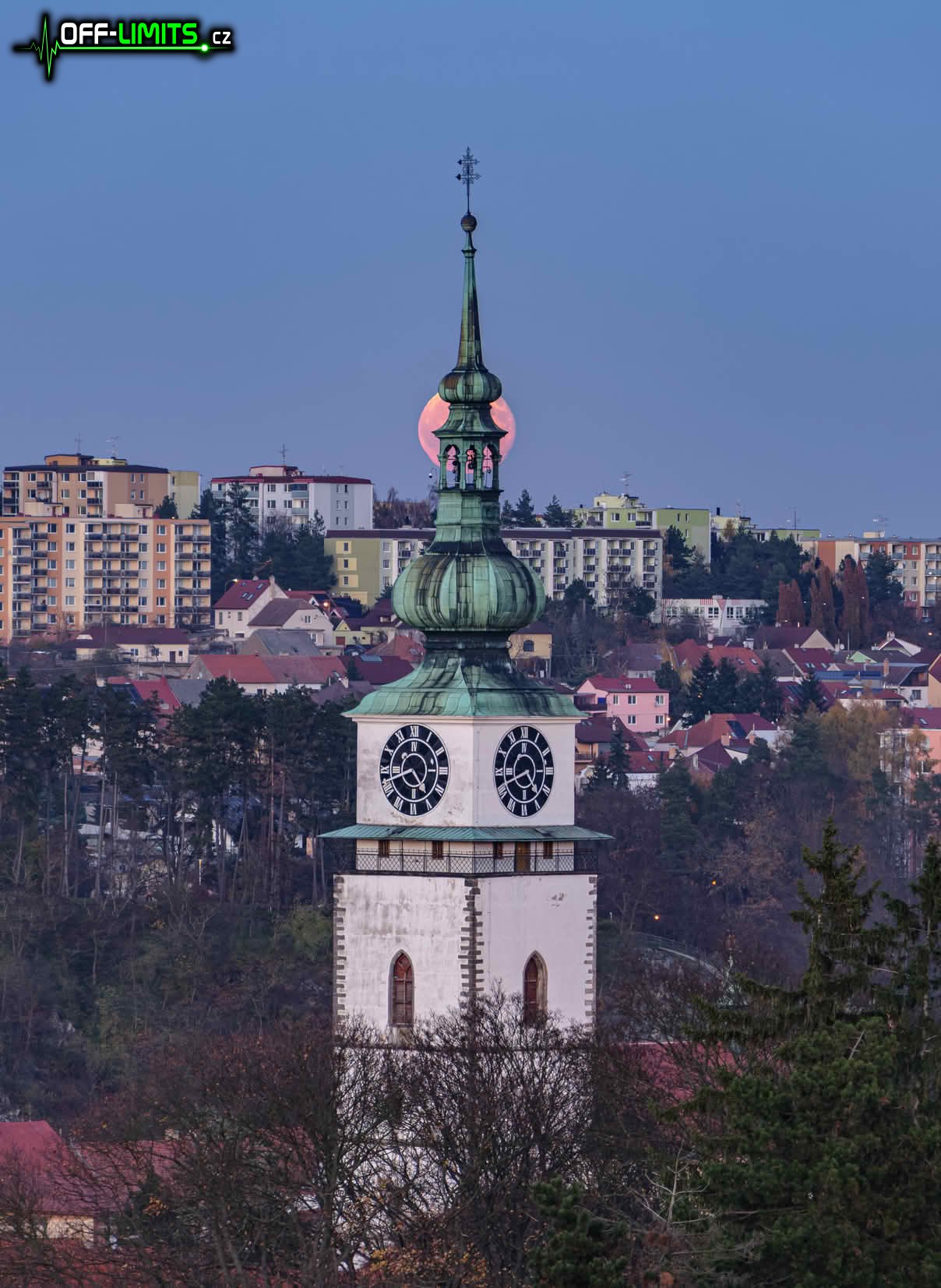 Ačkoli byl superúplněk už 5. listopadu, já jsem do terénu vyrazil o den později, kdy se východ úplňku přesně kryl se západem slunce. Díky tomu jsem měl lepší světelné podmínky na focení. Podle plánu jsem zamířil na severní úbočí kopce Strážná hora (481), odkud jsem měl výhled na Bobří úplněk, vycházející přímo za vyhlídkovou věží kostela sv. Martina. Když jsem měl splněno, proběhl jsem se ještě přes Masarykovy sady - Hrádek a po 16 km se vrátil domů.