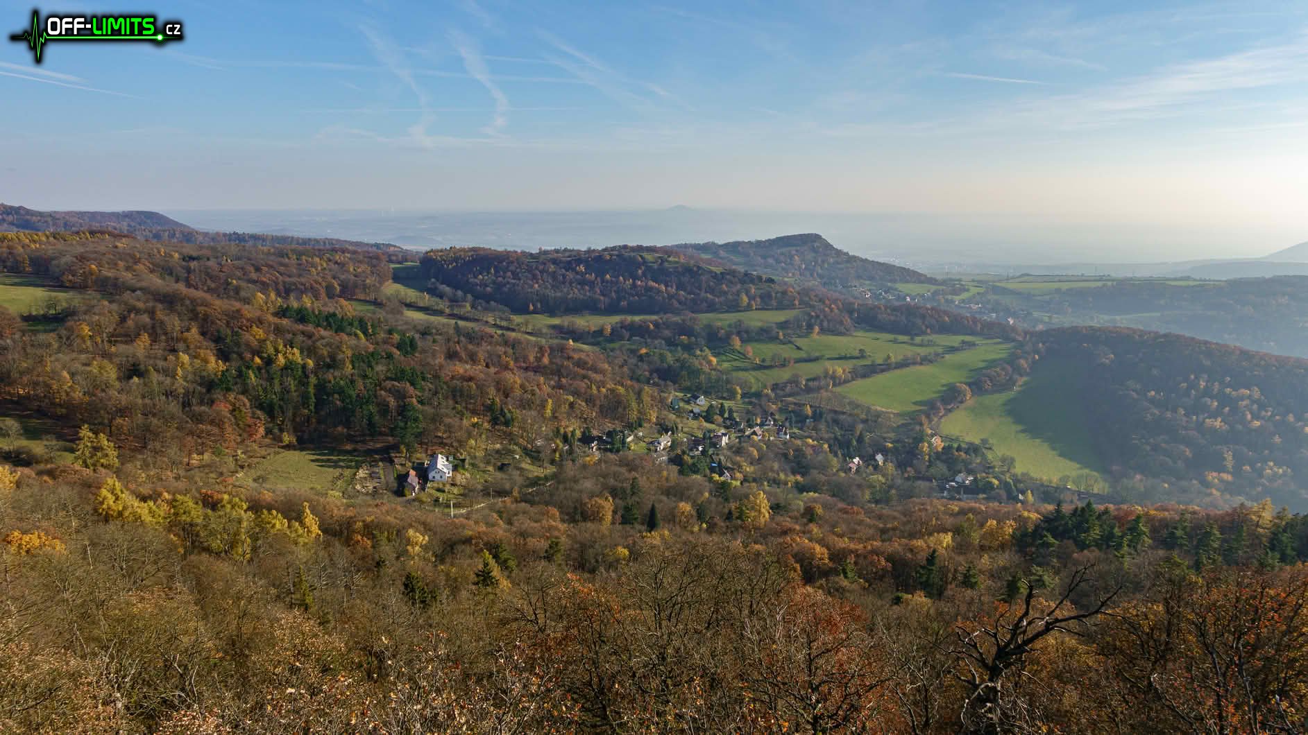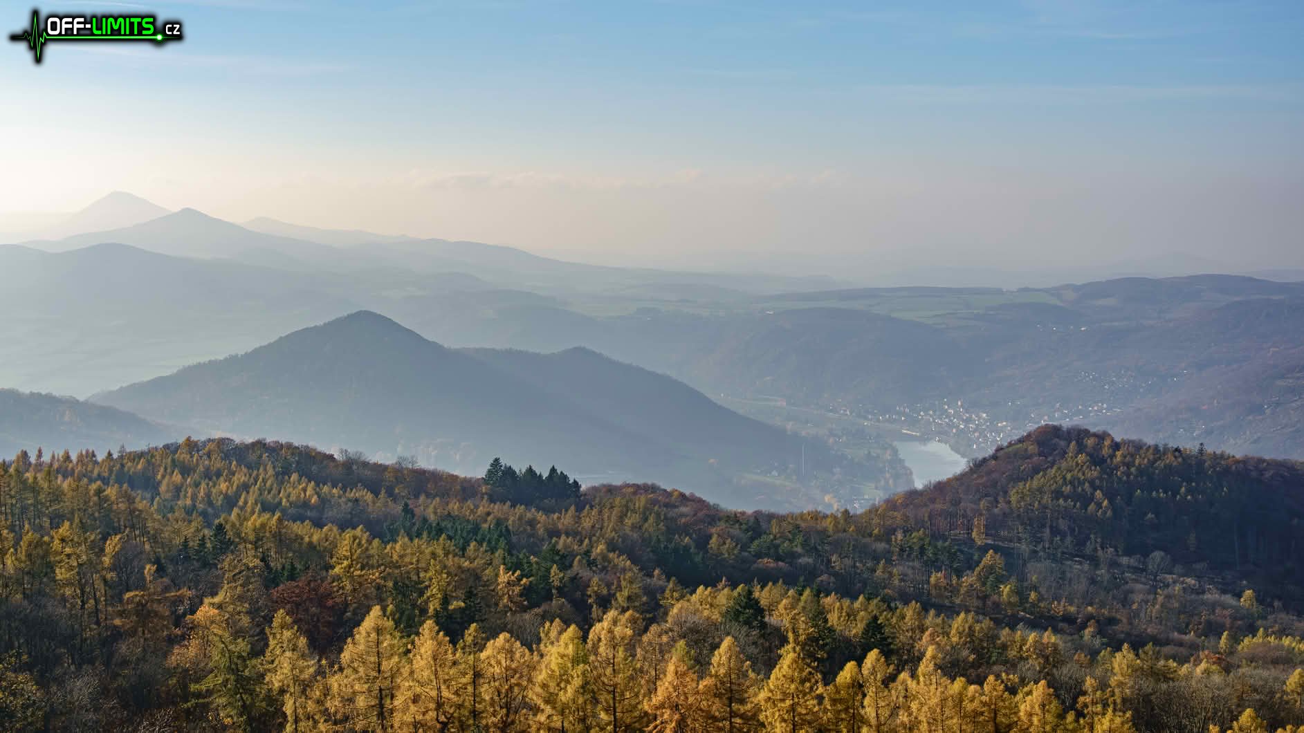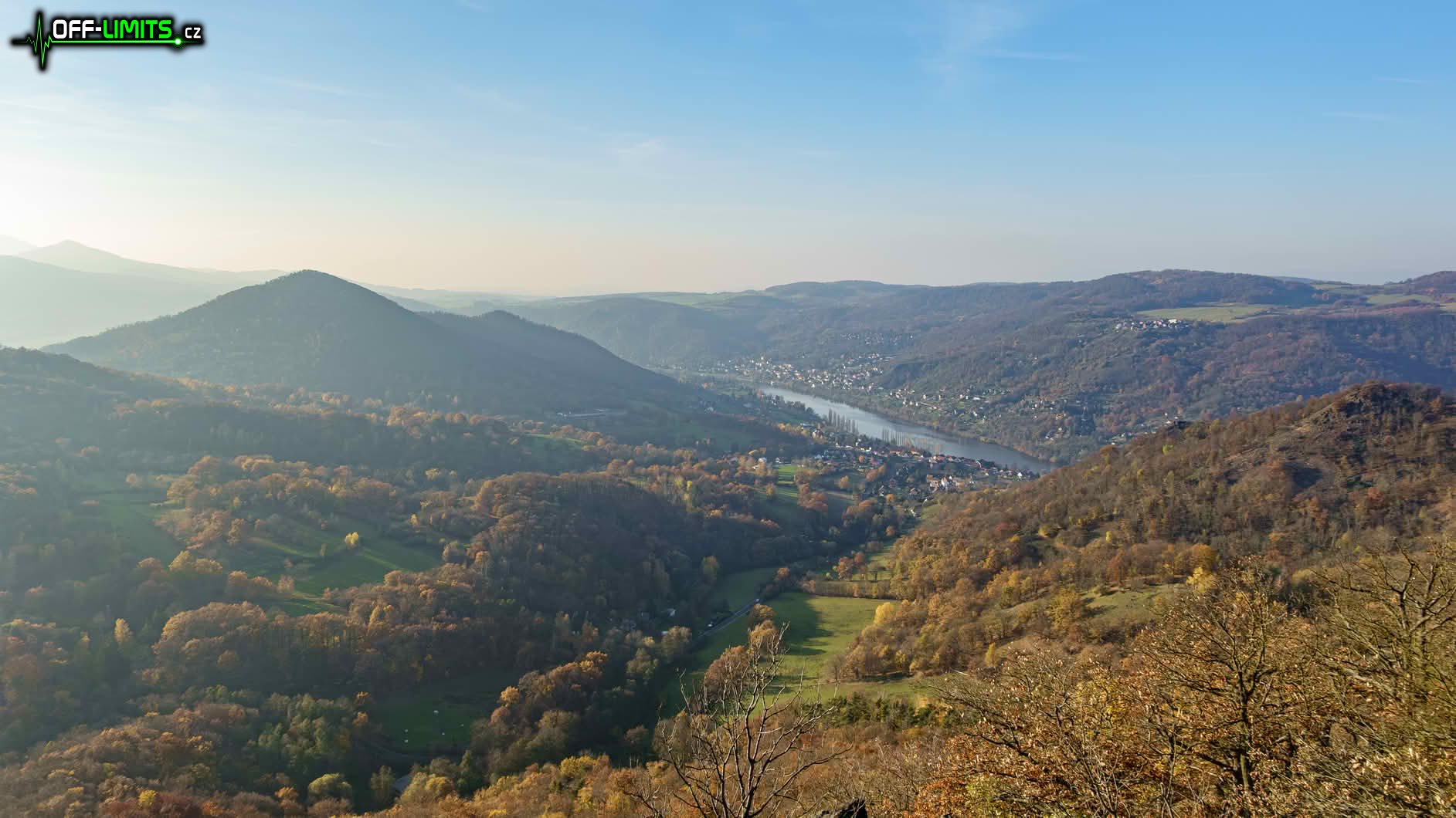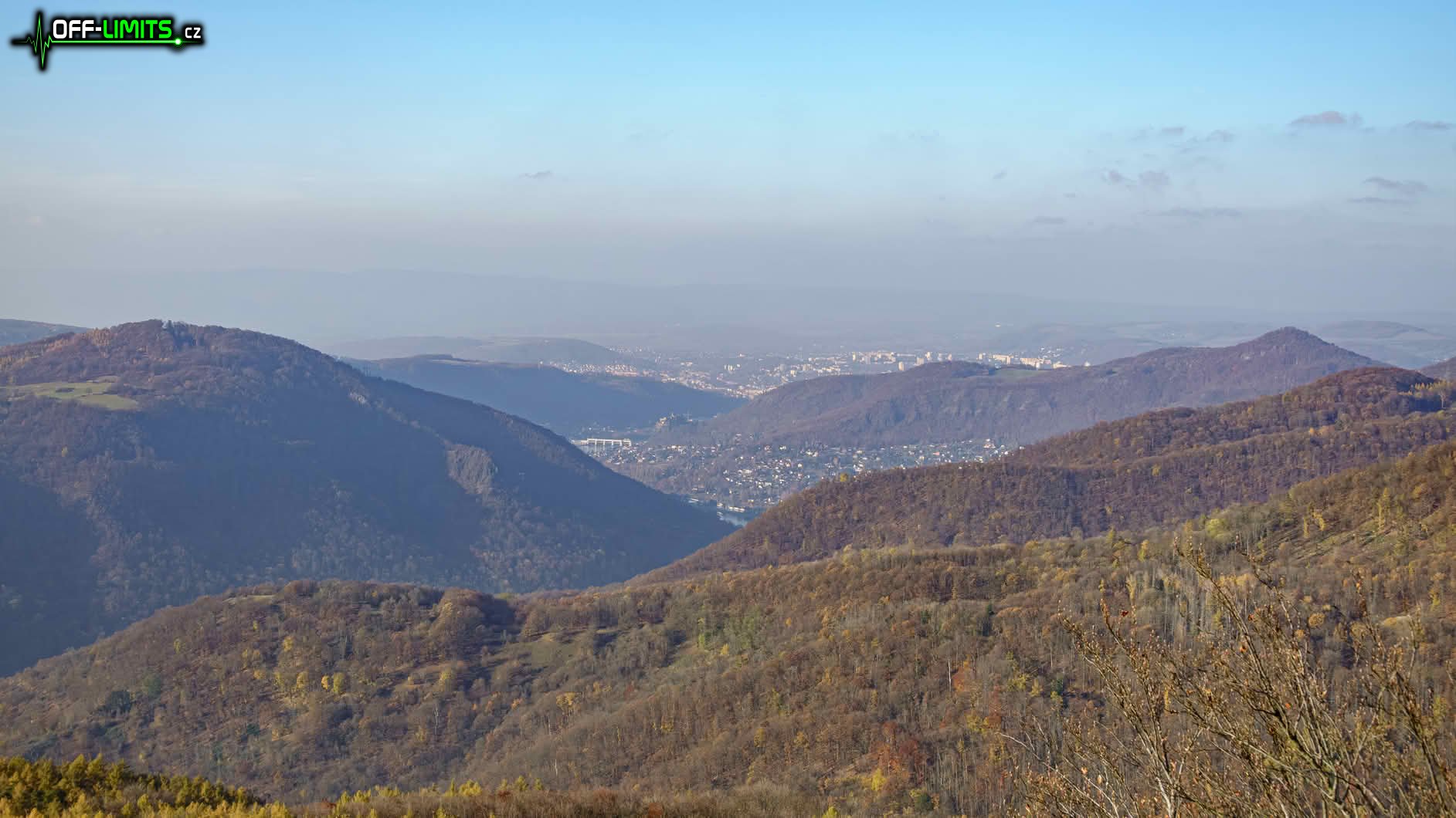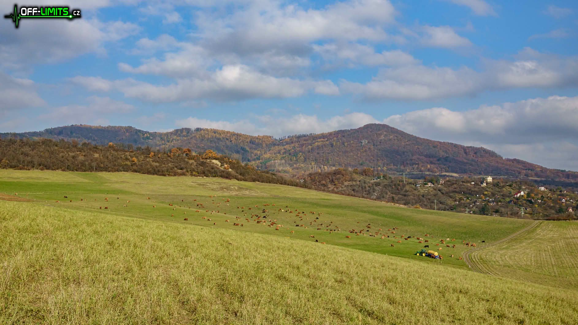 Po loukách jsem pokračoval na vrchol nedalekého kopce Lysá hora (577), odkud byly výhledy více severním směrem, kde bylo téměř jasno. Oběhl jsem kopec Kundratice a vystoupal na rozhlednu na vrcholu kopce Varhošť (639). Kromě výhledu po zamlženém středohoří, jsem konečně viděl i část města Ústí nad Labem. Po žluté turistické značce jsem seběhl o něco níže na vyhlídku na vrcholu kopce Krkavčí skála (445). To už se slunce blížilo k horizontu, takže mi zbývala asi poslední hodina denního světla. Následovaly vyhlídky Poradní skála i Macha a pak už jsem po zelené značce seběhl dolů do městské části Ústí nad Labem - Sebuzín. Pár kilometrů jsem pokračoval po cyklostezce do městské části Církvice. Pak jsem kvůli rychle zapadajícímu slunci odbočil zpátky do terénu a vystoupal nejkratší cestou na vrcholy kopců Malý Deblík (374) a Deblík (459). Po cestě vzhůru mě překvapilo stádo laní i jelenů a volně pobíhající kozy. Když jsem přímo nad velkým kamenolomem vystoupal na poslední vrchol, akorát jsem zastihl slunce zapadající za kopcem Milešovka.