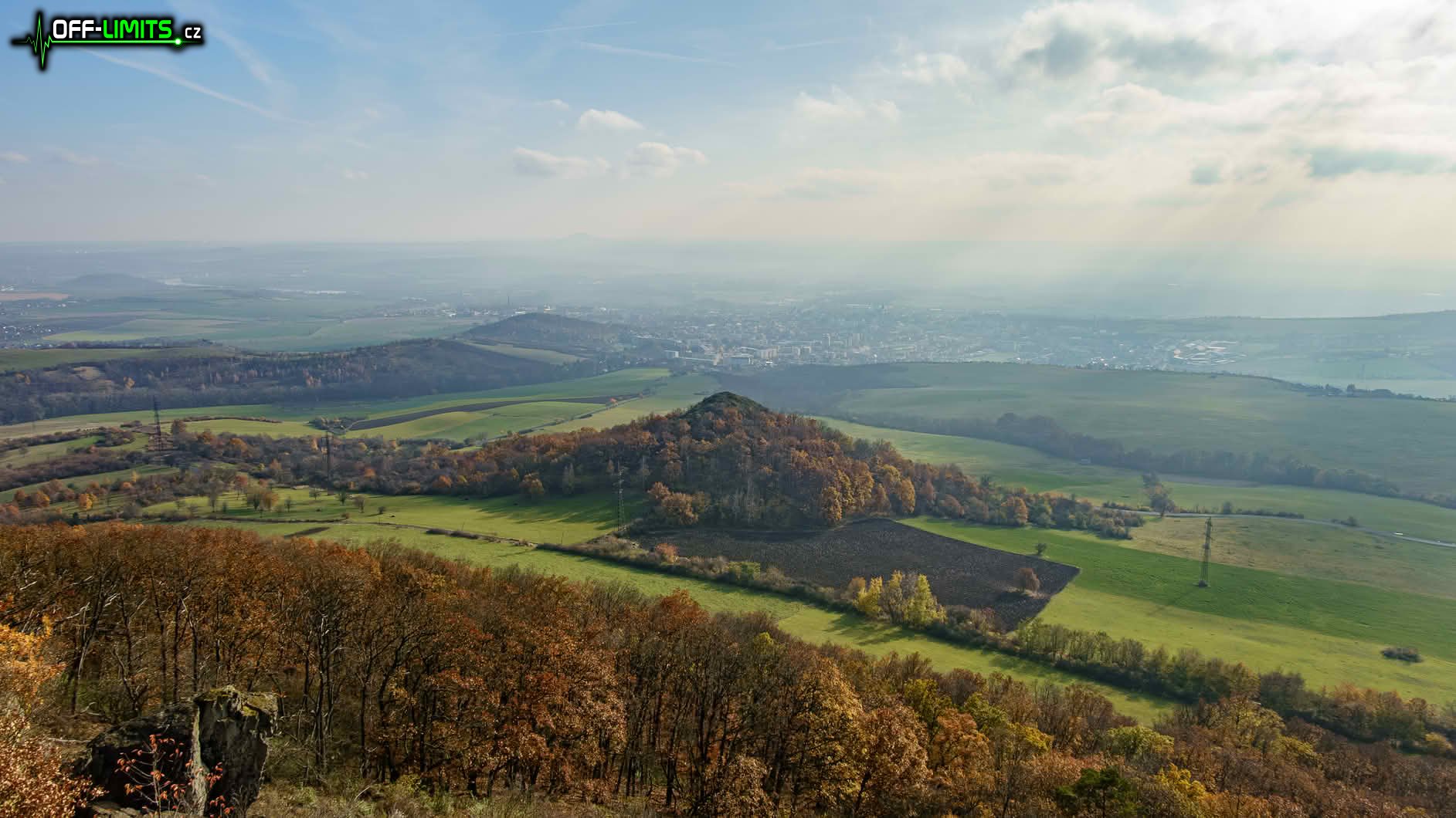 Když jsem dopoledne dojel do města Litoměřice, byla ještě mlha a zataženo. Ovšem po jedenácté hodině po práci už se mlha začínala rozpouštět a na obloze vykouklo slunce. Převlékl jsem se do běžeckého oblečení a před polednem vyrazil. Kolem rozhledny na malém kopci Mostka (279) jsem vystoupal do národní přírodní památky Bílé stráně. Při pohledu zpátky jižním směrem na Litoměřice jsem skoro nic neviděl, protože bylo zakryté slabým mlžným oparem. Byla to vlastně dokonalá definice meteorologického jevu kouřmo, kdy přes opar není vidět víc než pár kilometrů. I tak jsem ale pokračoval dál a přes louky vystoupal na vrchol kopce Kamýk (Malé Hradiště) (455). Viditelnost byla stále špatná, a tak jsem téměř bez zastavování vystoupal ještě výše na vrchol kopce Hradiště (545). Tam už bylo znát, že se kouřmo mírně rozpadá nebo že se aspoň dostávám nad něj.