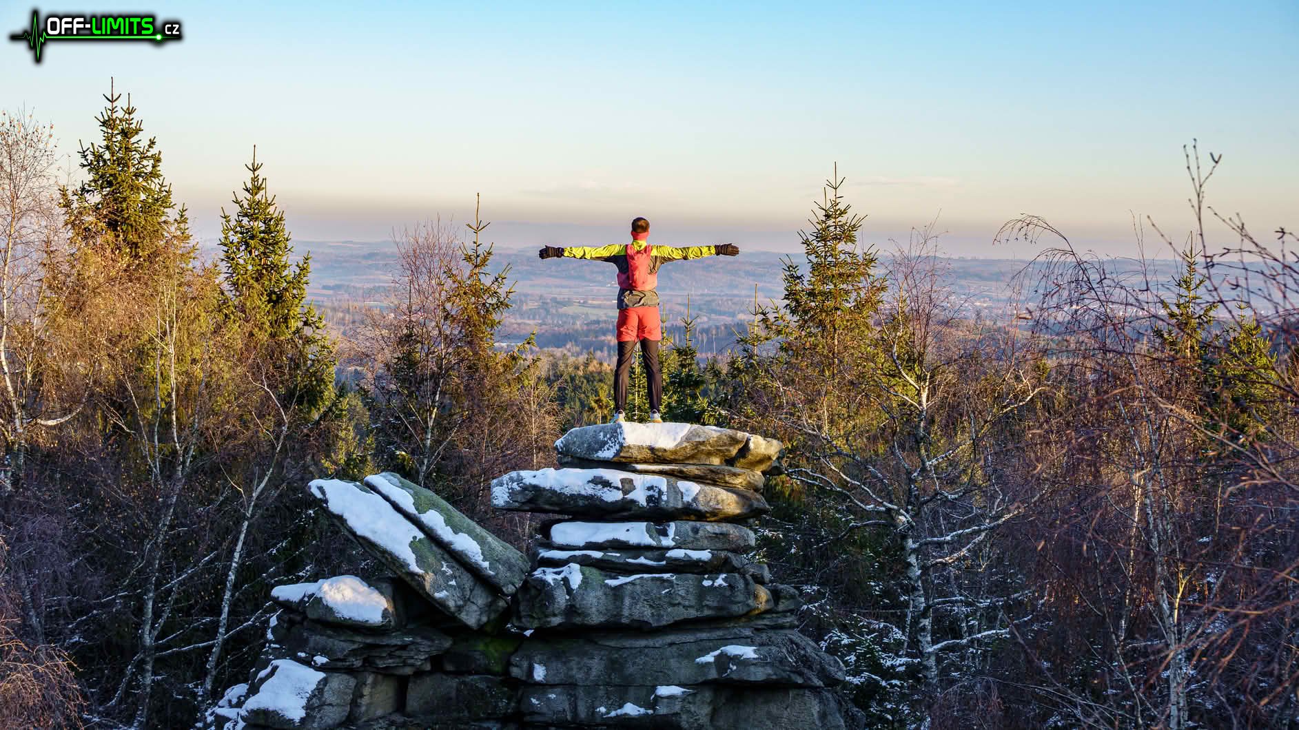 Ve stmívající krajině jsem přes obec Lhotka seběhl po zelené značce do obce Horní Bolíkov. Bez slunečních paprsků teplota rychle začala padat pod bod mrazu. Trochu jsem se přioblékl, nasadil čelovku a dál pokračoval až na vrchol kopce Hradisko (760), který byl také pod slabou vrstvou sněhu. Raději jsem si ještě nastavil v hodinkách opakovaný odpočet, abych nezapomněl pravidelně pít a nezamrzlo mi tak pití ve vaku. Proběhl jsem obcí Poldovka a po modré značce vystoupal na nedaleký kopec Bradlo (672), kde stojí dřevěná socha čerta. Následovalo klesání do obce Olší, za kterou mě čekal poslední kopec Zdeňkov (671). Když jsem na druhé straně sbíhal do obce Dobrá voda, teploměr mi ukazoval dokonce rovných -10 stupňů. Jako poslední jsem ještě navštívil malý zatopený lom V Hoře a po osmé hodině večerní se vrátil k autu.
