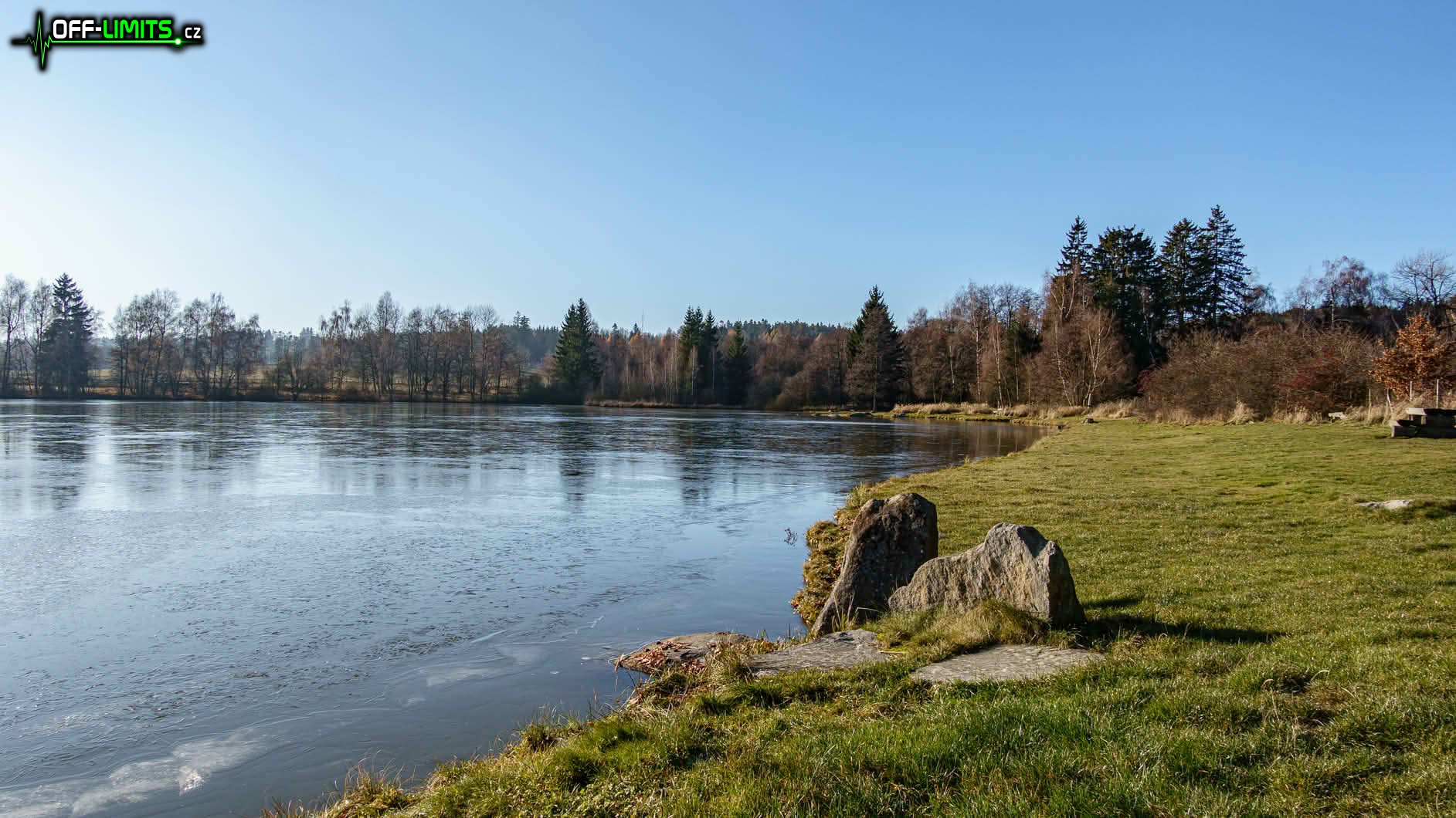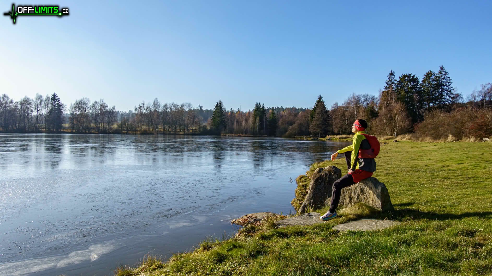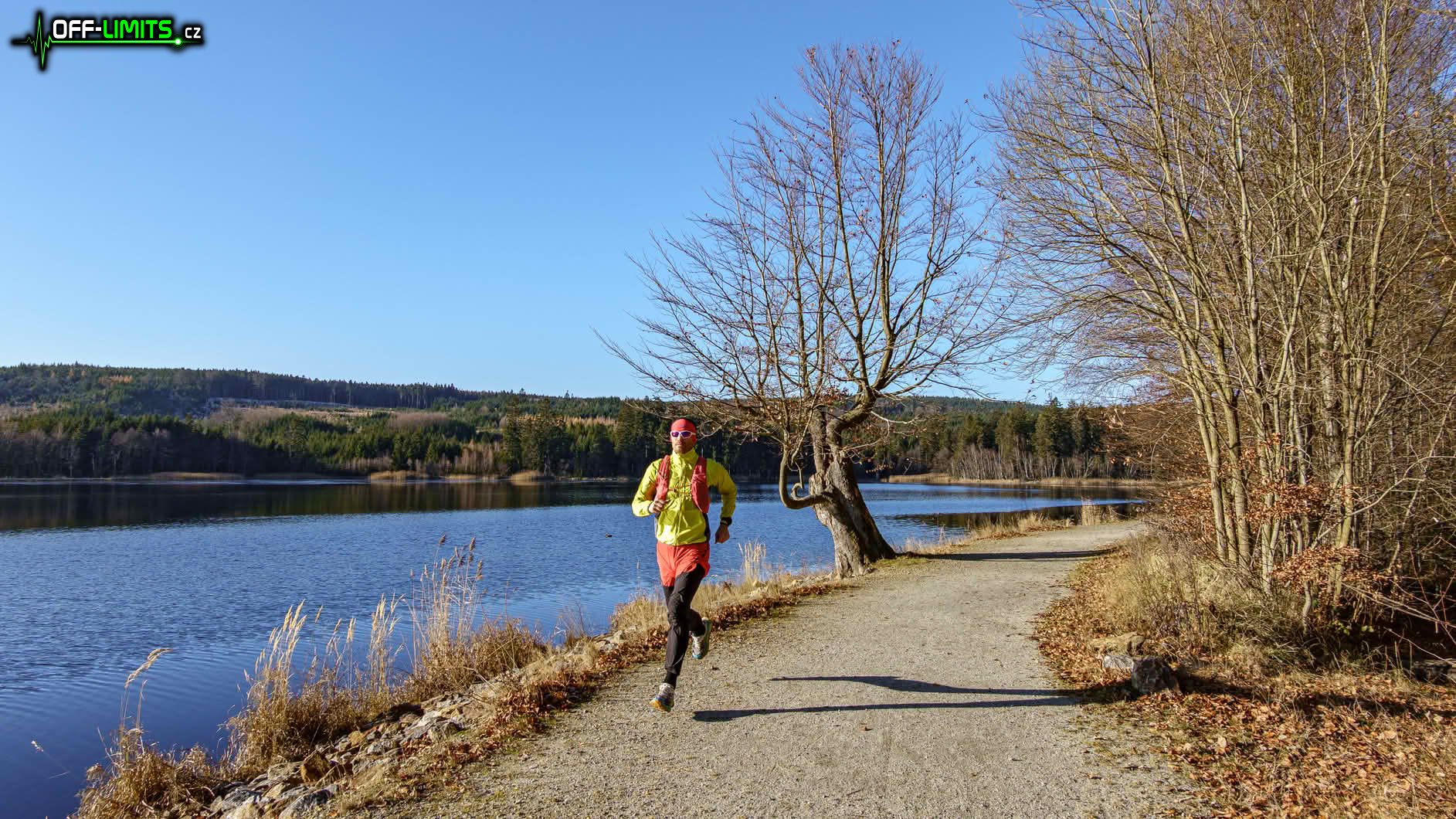 V neděli ráno jsem vyrazil autem na západ, kde mělo být podle předpovědi nejslunečnější počasí. Protože už za městem Telč bylo téměř jasno, rozhodl jsem se, že se proběhnu kolem kopce Javořice (837). Zaparkoval jsem v obci Mrákotín a před jedenáctou hodinou vyrazil. Když jsem doběhl k rybníkům Dolní a Horní Mrzatec, překvapilo mě, že už jsou úplně zamrzlé, přestože u nás na Třebíčsku zatím po ledu nebylo ani památky. Ze zvědavosti jsem zkusil tloušťku, která byla místy až 5 cm. To je na konec listopadu zajímavá hodnota.