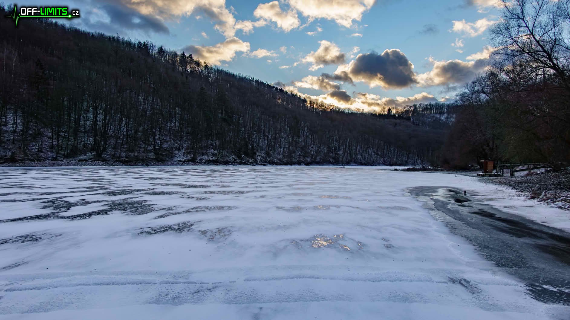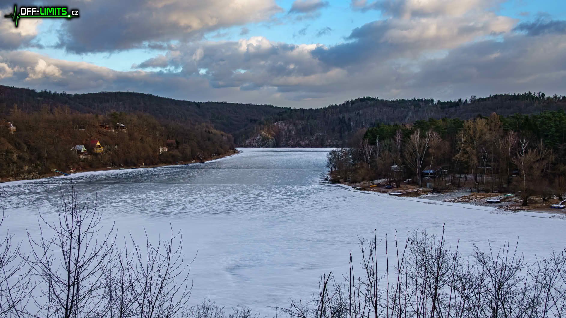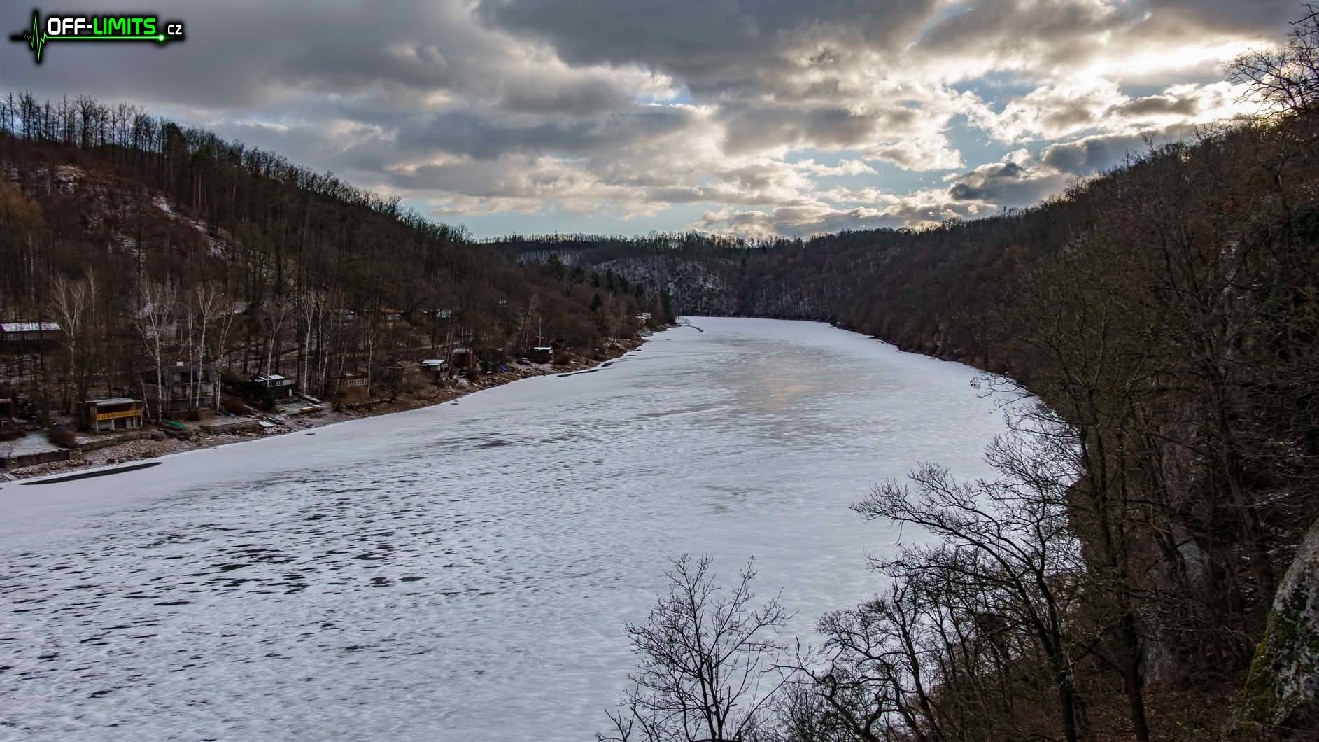 Nejkratší cestou jsem seběhl do údolí řeky Želetavka, která už byla pokrytá souvislou vrstvou ledu. To mi dalo naději. Když jsem ovšem vystoupal k hradu Bítov, viděl jsem že soutok, kde Želetavka vtéká do Vranovské přehrady je nezamrzlý. Přes skalní vyhlídky Hvězdička a Čertice s výhledem na zamrzlou Bítovskou zátoku jsem seběhl k Bítovskému mostu. Na obě strany bylo ovšem, kam oko dohlédlo, pouze voda. A protože silný vítr měl foukat ještě několik dní, bylo jasné, že do té doby se led ani vytvořit nemůže.