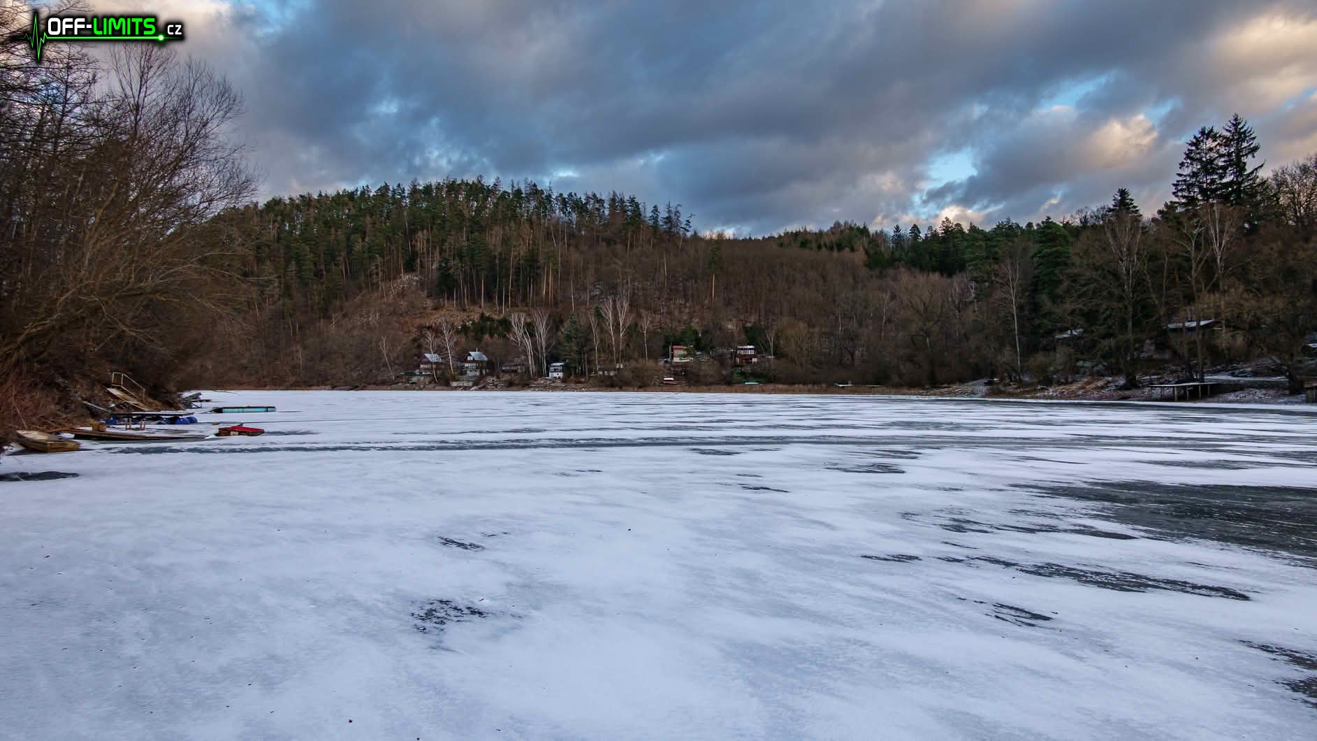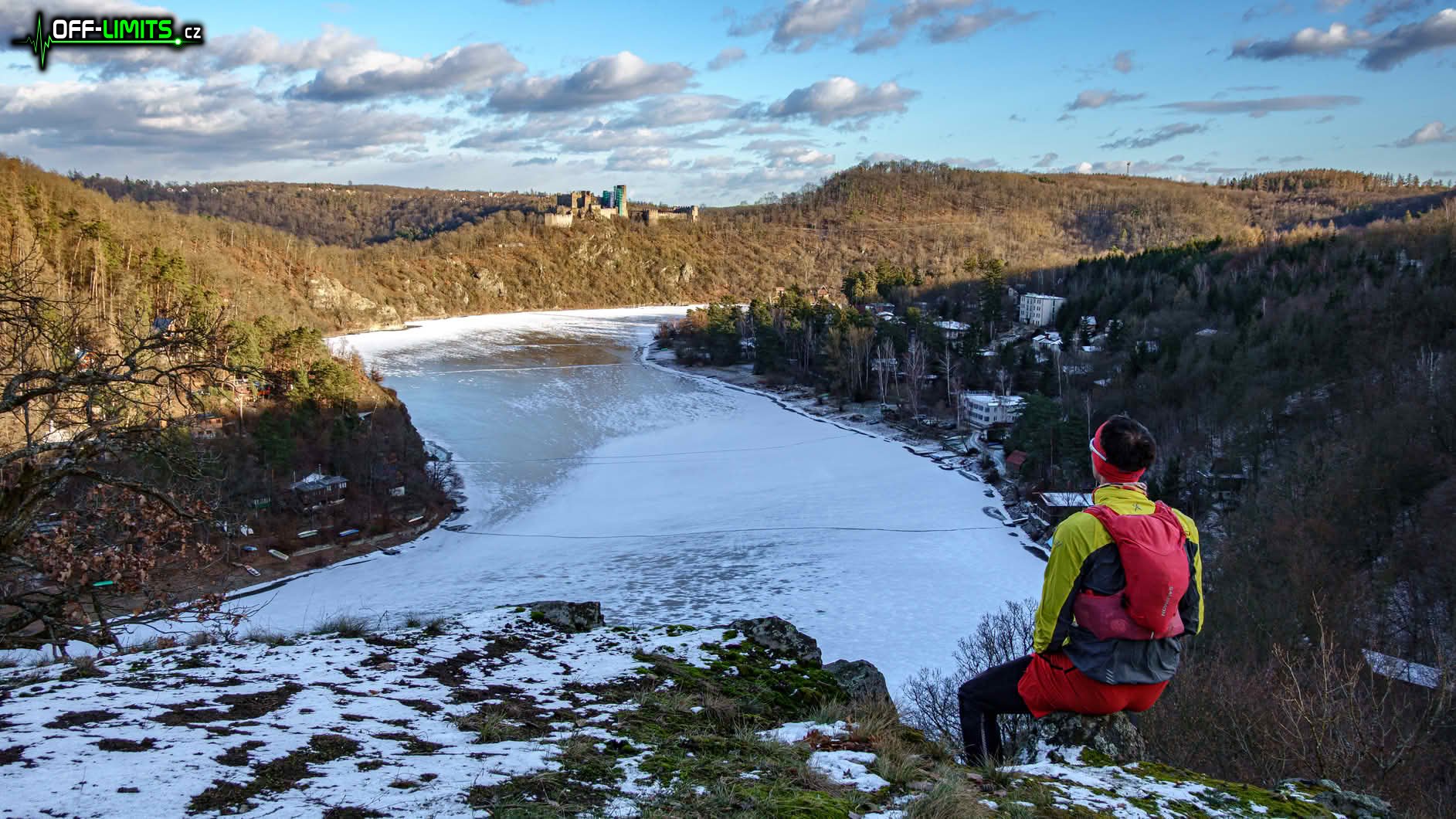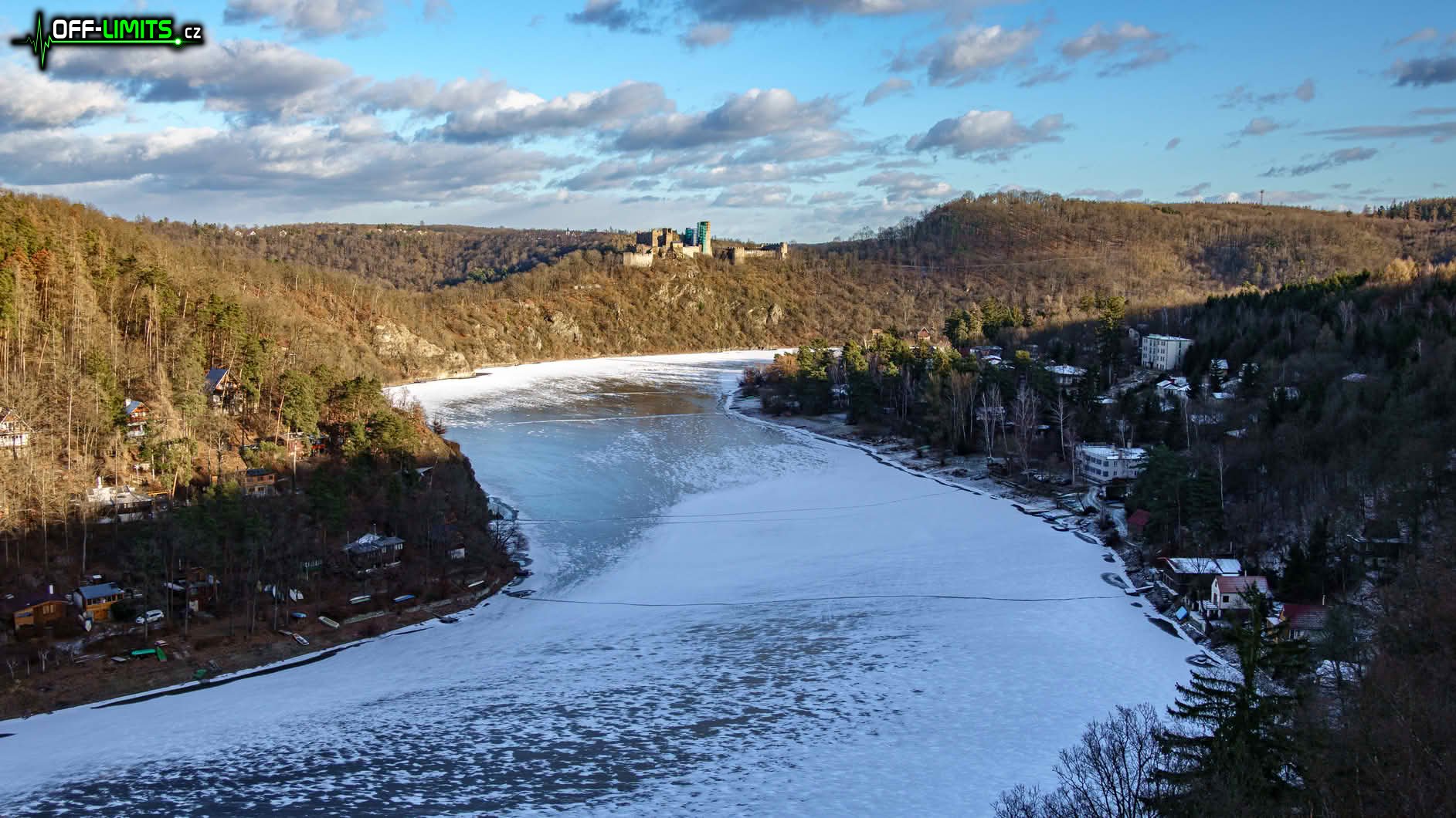 Nejkratší cestou jsem seběhl do údolí řeky Želetavka, která už byla pokrytá souvislou vrstvou ledu. To mi dalo naději. Když jsem ovšem vystoupal k hradu Bítov, viděl jsem že soutok, kde Želetavka vtéká do Vranovské přehrady je nezamrzlý. Přes skalní vyhlídky Hvězdička a Čertice s výhledem na zamrzlou Bítovskou zátoku jsem seběhl k Bítovskému mostu. Na obě strany bylo ovšem, kam oko dohlédlo, pouze voda. A protože silný vítr měl foukat ještě několik dní, bylo jasné, že do té doby se led ani vytvořit nemůže.
