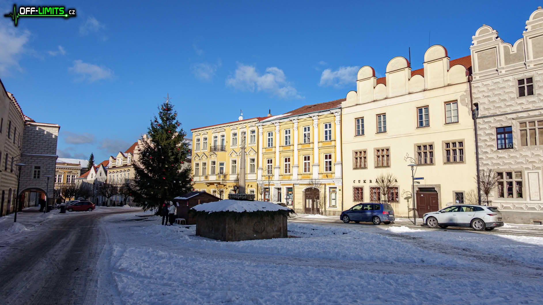 Na začátku roku jsem vyrazil do České Kanady, abych se při nádherném zimním počasí proběhl zasněženou krajinnou a spojil to s focením vycházejícího měsíce, který v zimním období vychází právě nad hradem Landštejn. Auto jsem nechal v centru města Slavonice, nazul nové boty do sněhu, a před polednem vyrazil. Nejprve jsem prokličkoval přes náměstí a pak zamířil po červené značce hlouběji do České Kanady.