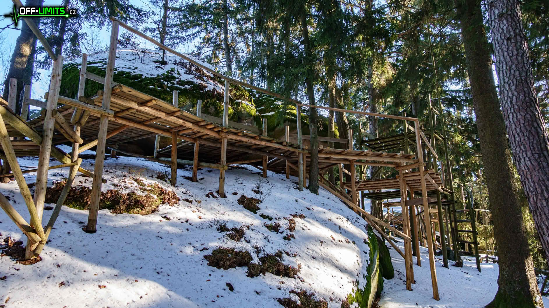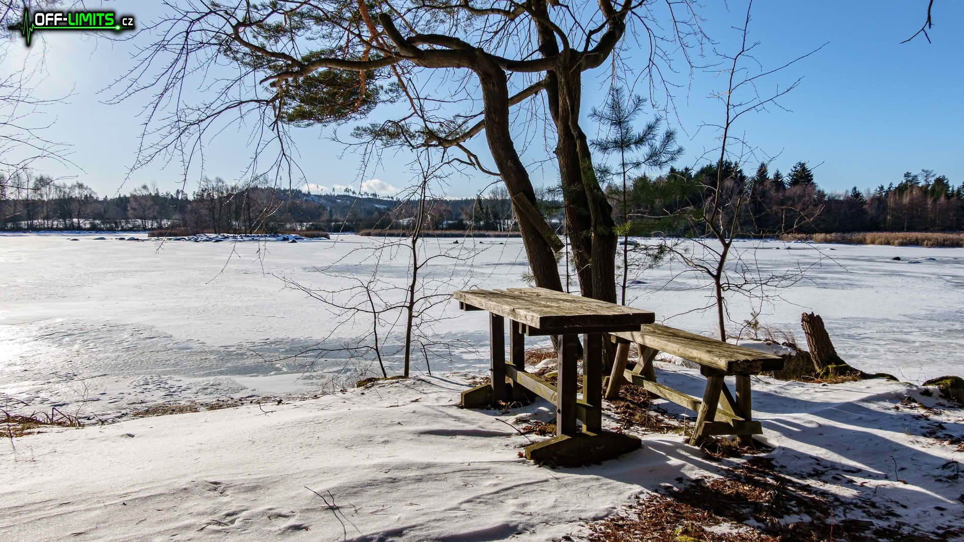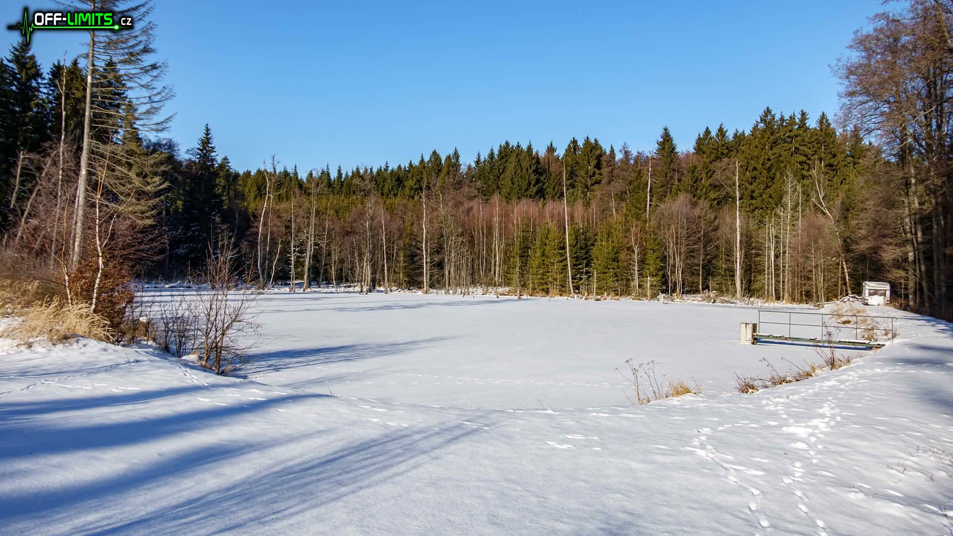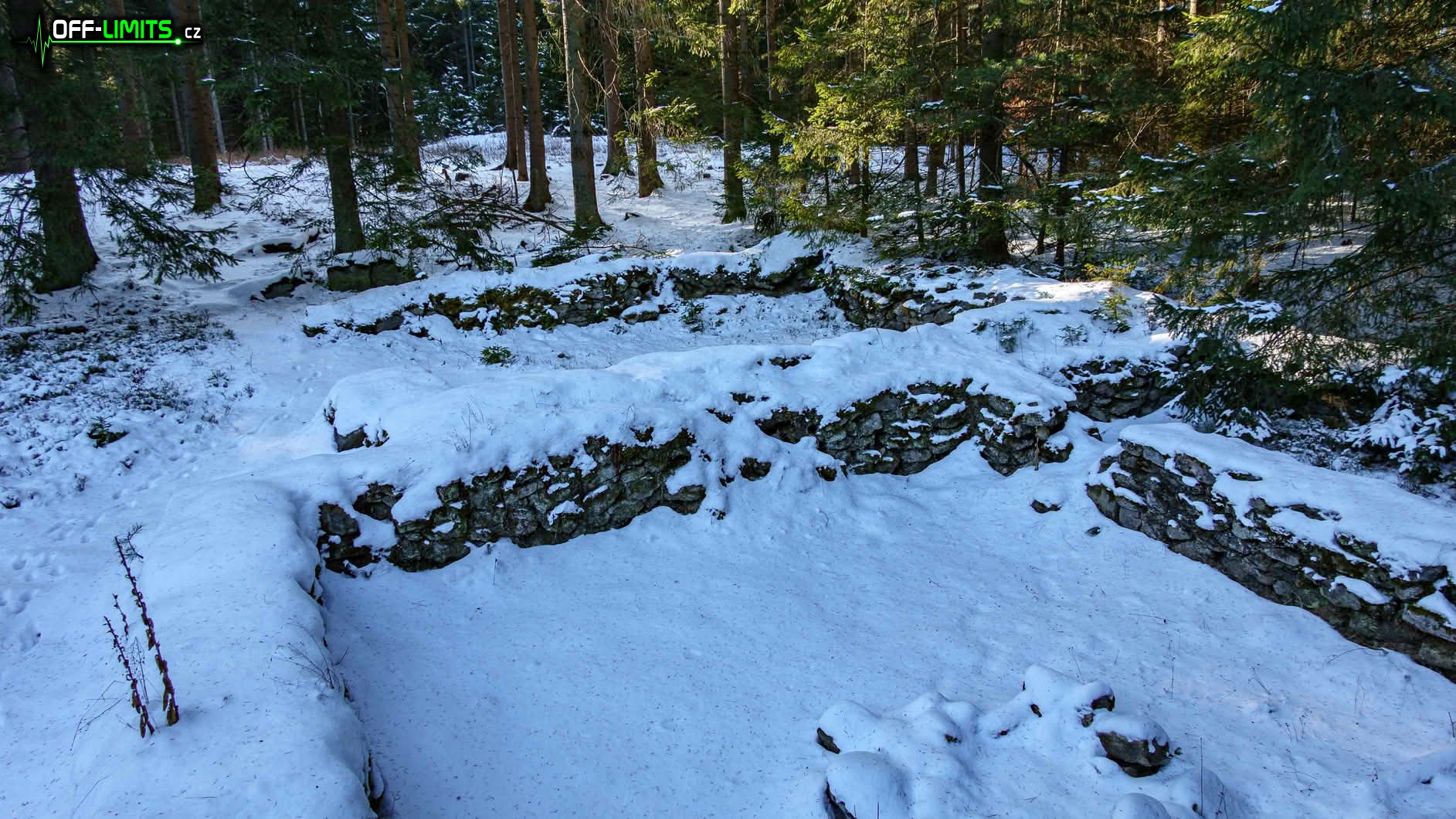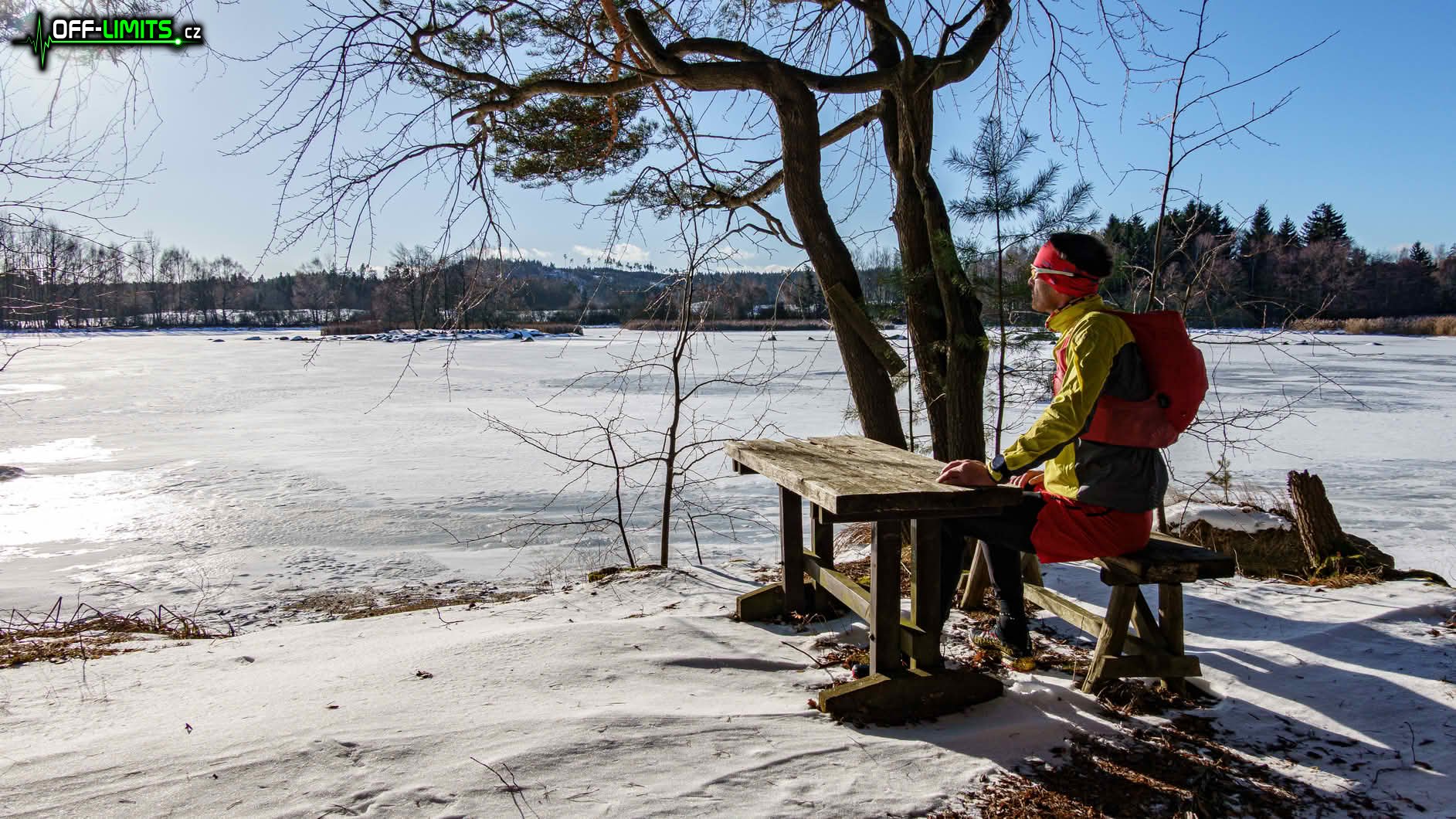 Proběhl jsem pevnostním areálem a pak pokračoval proti proudou Slavonického potoka, na kterém se nachází 13 rybníků, které byly komplet zamrzlé a pokryté sněhem. U posledního, Starého farského rybníka, jsem odbočil na sever a přeběhl kolem rekreační oblasti u rybníka Horní Šatlava ke skalnímu městu. Oběhl jsem Velký Troubný rybník a po silnici zamířil do obce Stálkov. Protože jsem se až moc rychle přibližoval k hradu, musel jsem si trasu ještě trochu natáhnout.
