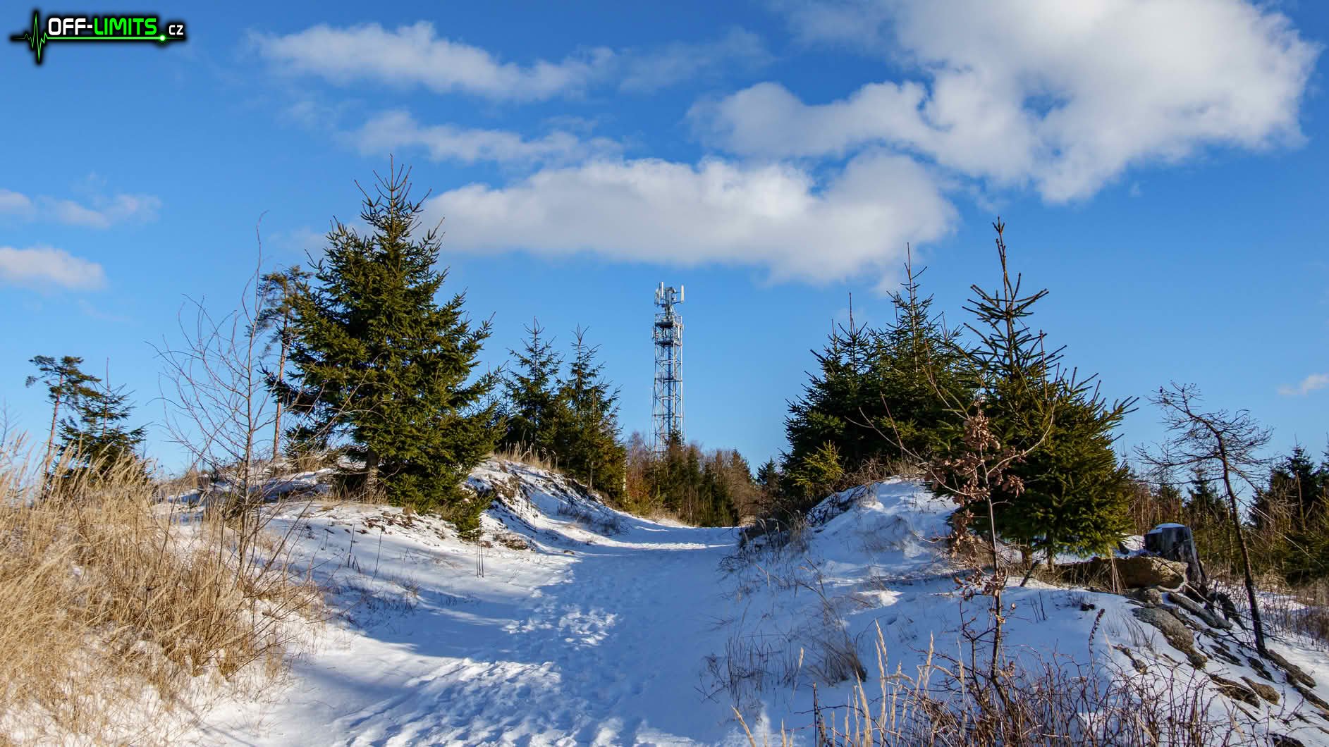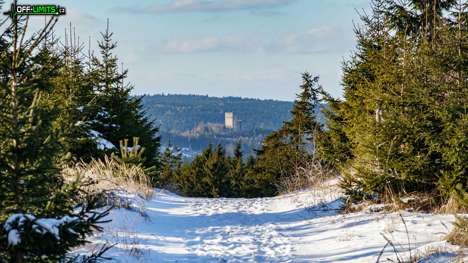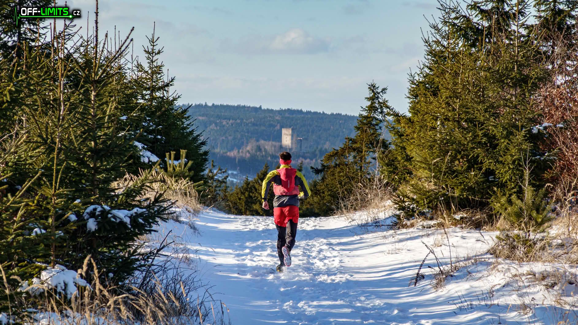 Vystoupal jsem na vrchol kopce Uhliště (702), ze kterého byly vidět i vrcholky vzdálených rakouských Alp. Kolem obce Kadolec a přilehlého památníku železné opony jsem přeběhl na vrchol kopce Čihadlo (700). Zbývala mi poslední hodina, a tak jsem kolem zámku Dobrohoř seběhl do Starého města pod Landštejnem. To už jsem naopak tušil, že nestíhám, proto jsem výrazně zrychlil. Po silnici jsem vyběhl k lesu, kde jsem se po mnoha zasněžených cestičkách blížil k vyhlídce.