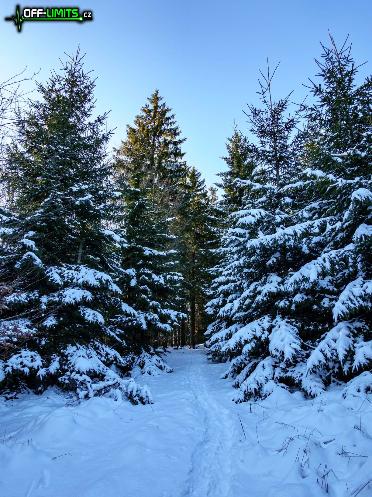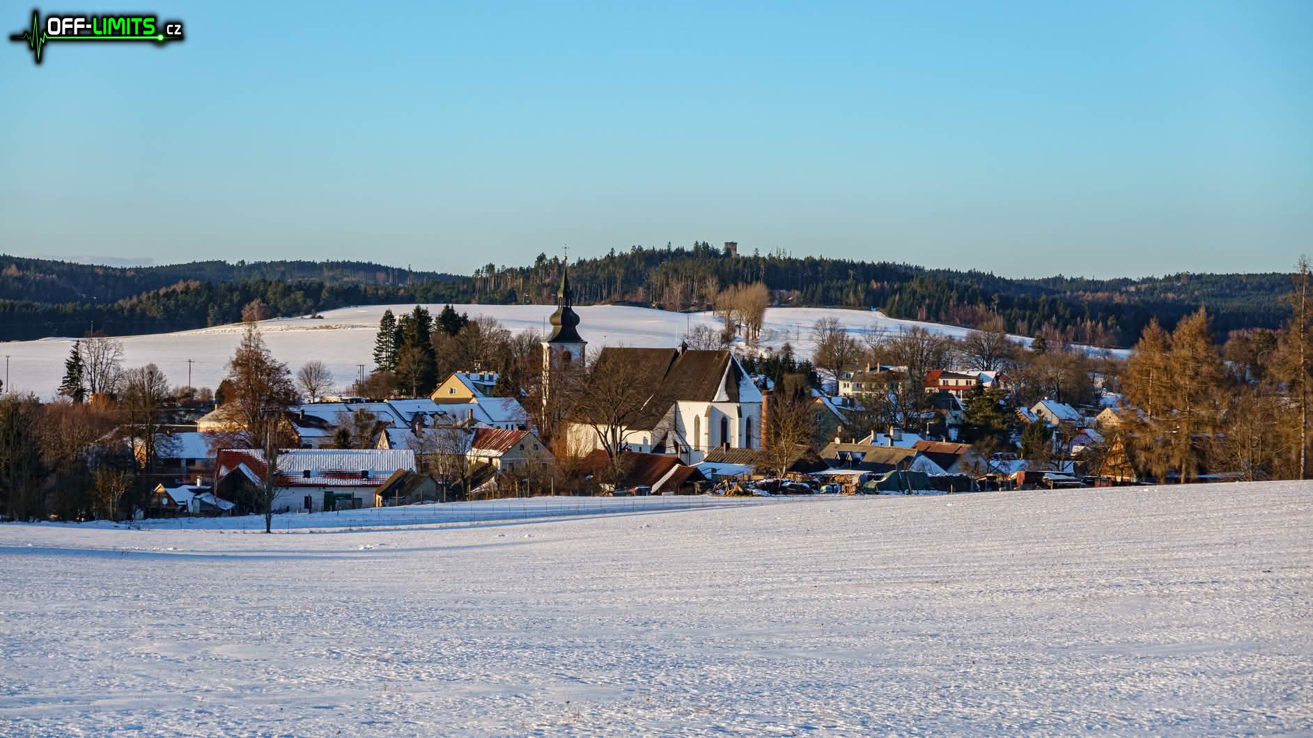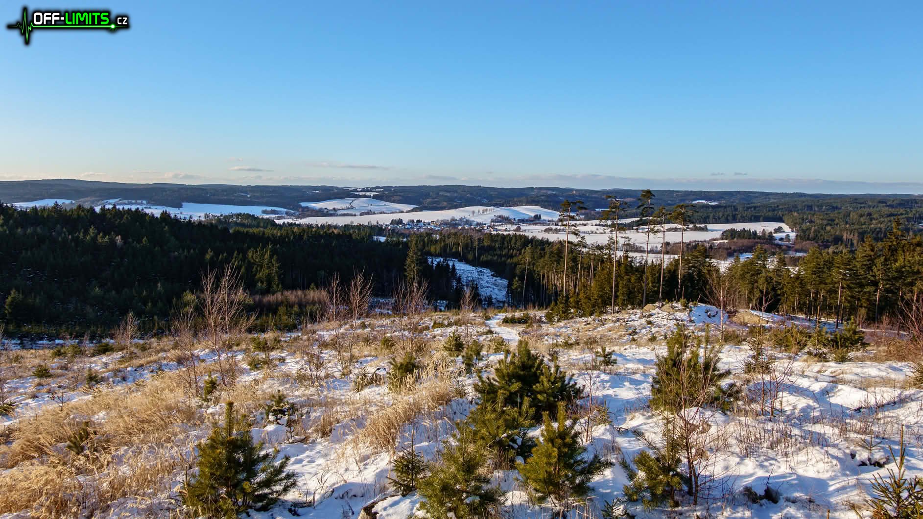 Vystoupal jsem na vrchol kopce Uhliště (702), ze kterého byly vidět i vrcholky vzdálených rakouských Alp. Kolem obce Kadolec a přilehlého památníku železné opony jsem přeběhl na vrchol kopce Čihadlo (700). Zbývala mi poslední hodina, a tak jsem kolem zámku Dobrohoř seběhl do Starého města pod Landštejnem. To už jsem naopak tušil, že nestíhám, proto jsem výrazně zrychlil. Po silnici jsem vyběhl k lesu, kde jsem se po mnoha zasněžených cestičkách blížil k vyhlídce.