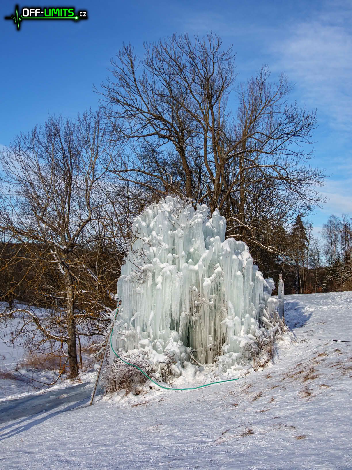 Po modré značce jsem se kolem rybníků Mrzatců dostal k tábořišti Lhotka, kde už několikátý den rostl v mrazech umělý ledopád. Protože byla prosluněná neděle, byl tam docela zástup turistů. Když jsem začal stoupat nahoru ke zřícenině hradu Štamberk, dostal jsem se do nadmořské výšky, kde už se na stromech držela slabá námraza. A protože celá tato část byla na závětrné části Javořice, byla zde souvislá asi 20cm vrstva sněhu.