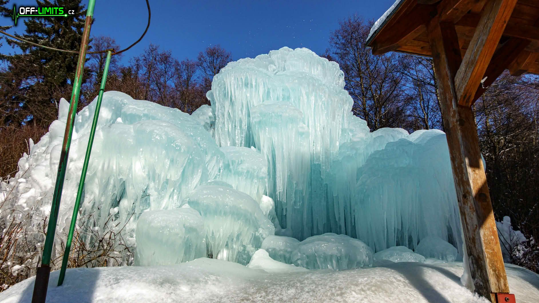 Po modré značce jsem se kolem rybníků Mrzatců dostal k tábořišti Lhotka, kde už několikátý den rostl v mrazech umělý ledopád. Protože byla prosluněná neděle, byl tam docela zástup turistů. Když jsem začal stoupat nahoru ke zřícenině hradu Štamberk, dostal jsem se do nadmořské výšky, kde už se na stromech držela slabá námraza. A protože celá tato část byla na závětrné části Javořice, byla zde souvislá asi 20cm vrstva sněhu.