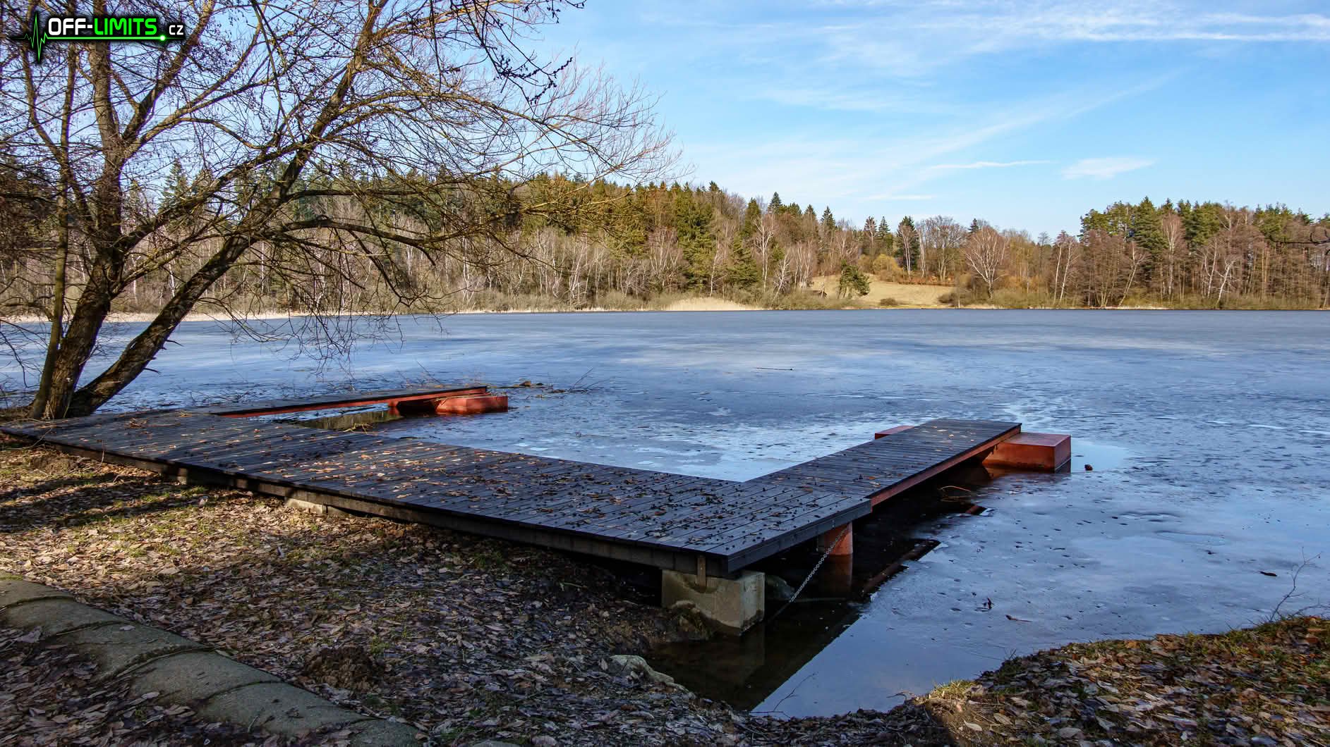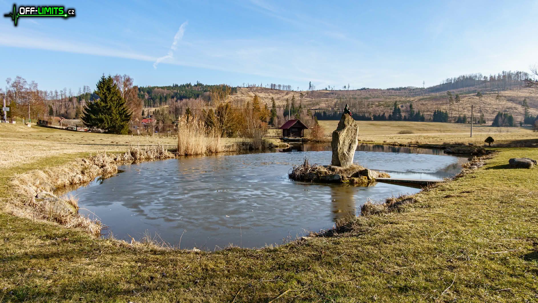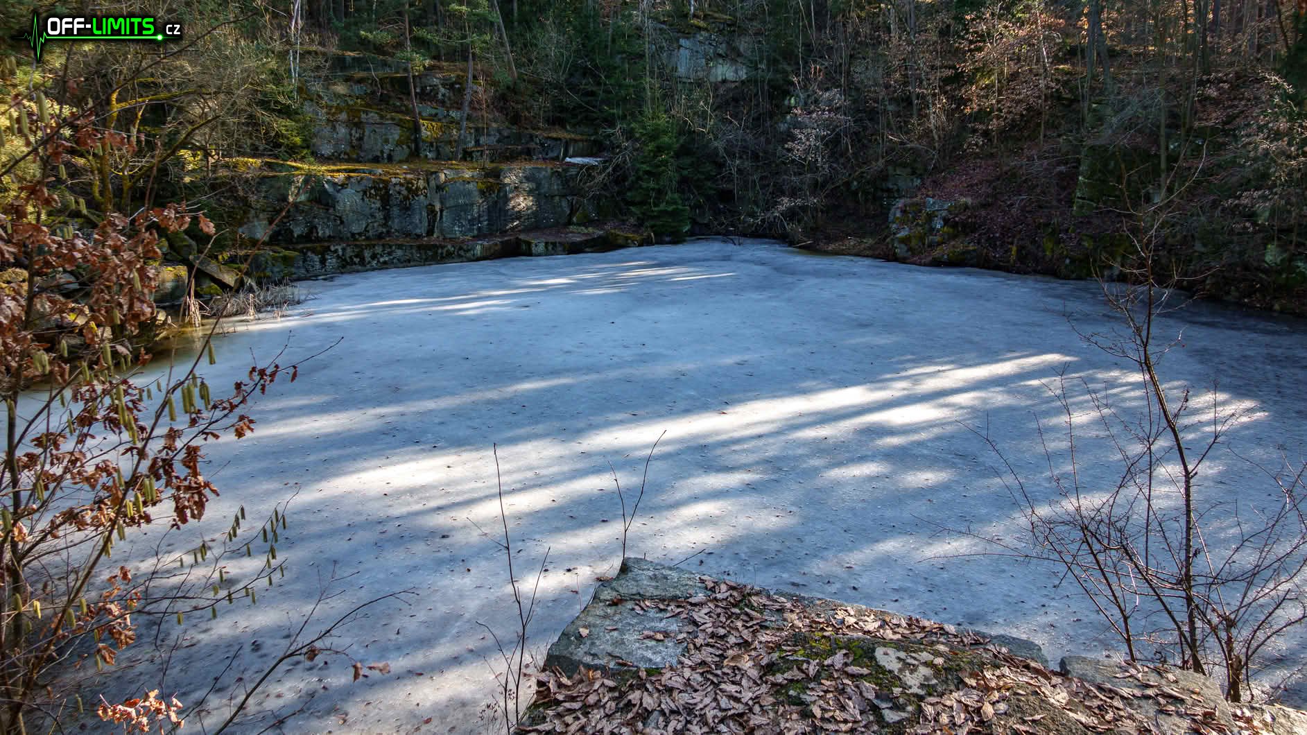 Zatopený lom V Hoře na konci naučné stezky Mrákotínská žula nad obcí Mrákotín