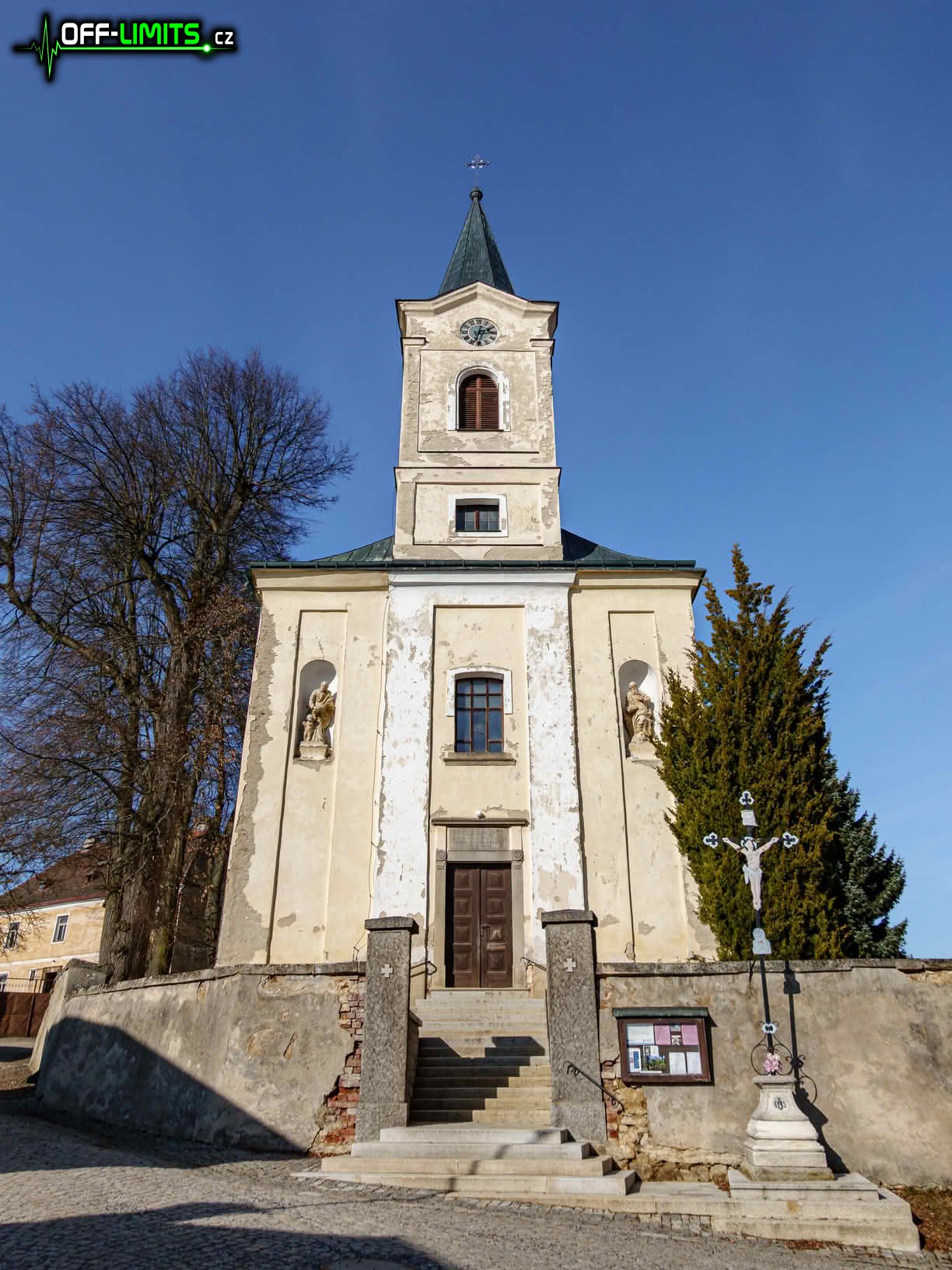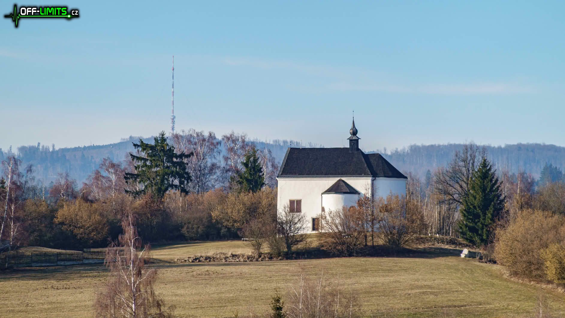 Kostel sv. Jáchyma nad obcí Dobrá Voda pod kopcem Javořice