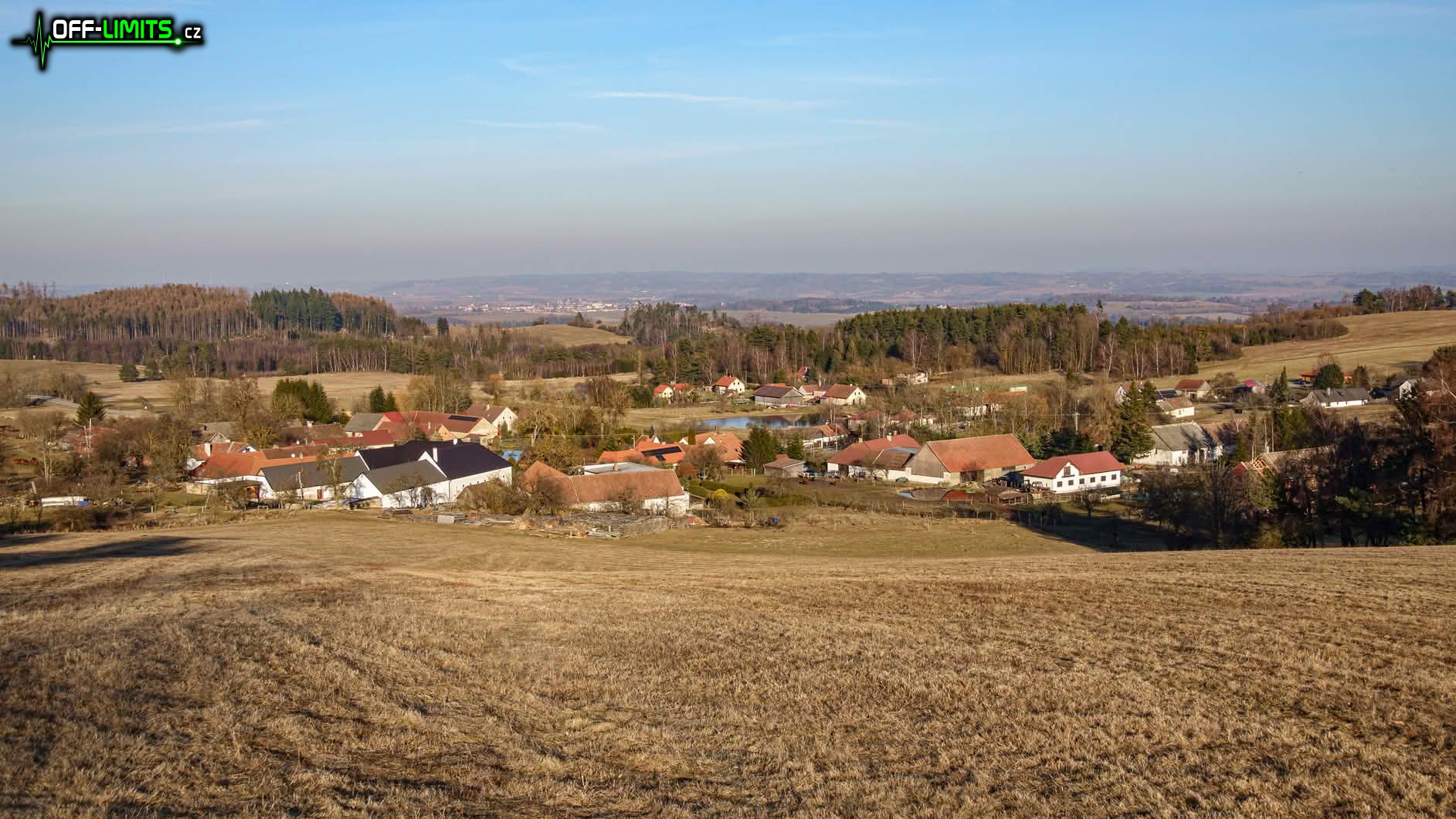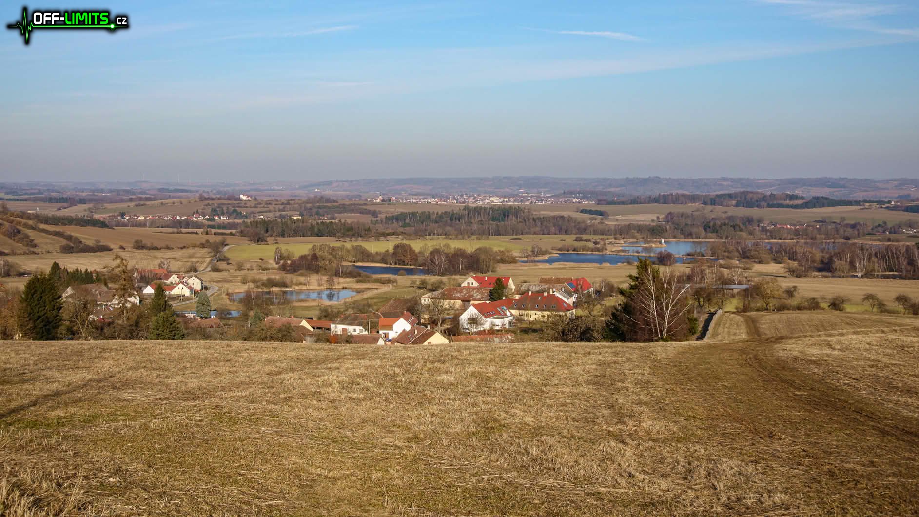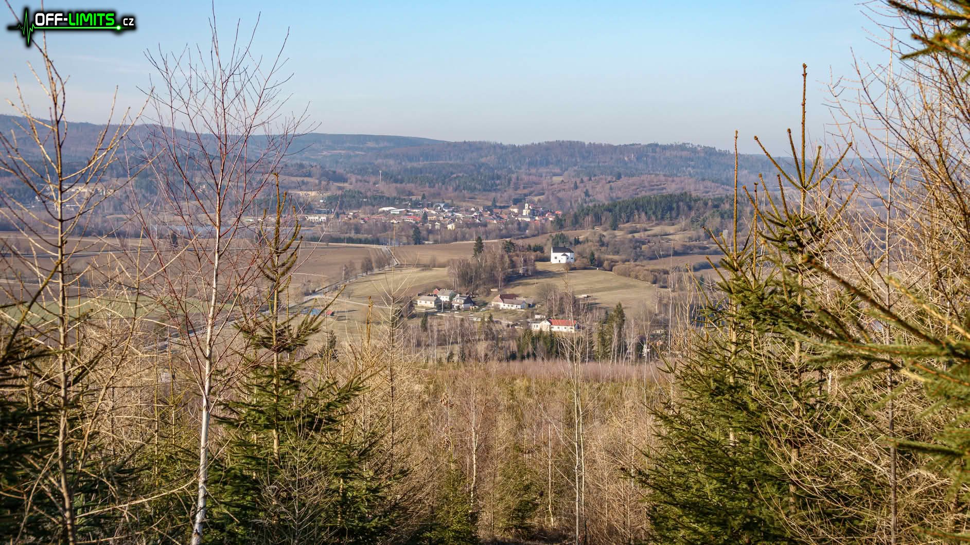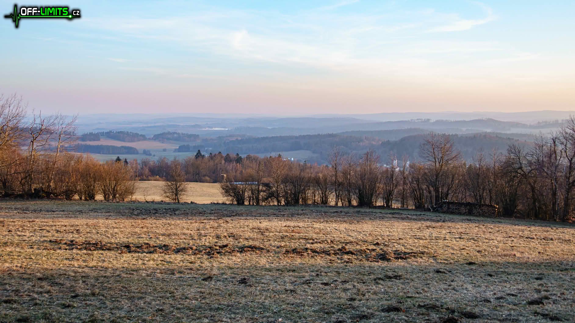Výhled na krajinu kolem obce Mrákotín pod kopcem Javořice z úbočí kopce Zdeňkov
