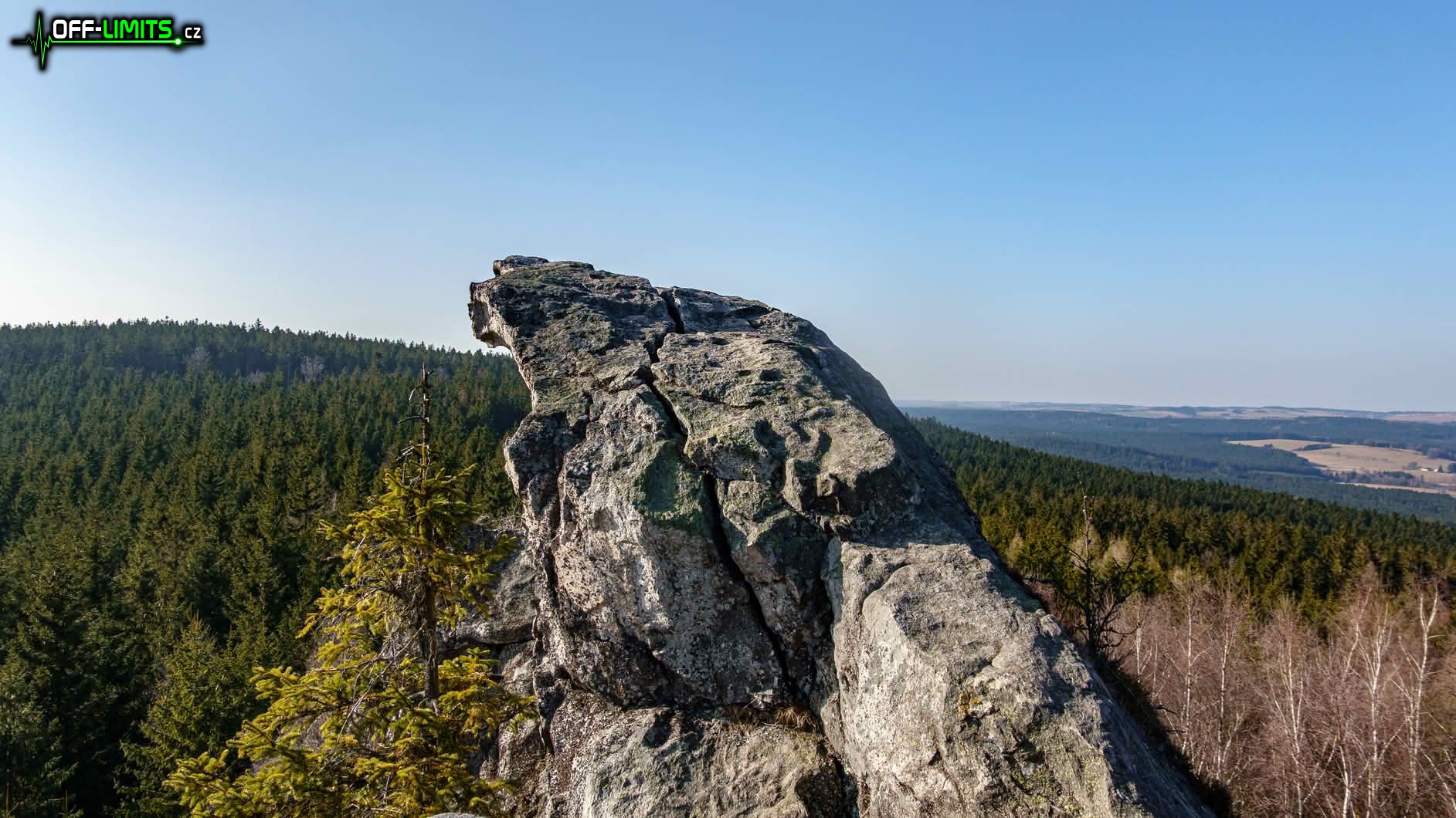 Potom, co jsem dopoledne bruslil 60 km po stále zamrzlém Medlovském rybníce, jsem se najedl, převlékl, vzal batoh a v poledne vyrazil na běžeckých okruh po skalních vyhlídkách ve Žďárských vrších. Nejprve jsem oběhl vypuštěný rybník Sykovec a přes Tři Studně se dostal na hráz Medlovského rybníka. Po modré značce následoval výstup na vrchol kopce Pasecká skála (823). Na skalní vyhlídce bylo plno lidí, takže bez zbytečného zdržování jsem pokračoval po zelené značce přes obec Kadov k osadě Blatiny.