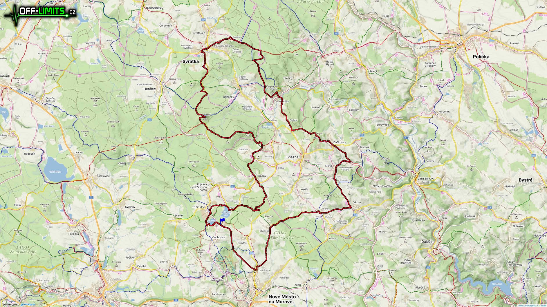 Abych to trochu urychlil, většinu zbývající trasy jsem běžel po cyklostezkách. Seběhl jsem do obce České Milovy, odkud jsem po žluté značce vystoupal na vrchol Buchtova kopce (813), kde se nachází řízení letového provozu. Dále jsem pokračoval po červené značce dolů přes obec Daňkovice až do obce Jimramovské Paseky. Při následném stoupání jsem se přes obce Líšná a Věcov dostal do obce Odranec. Před sebou jsem měl poslední větší kopec nahoru do osady Studnice. Nakonec už jsem jenom seběhl do obce Mašovice, za kterou mě čekalo závěrečné stoupání zpátky k autu u obce Tři Studně. Půl hodiny před půlnocí jsem se vydal na zpáteční cestu domů do Třebíče. Protože Žďárské vrchy leží poměrně vysoko, v lesích se stále ještě nacházely zbytky sněhu a zledovatělé cesty. Mě osobně ovšem nejvíce překvapilo množství lidí. Jen v první polovině trasy jsem jich potkal vyšší desítky.