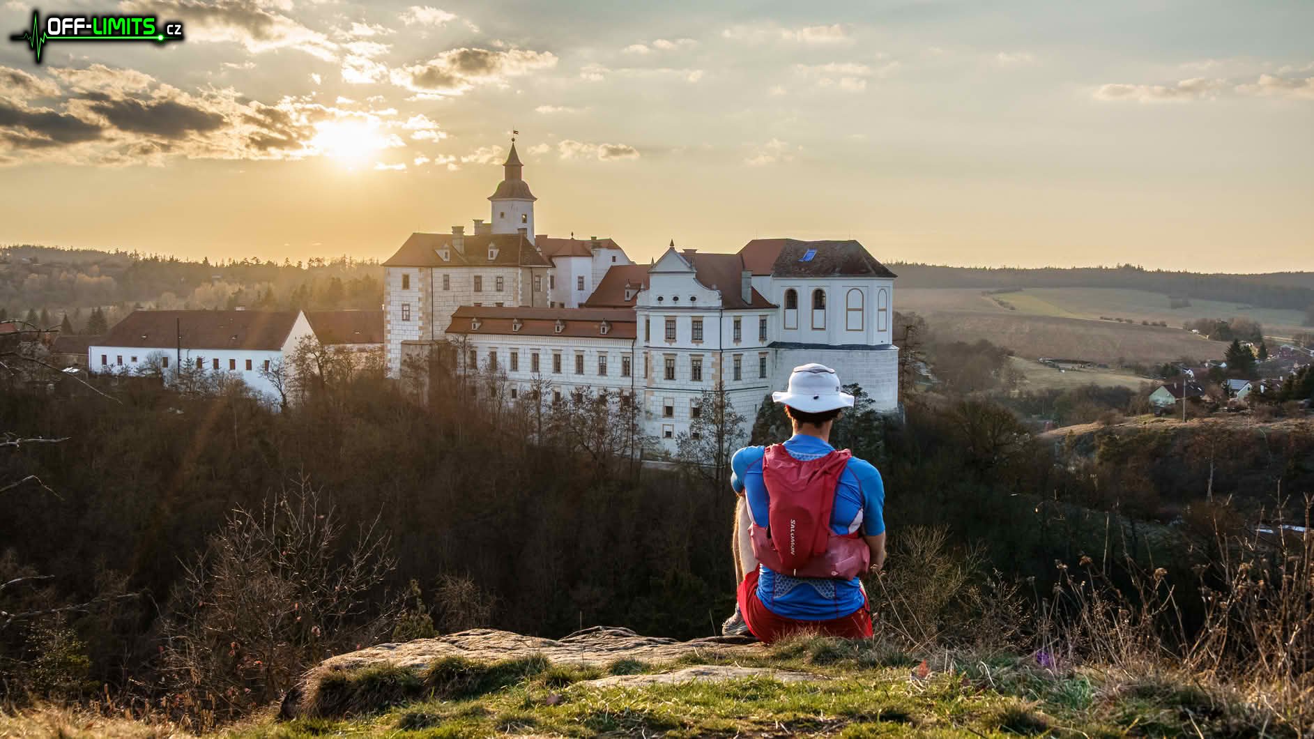 Po silnici jsem proběhl obec Újezd a vběhl do přírodního parku Jevišovka. Po polních i lesních cestách jsem se dostal do údolní obce Černín. Odbočil jsem na zpevněnou cyklotrasu, a naopak vystoupal do malého města Jevišovice. Kolem Nového zámku jsem doběhl do centra, kde jsem si nakoupil v obchodě. Protože byl pátek podvečer po celém městě se pohybovalo až neobvykle obrovské množství mladých lidí. Následující necelou hodinu jsem probíhal údolím kolem řeky Jevišovka, kde jsou pěkné výhledy na Starý zámek. Přímo na poslední vyhlídce mně akorát zapadlo slunce.