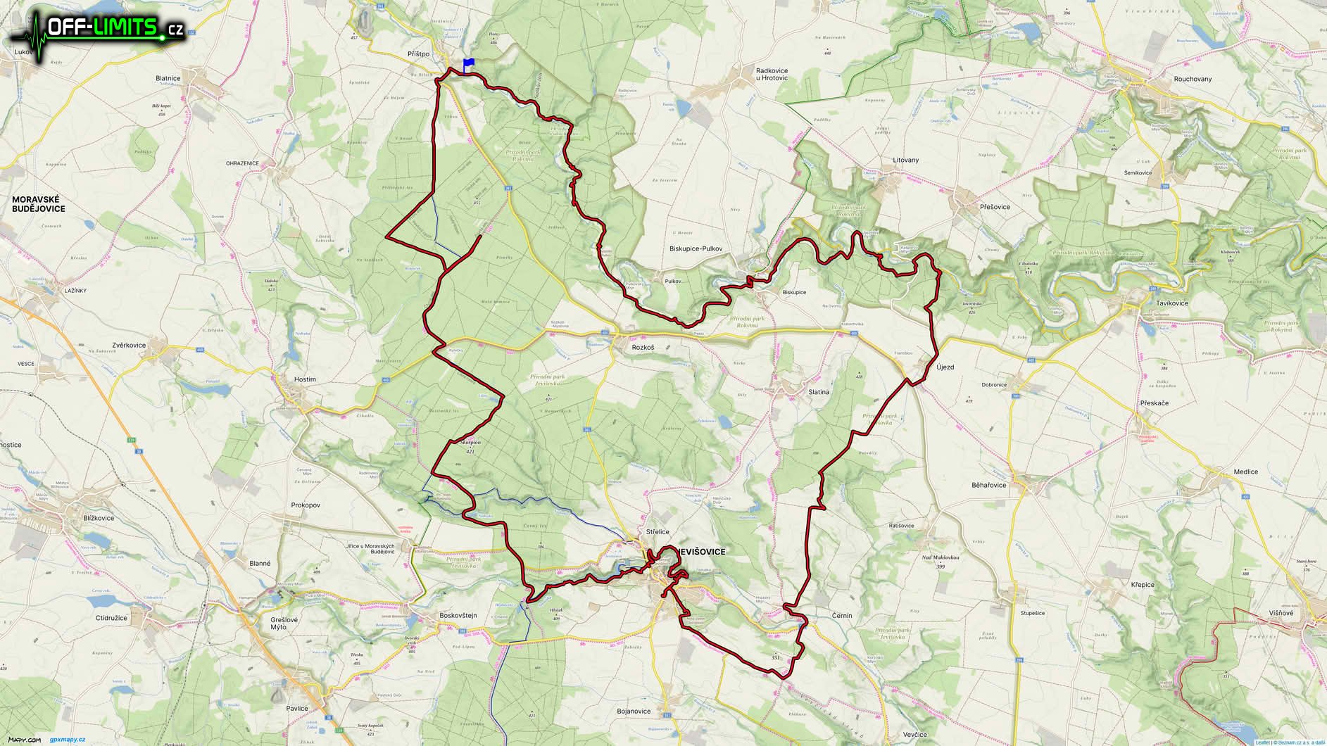 Po modré značce, kde se už roky nacházejí popadané stromy, jsem oběhl Jevišovickou přehradu a dostal se tak na lesní, asfaltovou cyklotrasu. Protože bylo už šero, zapnul jsem čelovku s blikačkou. Následujících patnáct kilometrů jsem se klikatil hlubokým lesem, kde není vůbec nic zajímavého, až zpátky do obce Příštpo. Ačkoli bylo teprve třináctého března, celou trasu včetně nočního návratu jsem letos poprvé zvládl jen v krátkém oblečení. Zima mi byla až v devět hodin zpátky u auta, protože dole u vody bylo asi jen pět stupňů. Také jsem si letos přinesl i první klíště. Nakonec už mi zbývala jen cesta domů do Třebíče.