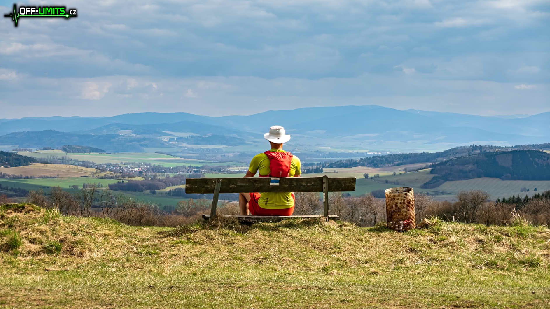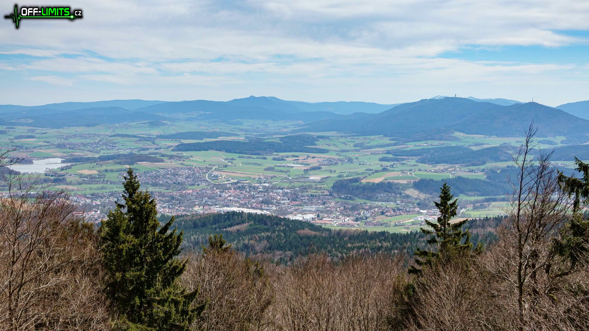 Asi v polovině výstupu jsem proběhl obcí Herzogau, kde už začaly první výhledy po krajině. Po dalších pár kilometrech jsem odbočil na hřeben a vystoupal tak na vrchol kopce Klammerfels (848), kde stojí stará, dřevěná rozhledna. Výhledy z ní sice byly všemi směry, ale bohužel už těsně přes vrcholky okolních stromů. Po návratu na hlavní cestu jsem se potkal s rodiči, protože zapomněli odbočit na rozhlednu a cestu si tak výrazně zkrátili. Následoval výstup po malé sjezdovce Althütte k horské chatě Gibacht. Další úsek jsem kličkoval kolem hlavní turistické cesty, protože okolo ní je roztroušeno několik skalních vyhlídek. První se nacházela na vrcholu kopce Tannenriegel (910) a výhled z ní byl na jih do údolí a na vzdálené kopce. Druhá byla kousek pod vrcholem kopce Reiseck (902) a výhled byl orientován na údolní město Furth im Wald (Brod nad Lesy). Třetí, poslední a nejhezčí vyhlídka byla na vrcholu kopce Gaißriegel (720) s výhledem opět na město Furth im Wald. Tím výhledy skončily, protože už jsem byl téměř na konci hřebenu.