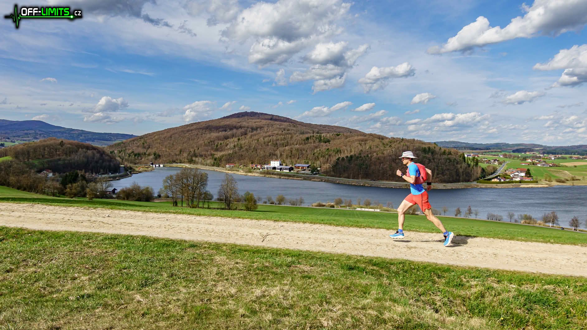 Na Velký pátek jsme ráno přejeli autem k zatopenému lomu Lomeček u obce Starý Klíčov. Zatímco ostatní obdivovali podvodní svět skrz pozorovatelnu, já jsem po obhlédnutí lomu vyrazil na celodenní běh. Po modré značce jsem přeběhl k obci Nový Klíčov, kde se mi otevřely první výhledy jak na pohoří Českého lesa, tak i na Bavorský les (německou část Šumavy - Böhmerwald). Odbočil jsem na červenou značku a přes osadu Studánky seběhl do obce Všeruby nedaleko státní hranice. Tou dobou už bylo příjemně teplo, takže jsem sundal dlouhé oblečení, schoval ho do batohu a dál pokračoval v krátkém.