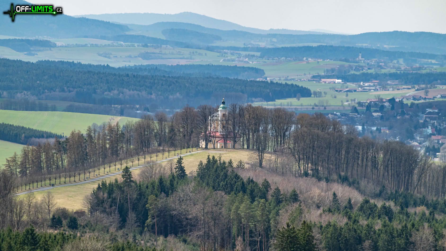 Na Velký pátek jsme ráno přejeli autem k zatopenému lomu Lomeček u obce Starý Klíčov. Zatímco ostatní obdivovali podvodní svět skrz pozorovatelnu, já jsem po obhlédnutí lomu vyrazil na celodenní běh. Po modré značce jsem přeběhl k obci Nový Klíčov, kde se mi otevřely první výhledy jak na pohoří Českého lesa, tak i na Bavorský les (německou část Šumavy - Böhmerwald). Odbočil jsem na červenou značku a přes osadu Studánky seběhl do obce Všeruby nedaleko státní hranice. Tou dobou už bylo příjemně teplo, takže jsem sundal dlouhé oblečení, schoval ho do batohu a dál pokračoval v krátkém.