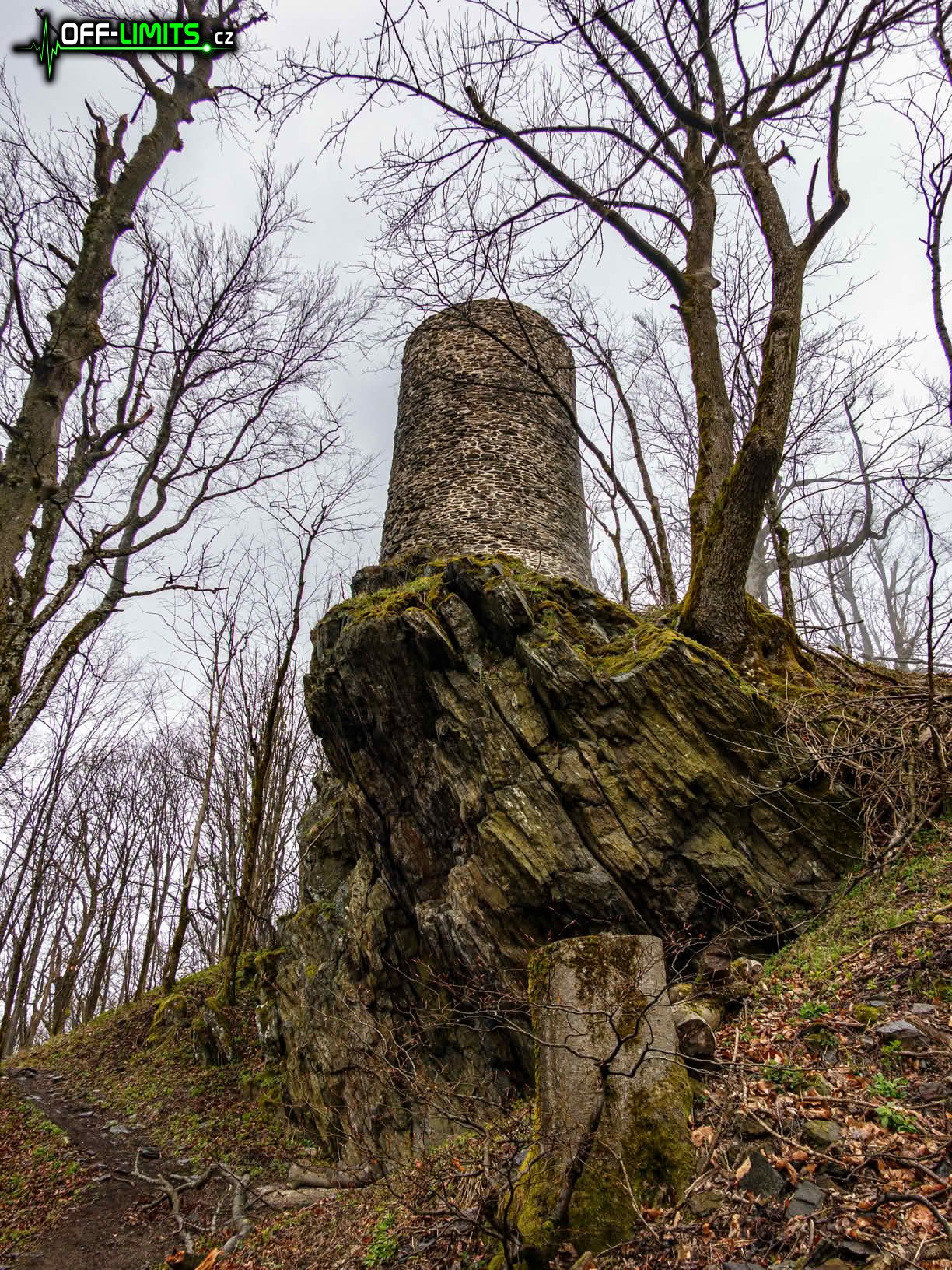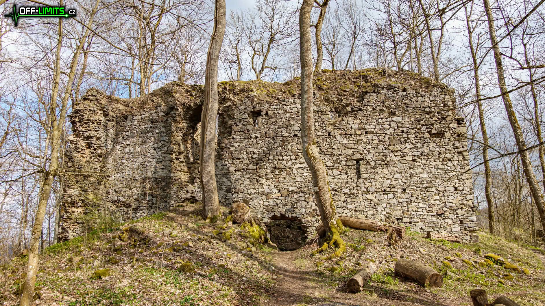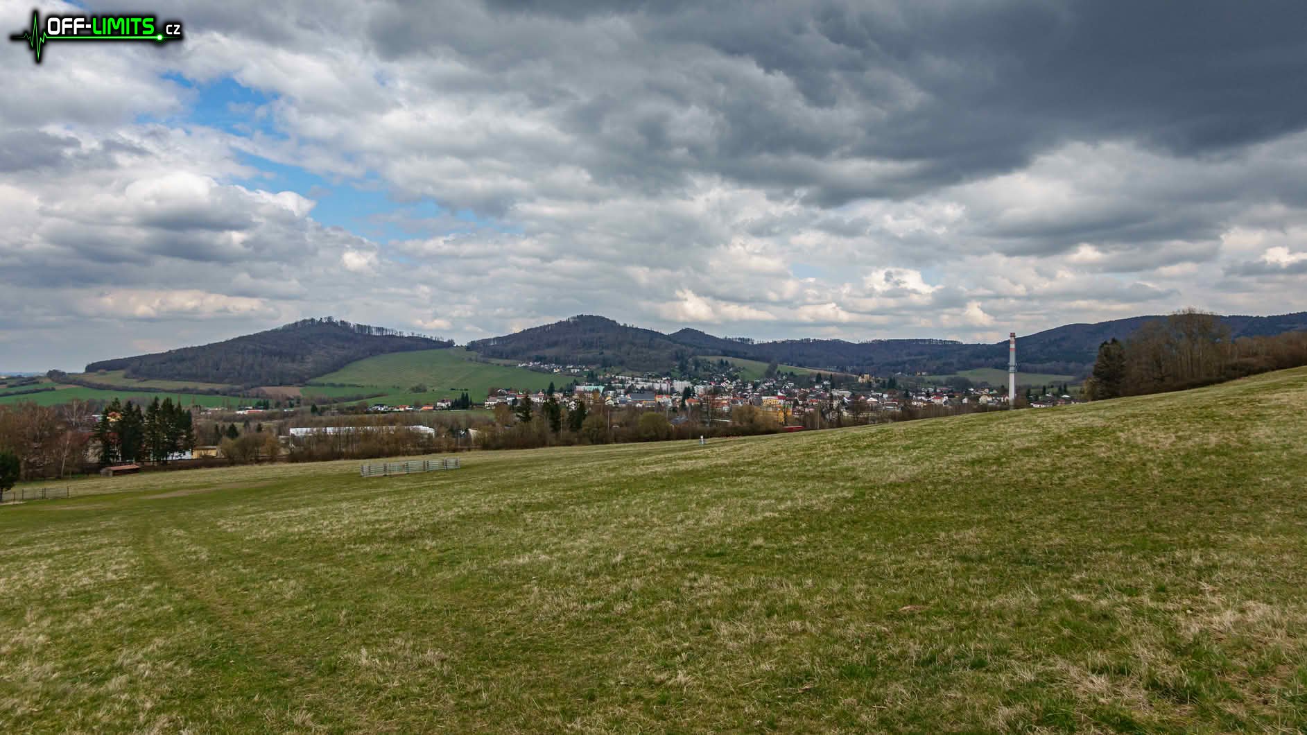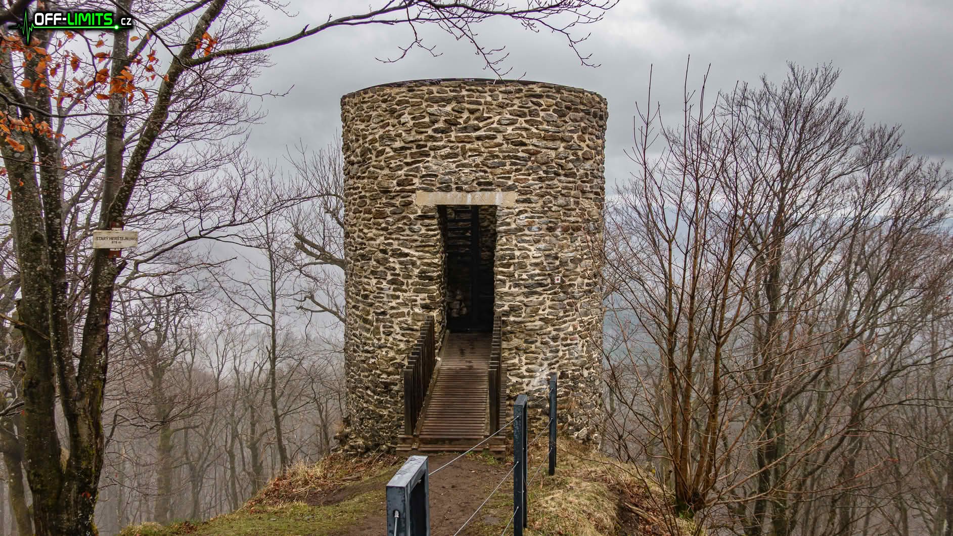 Další úsek byl docela náročný, protože jsem musel vystoupat po modré značce téměř 5 km s převýšením 315 m až na vrchol kopce Koráb (775). Protože nahoře fučelo, v krátkém oblečení mi bylo trochu zima. Krátce jsem vystoupal na 50 m vysokou rozhlednu, ale protože kvůli oblačnosti výhledy moc zajímavé nebyly, po pár minutách už jsem pokračoval dál. Po hřebenové cestě jsem se dostal ke zřícenině hradu Nový Herštejn, která překvapila svou velkou rozlohou na vrcholku bezejmenného kopce. Po červené značce jsem přes hradiště Příkopy a obec Podzámčí vystoupal na vrchol kopce Rýzmberk (665), kde se nachází stejnojmenná zřícenina hradu. Tím skončilo běhání po kopcích a přišel čas návratu.